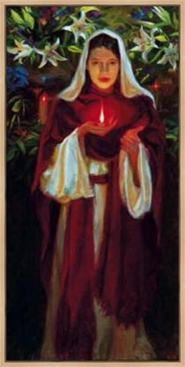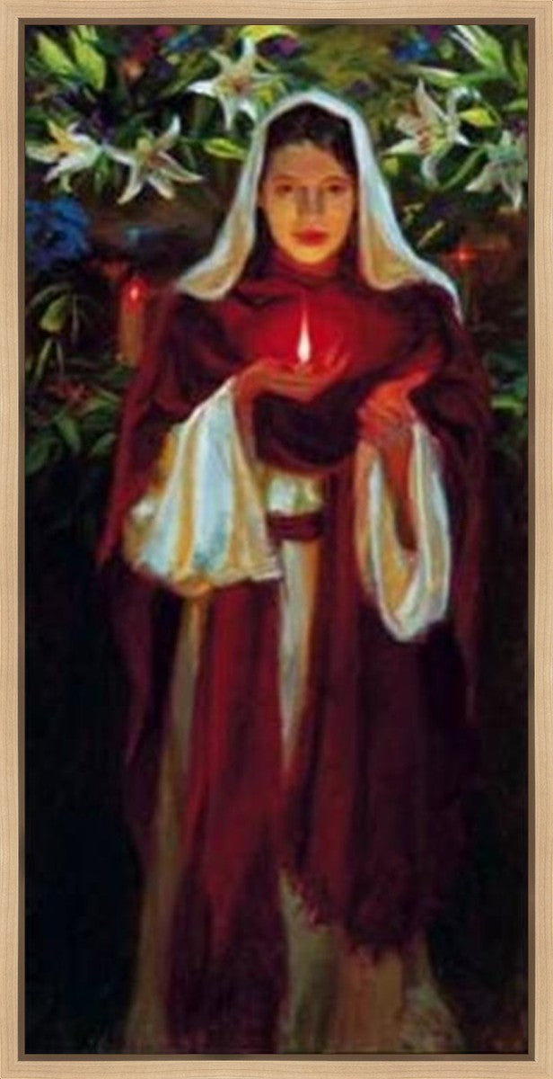 Our Float Frame is custom-made with a small gap between the frame and canvas to accentuate the edges of the artwork and give the illusion of a floating image within the frame.