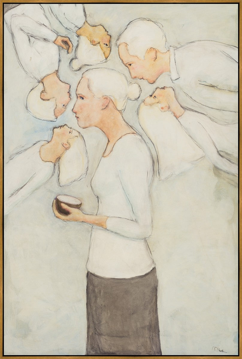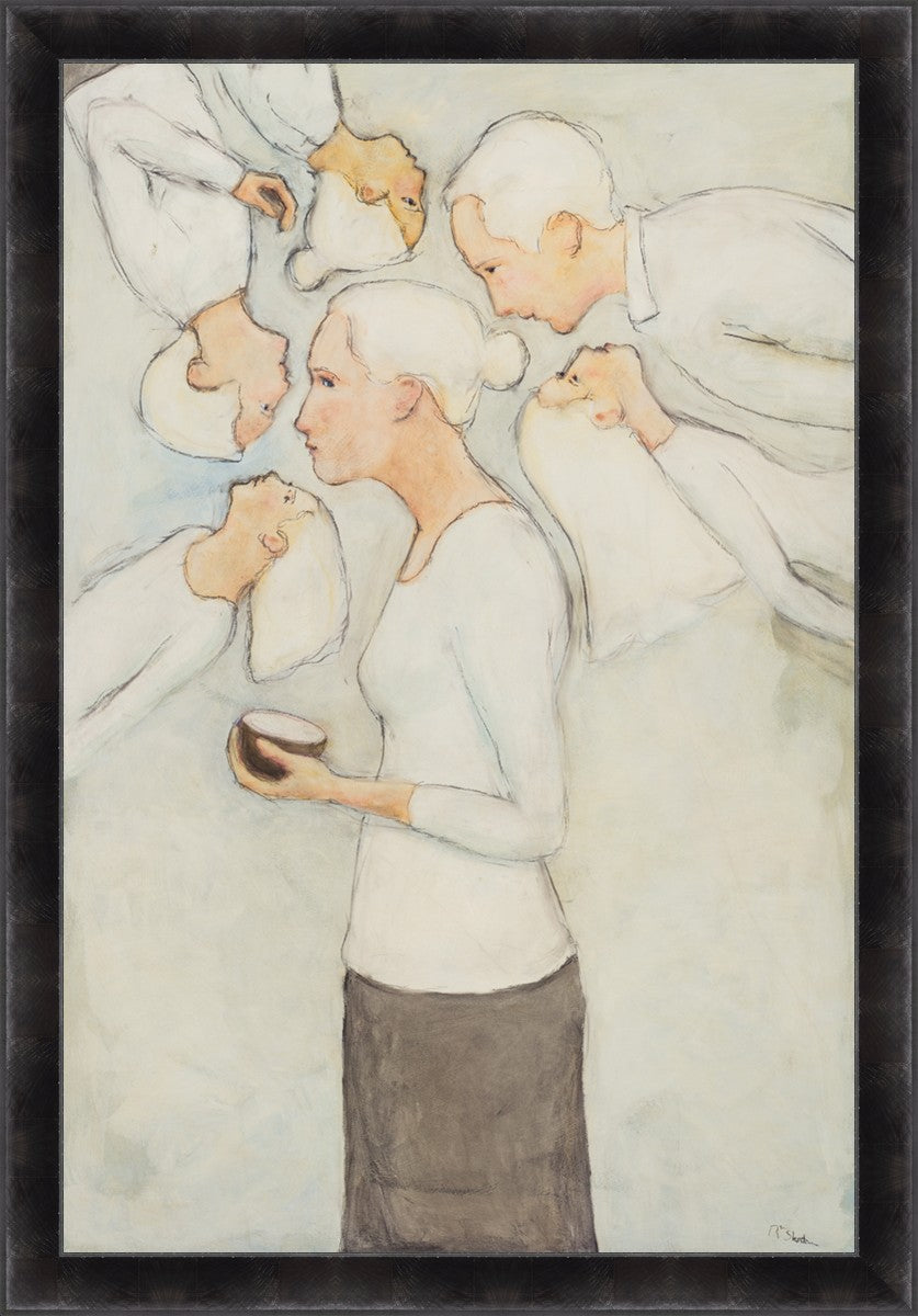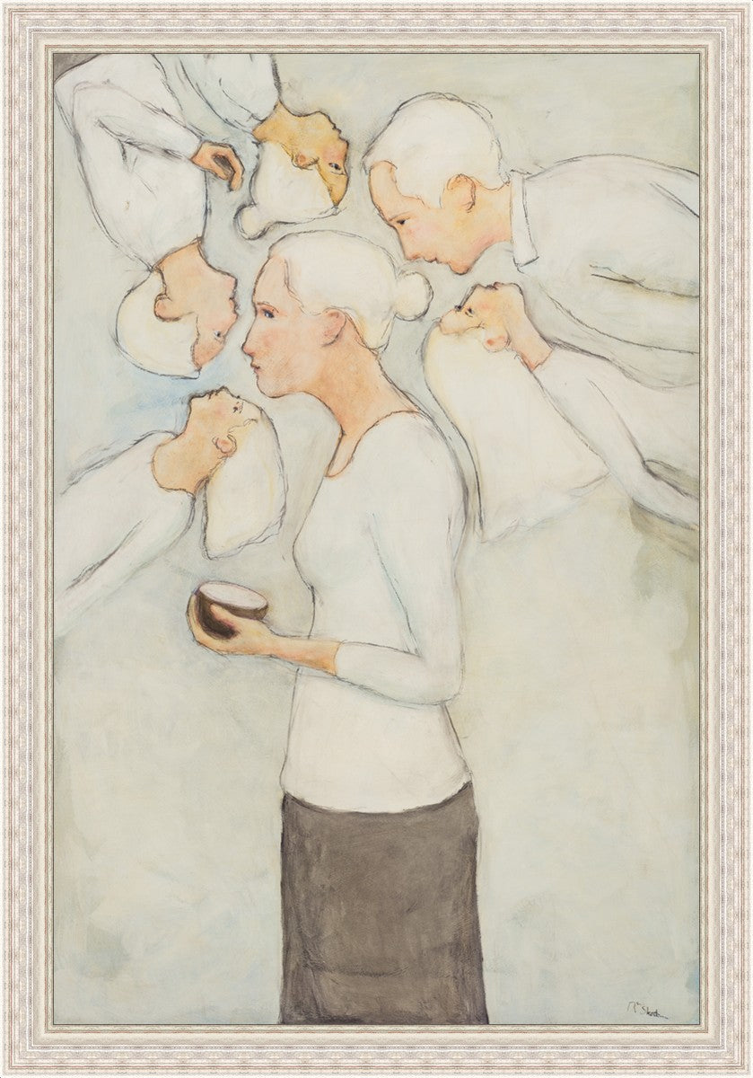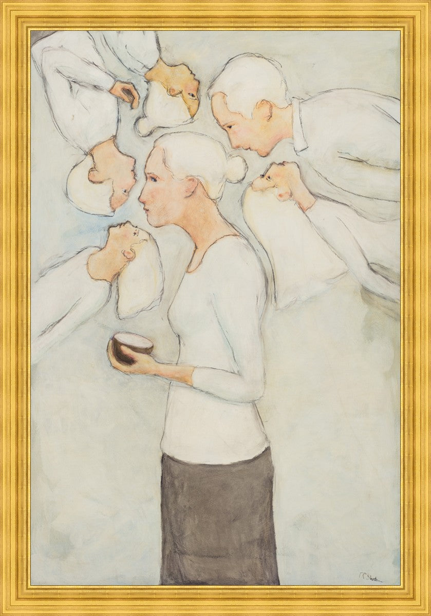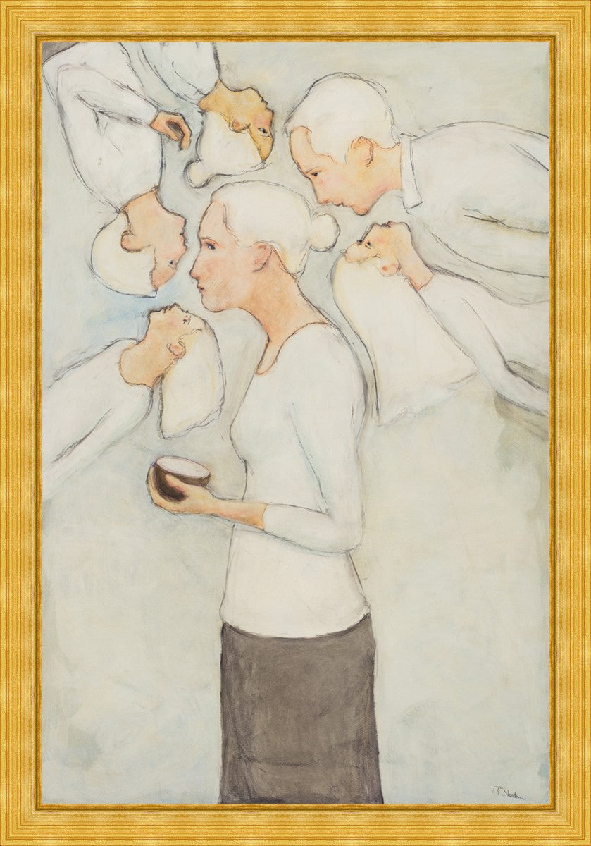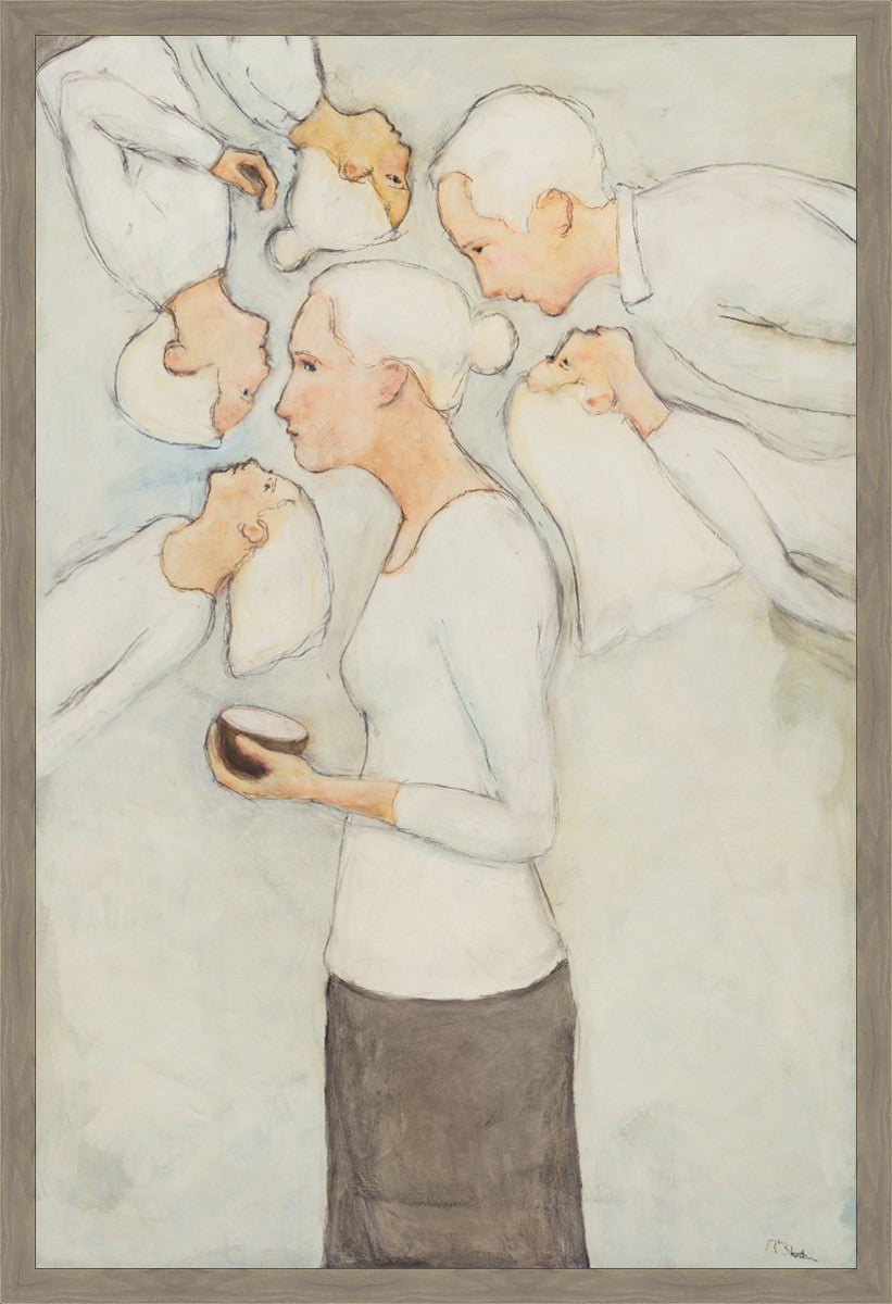 This is subtitled 'A Mom with Five Children, One of them Being Her Husband' It represents a mother being the center of a household.
