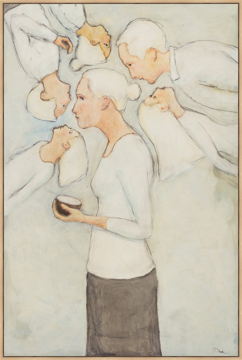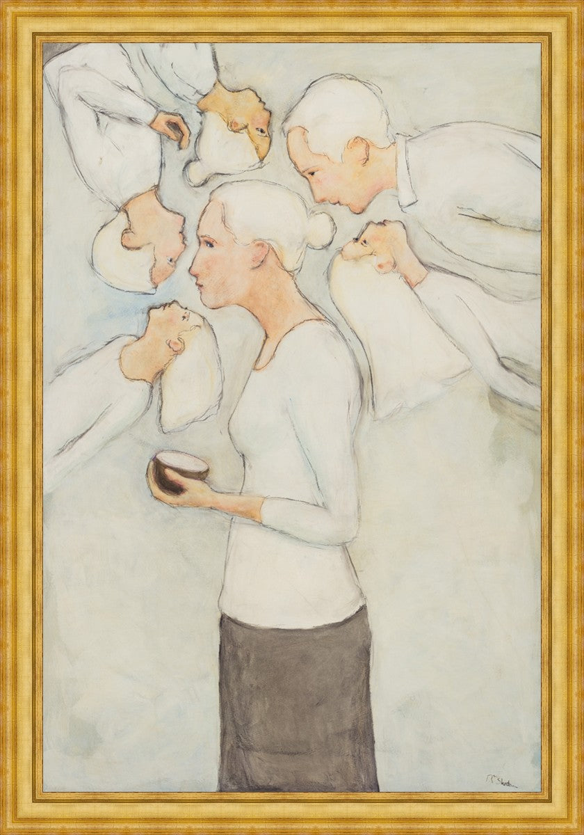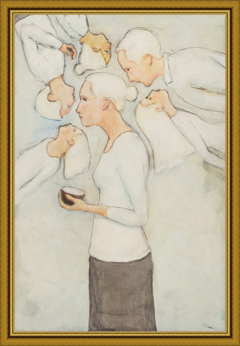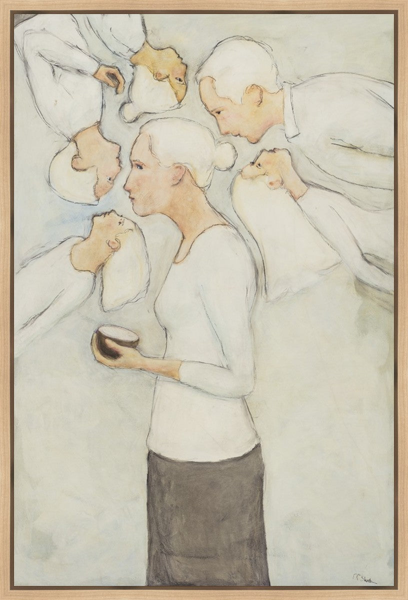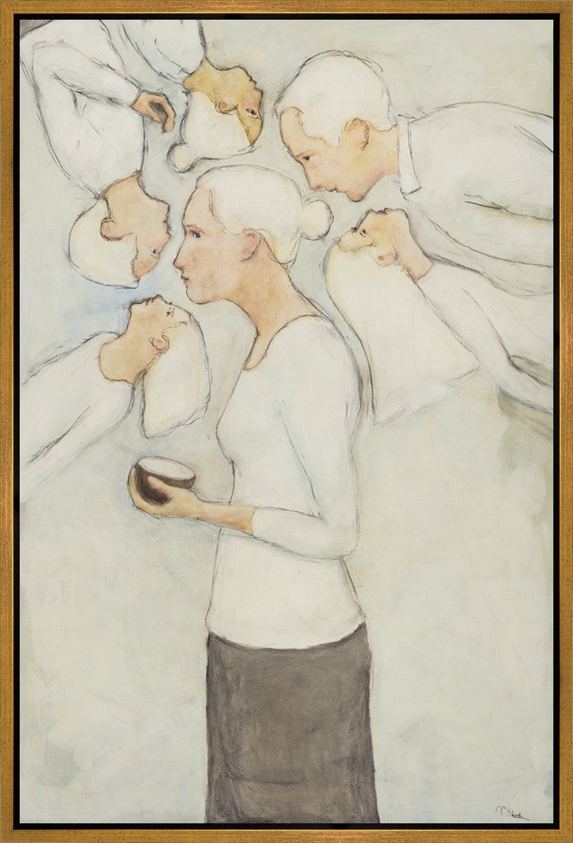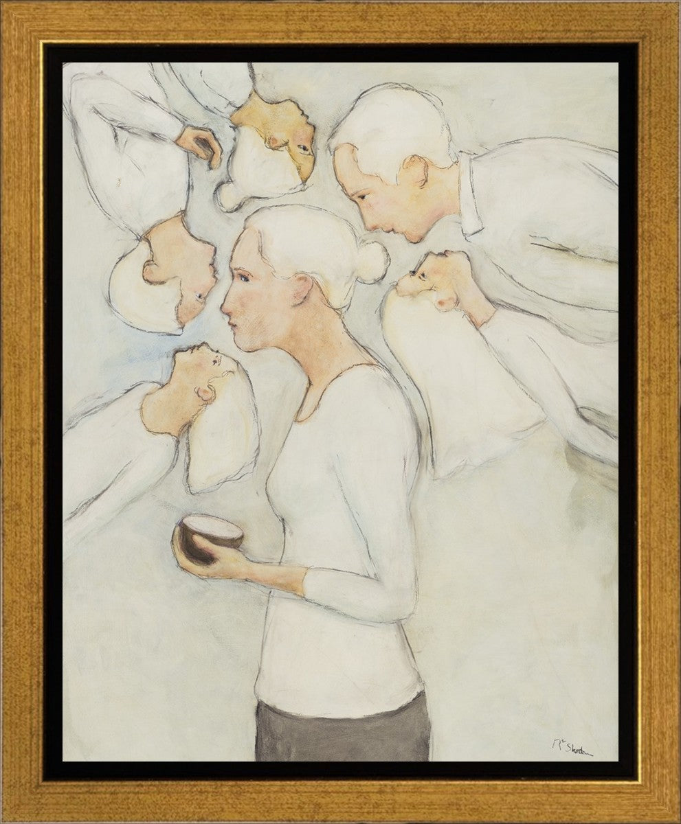 This is subtitled 'A Mom with Five Children, One of them Being Her Husband' It represents a mother being the center of a household.