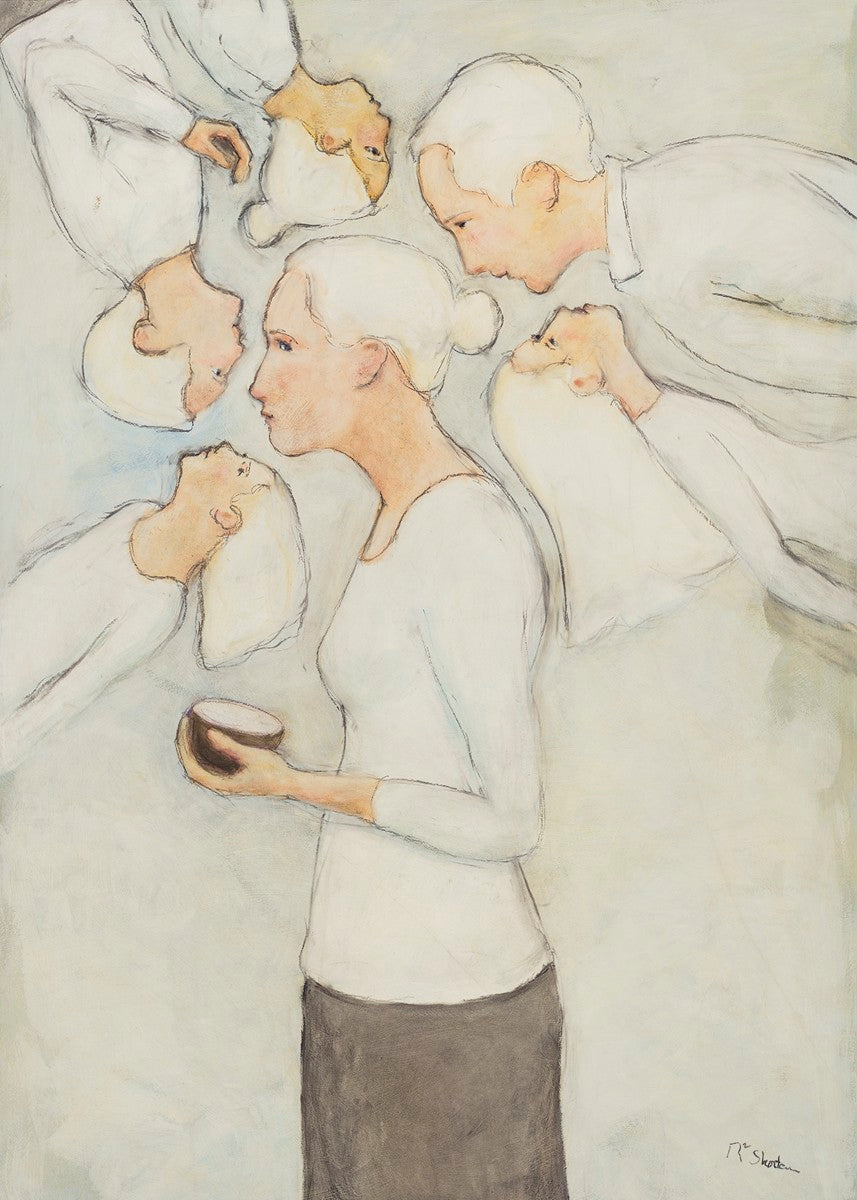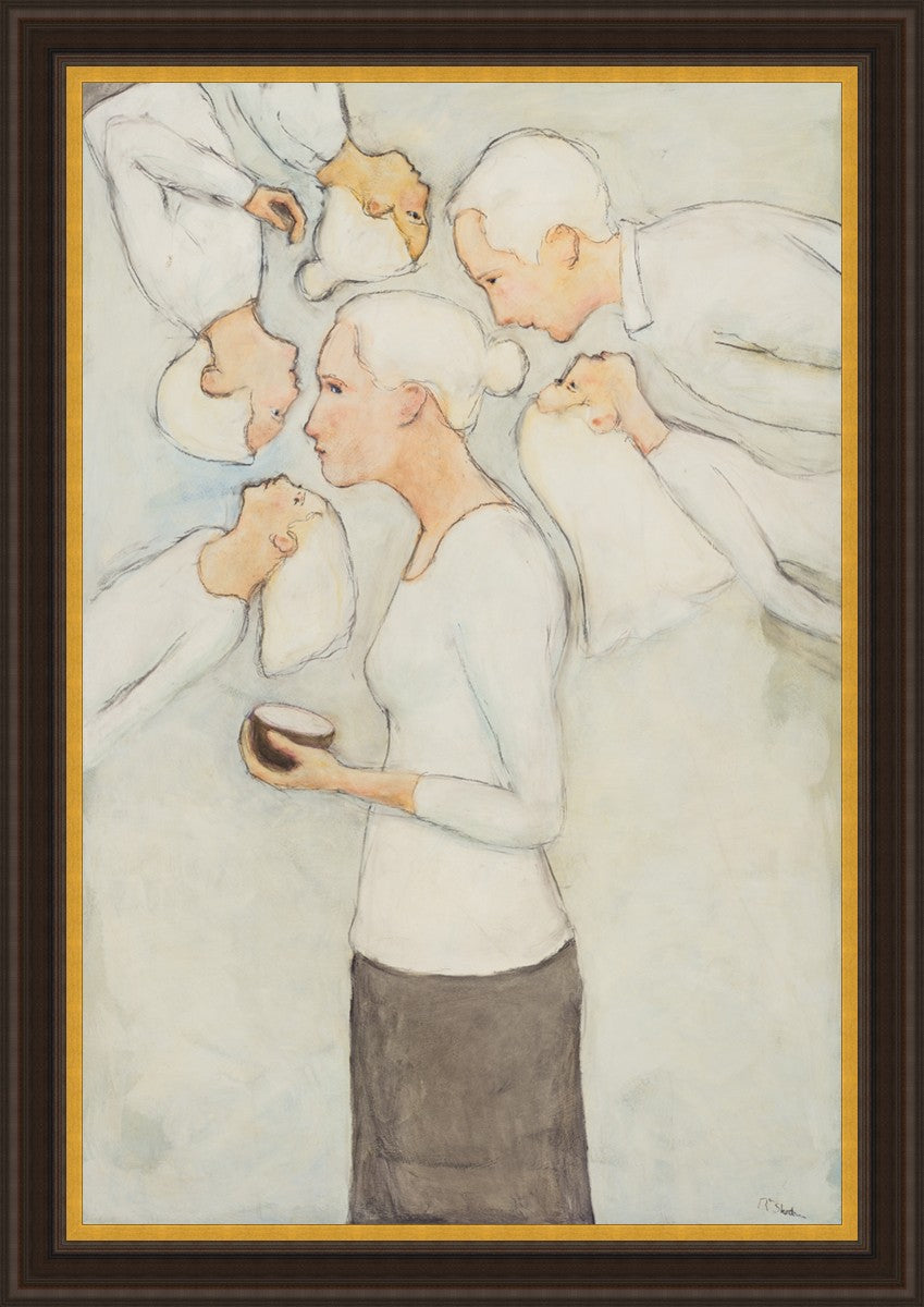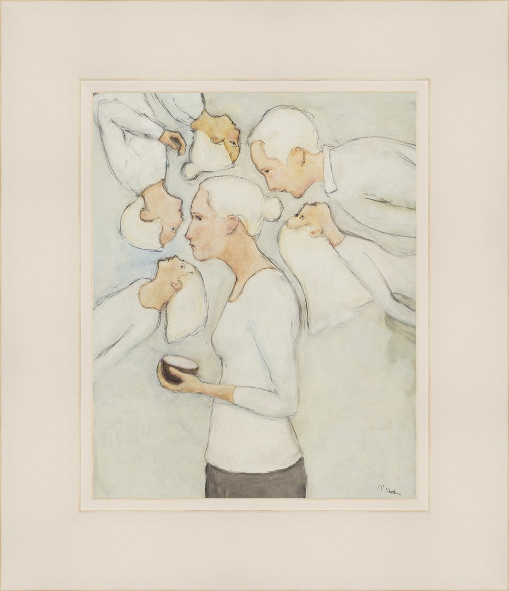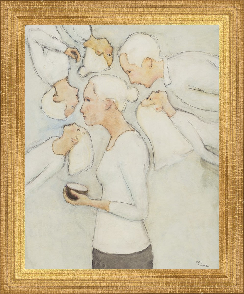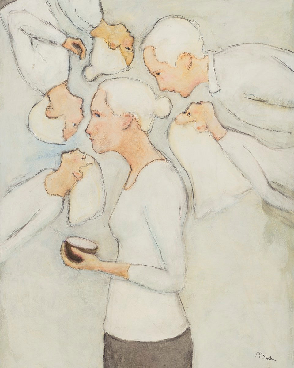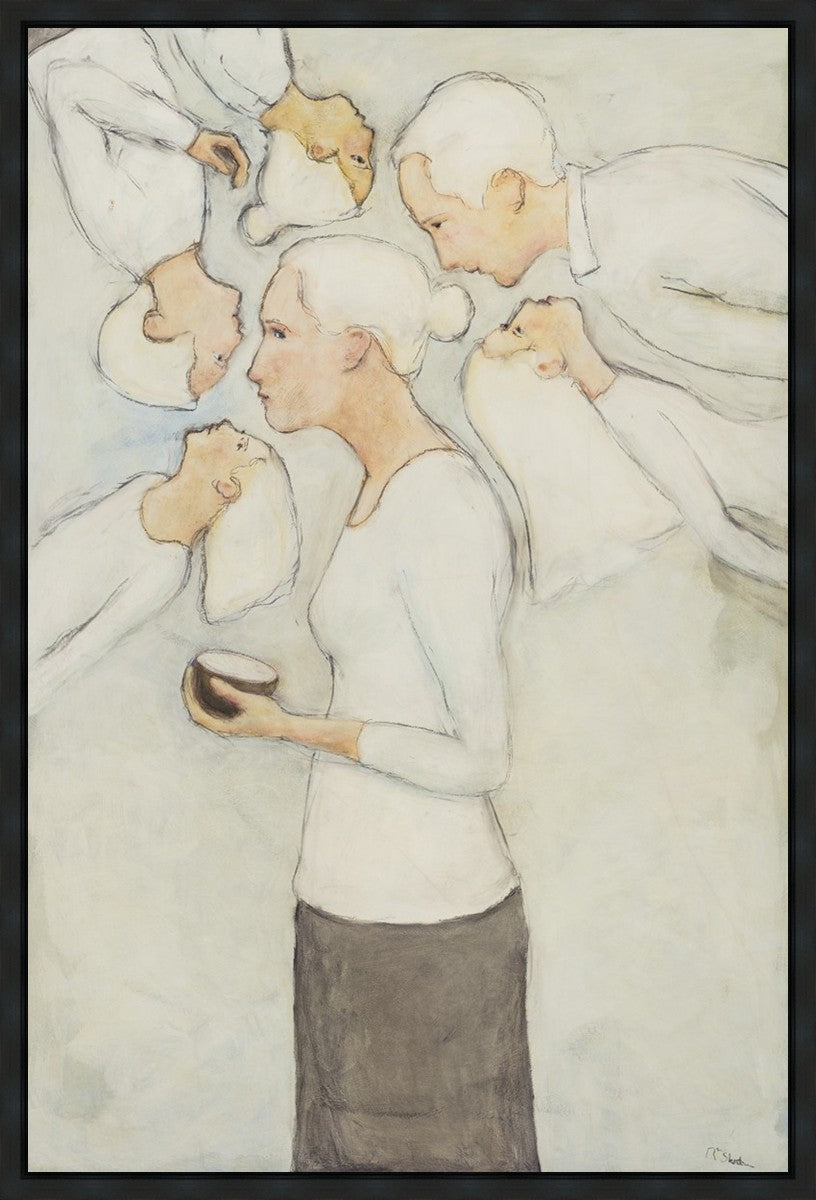 This is subtitled 'A Mom with Five Children, One of them Being Her Husband' It represents a mother being the center of a household.