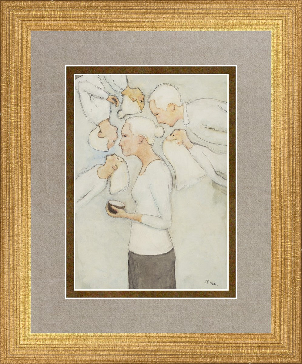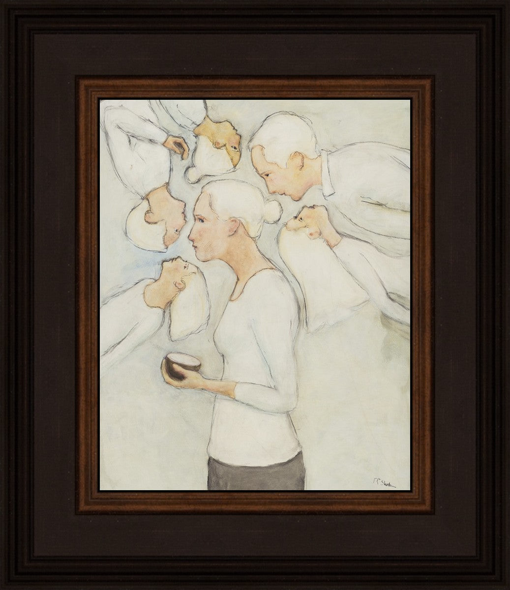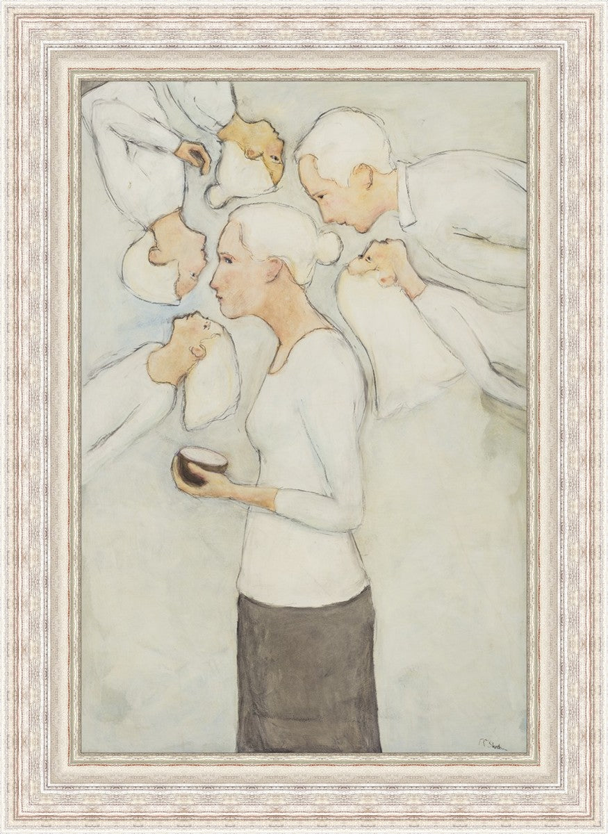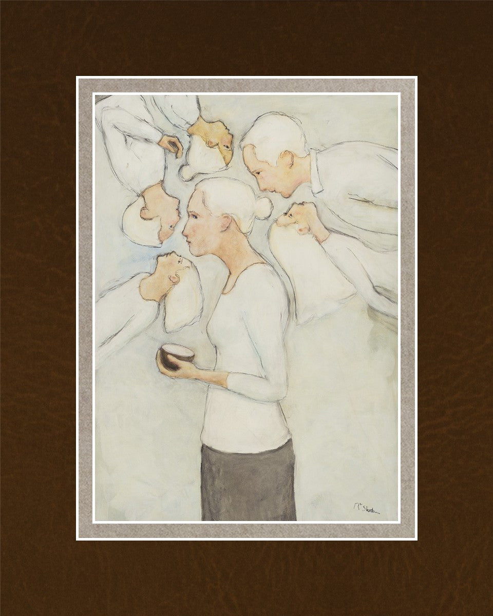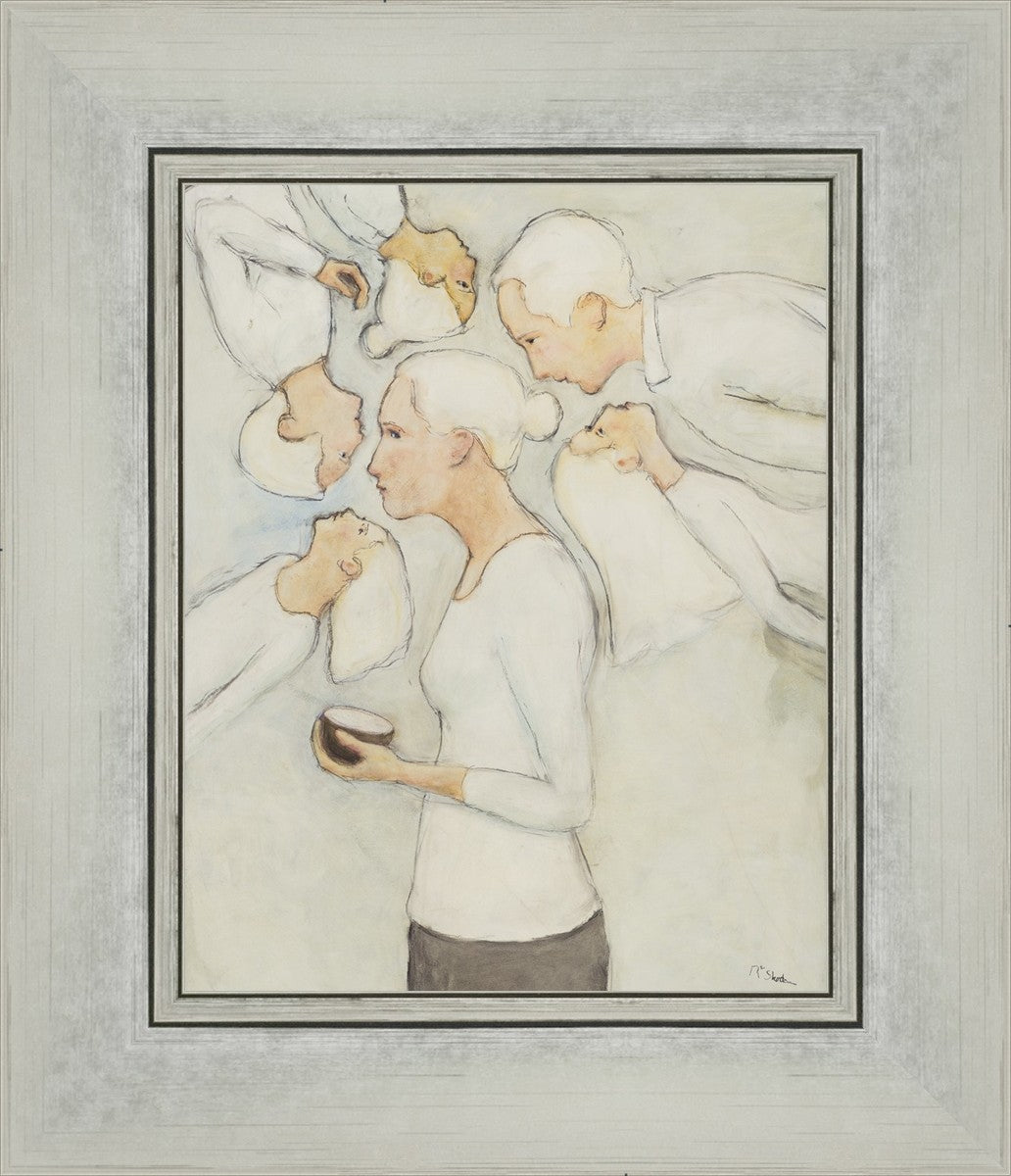 This is subtitled 'A Mom with Five Children, One of them Being Her Husband' It represents a mother being the center of a household.
