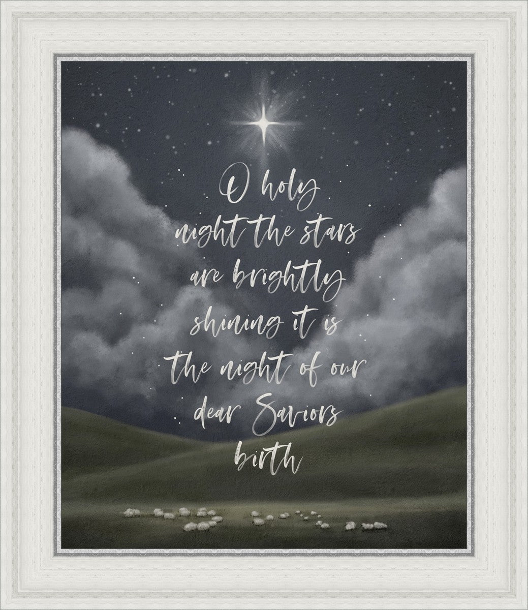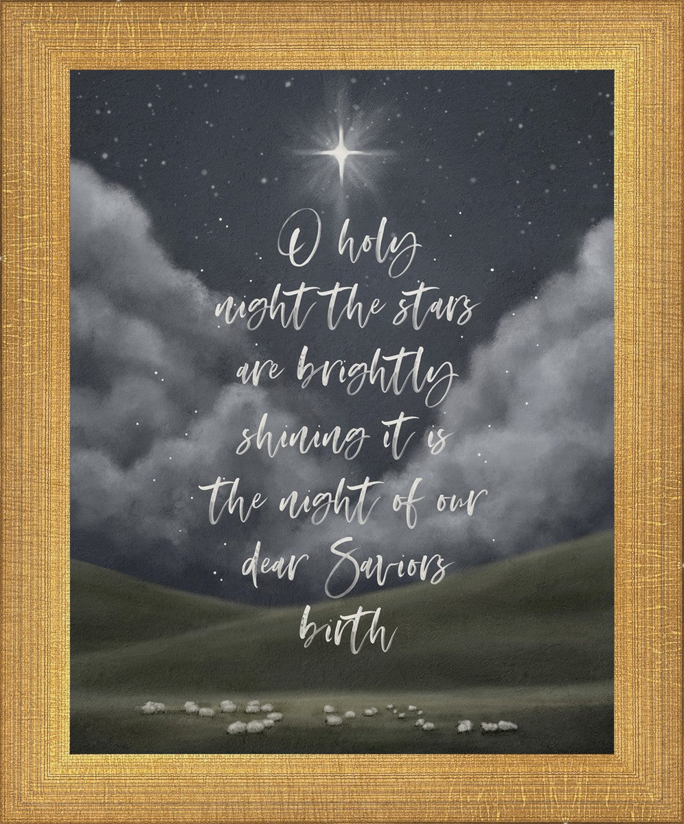 A verse embracing the theme of Oh Holy Night over an image of the Star of Bethlehem with sheep in a field below