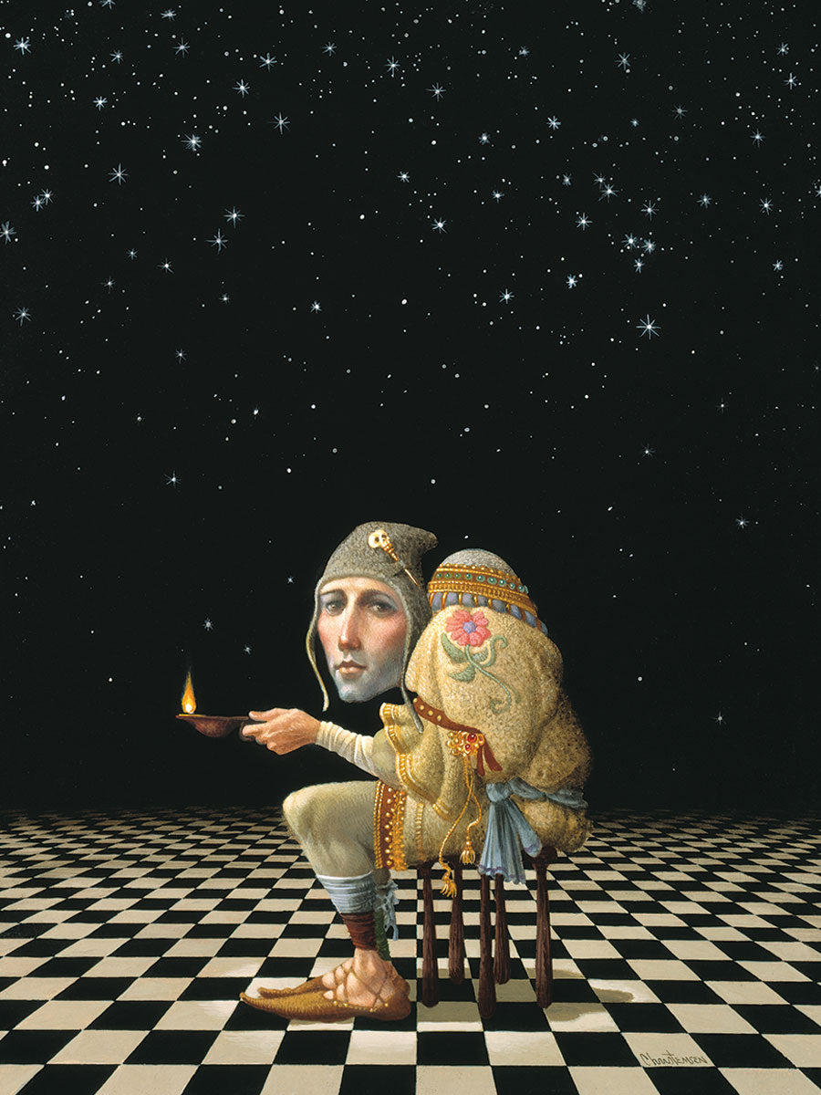 Christensen’s fine art appears as works of art in paper, canvas, porcelain and bronze. His first book, A Journey of the Imagination: The Art of James Christensen, was published to great acclaim in 1994. His second, the adventure fantasy Voyage of the Basset, has more than 100,000 copies in print. His subsequent books include the inventive Rhymes & Reasons, published in May 1997, Parables (written by Robert Millet, 1999), The Personal Illumination Series and The Personal Illumination Journal (2000), a series of interactive journals, A Shakespeare Sketchbook (2001) and James Christensen, Foremost Fantasy Artist (2001). In 2008 his eighth book, Men and Angels, was published. Passage by Faith: Exploring the Inspirational Art of James C. Christensen, his last book was published in 2014.