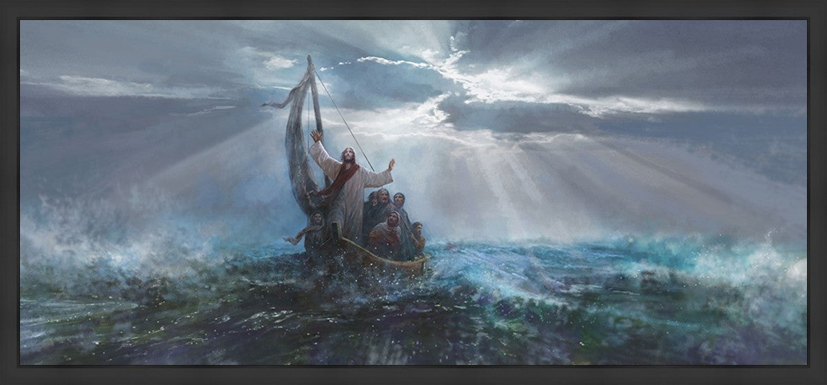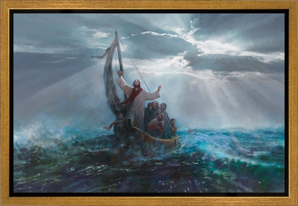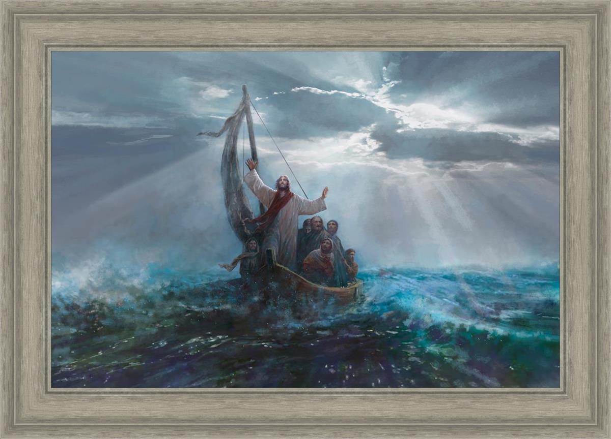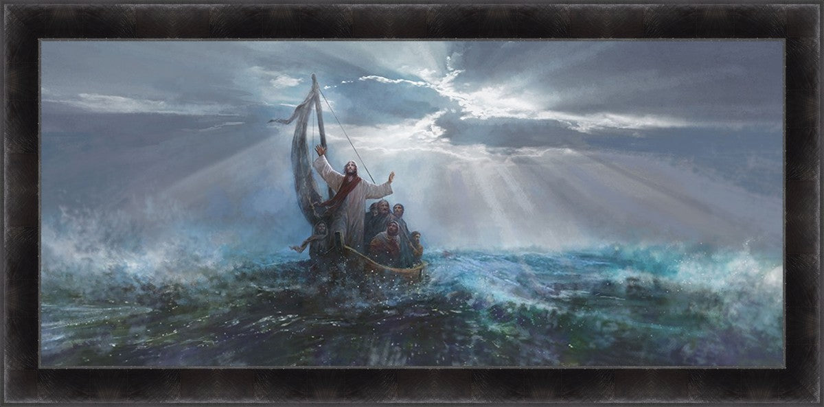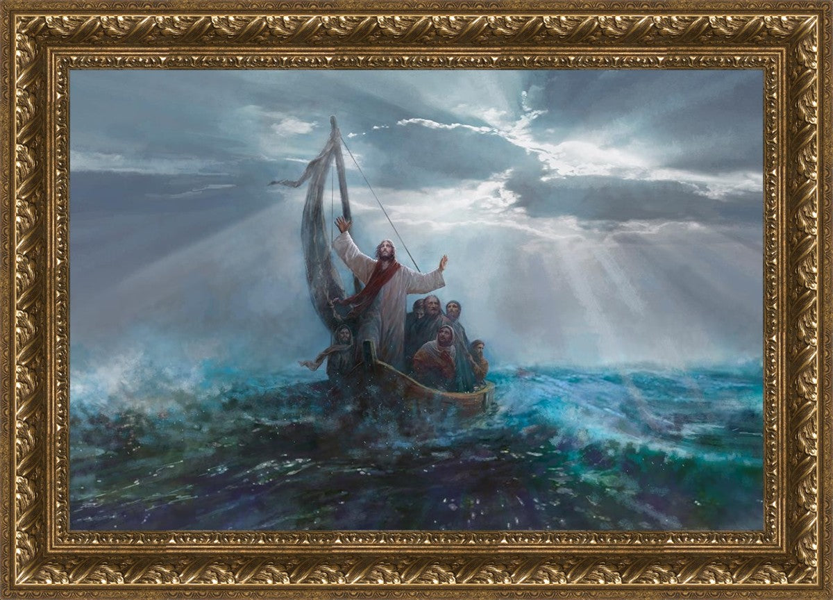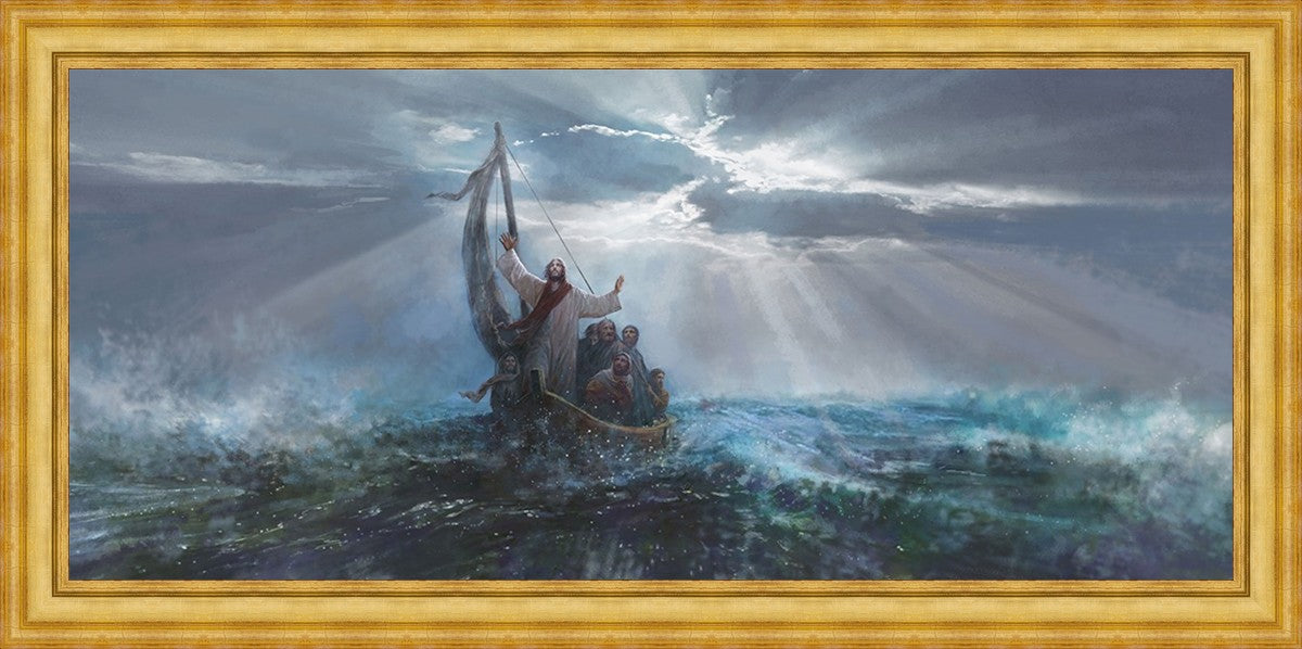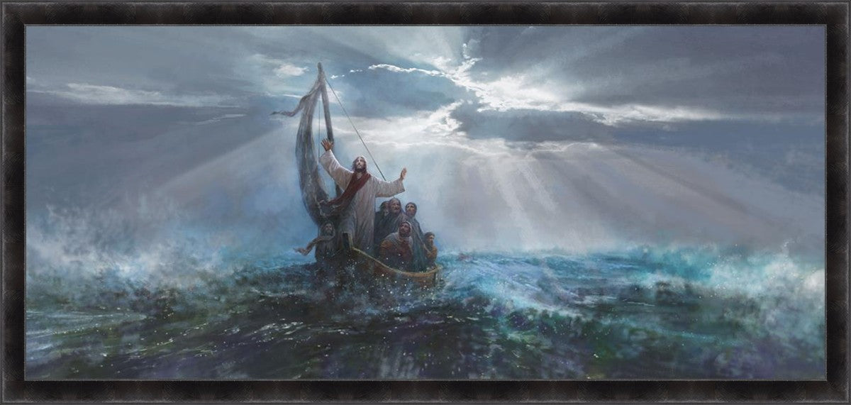 Peace Be Still is a painting by Yongsung Kim. This painting depicts Jesus Christ calming the raging sea amidst a storm.