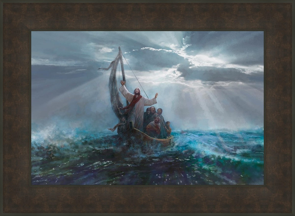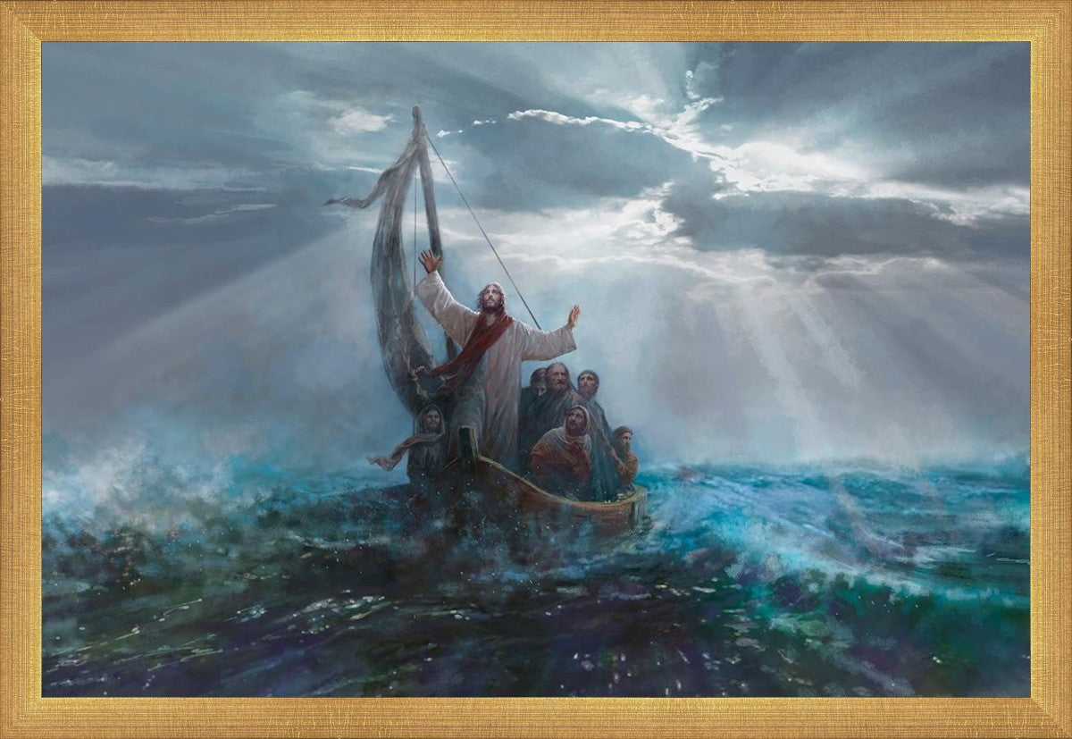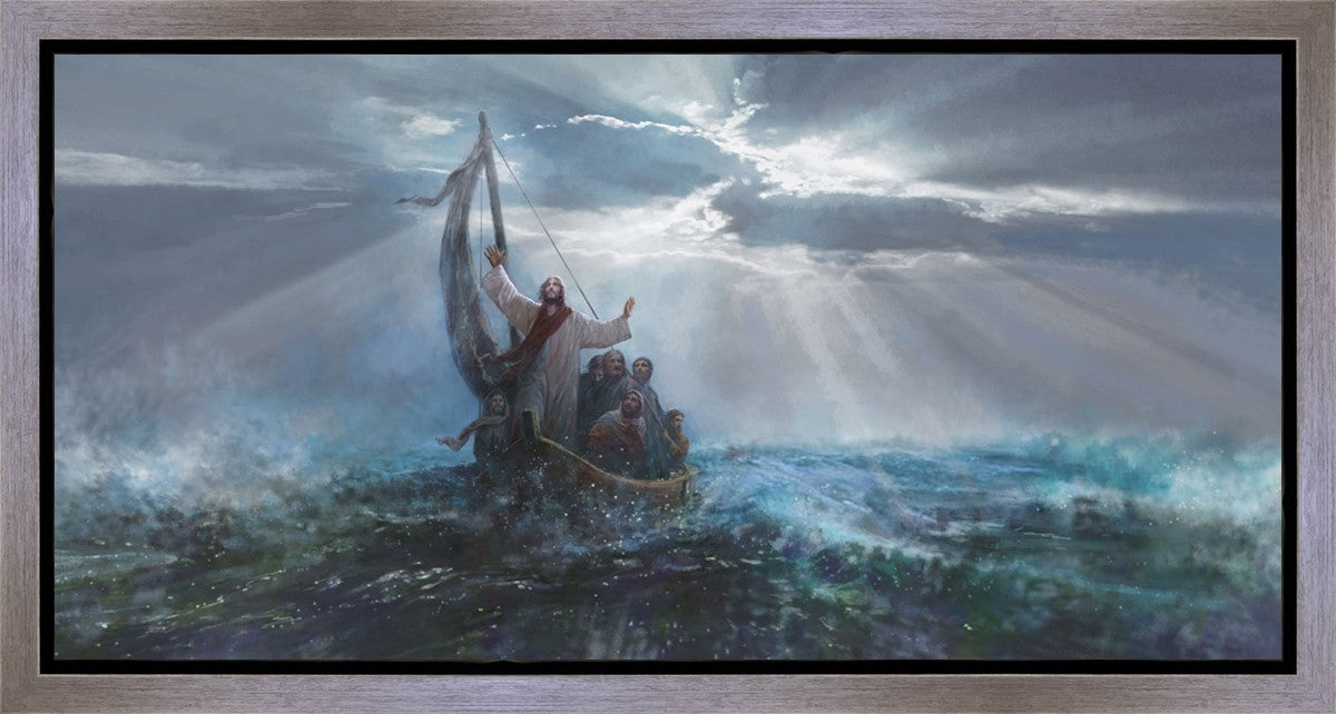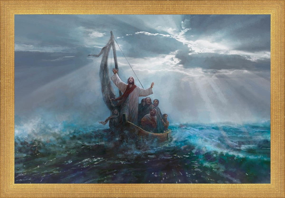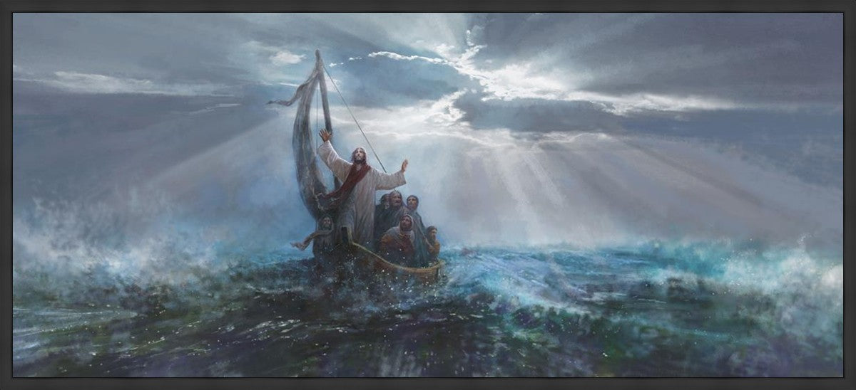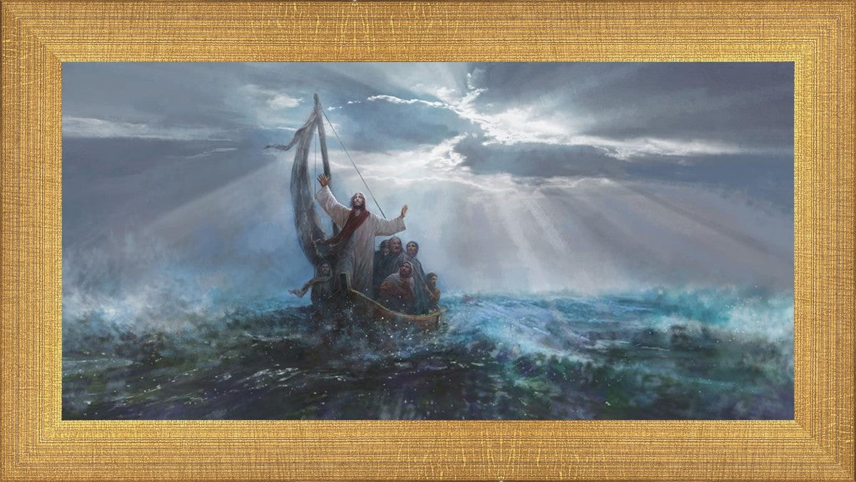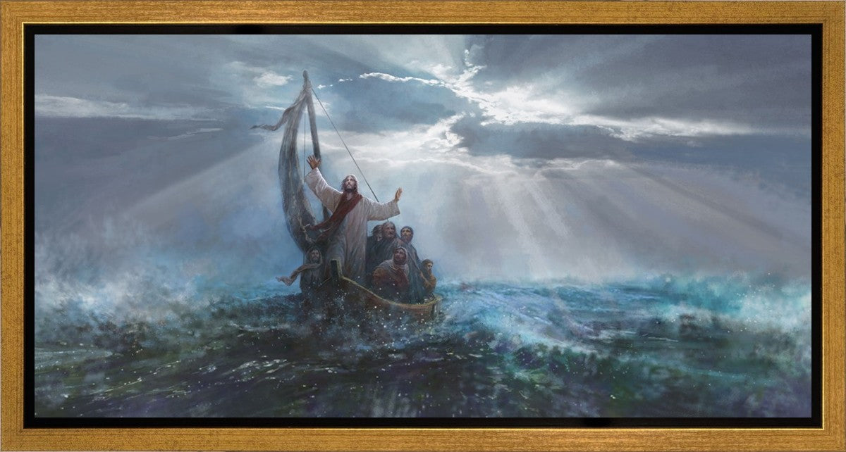 Peace Be Still is a painting by Yongsung Kim. This painting depicts Jesus Christ calming the raging sea amidst a storm.