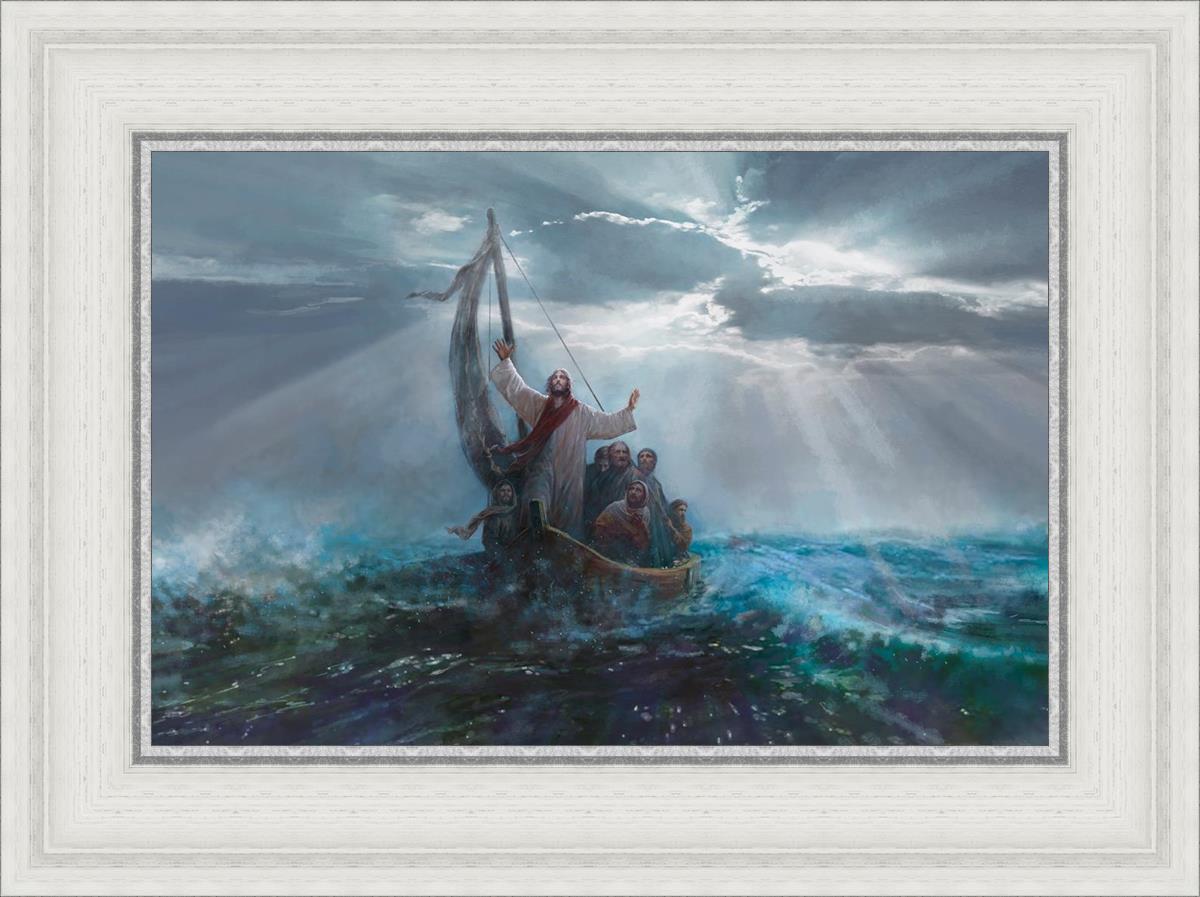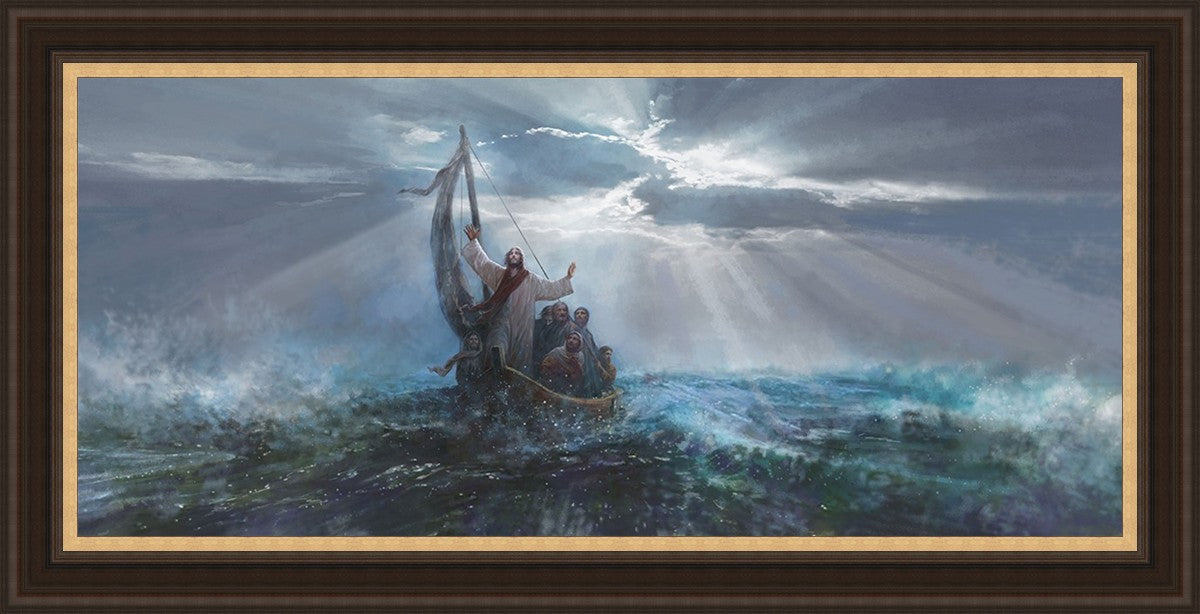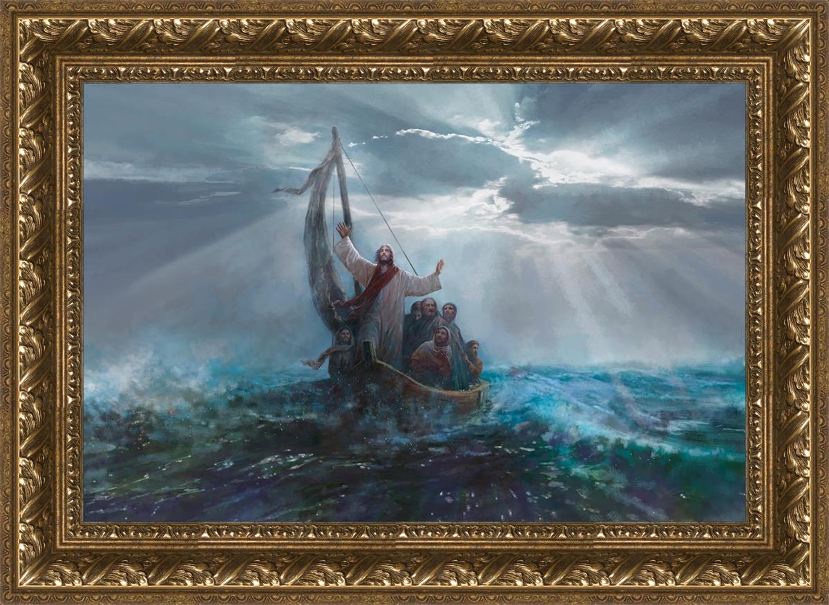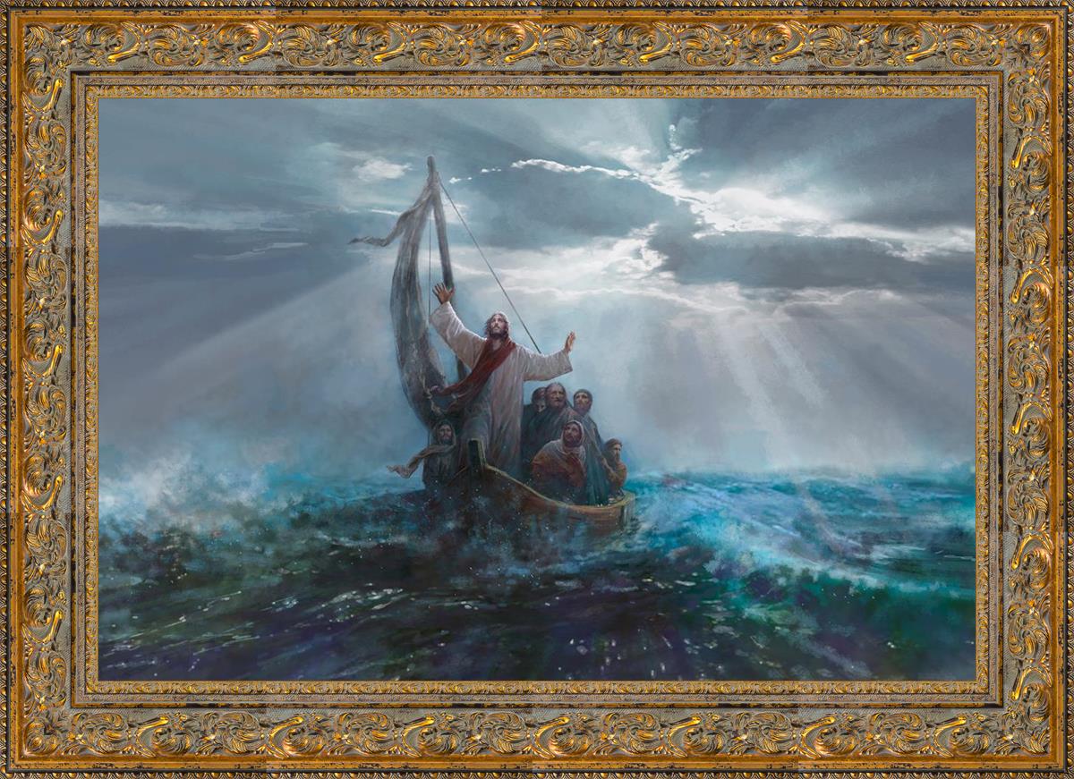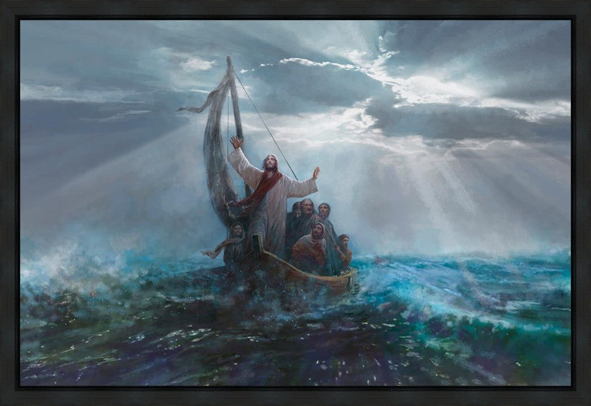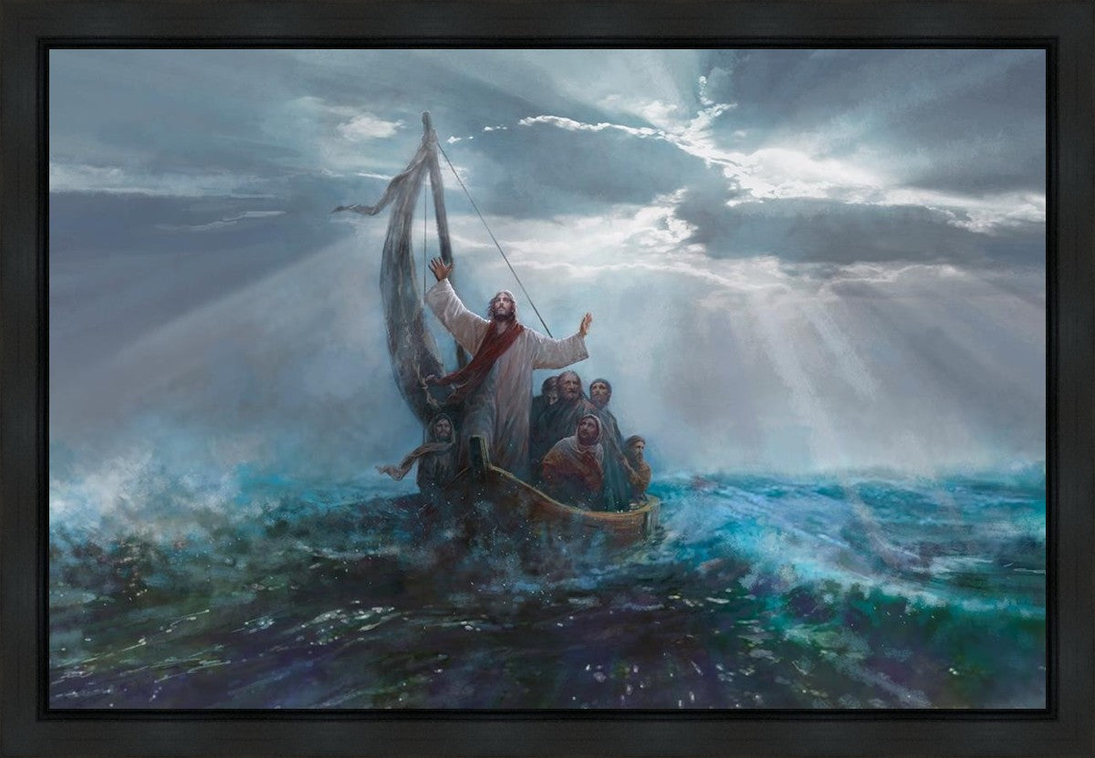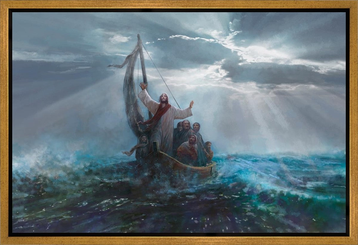 Peace Be Still is a painting by Yongsung Kim. This painting depicts Jesus Christ calming the raging sea amidst a storm.