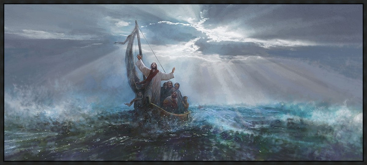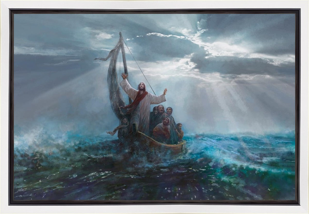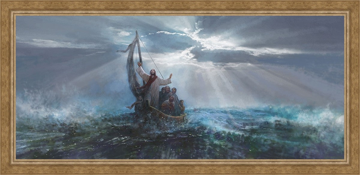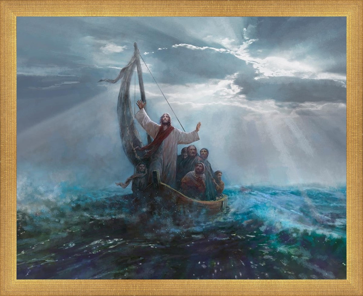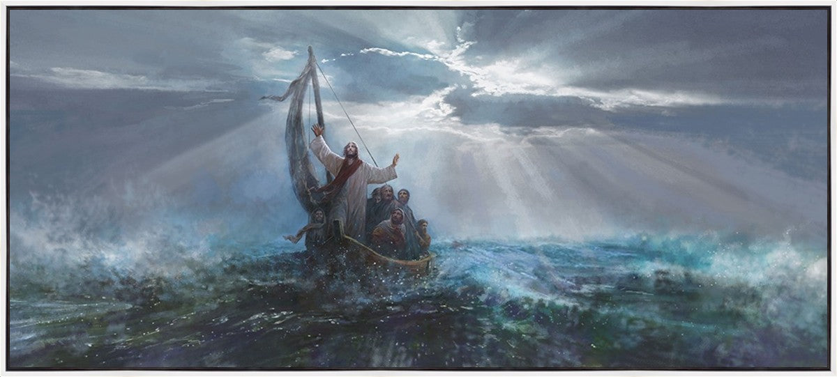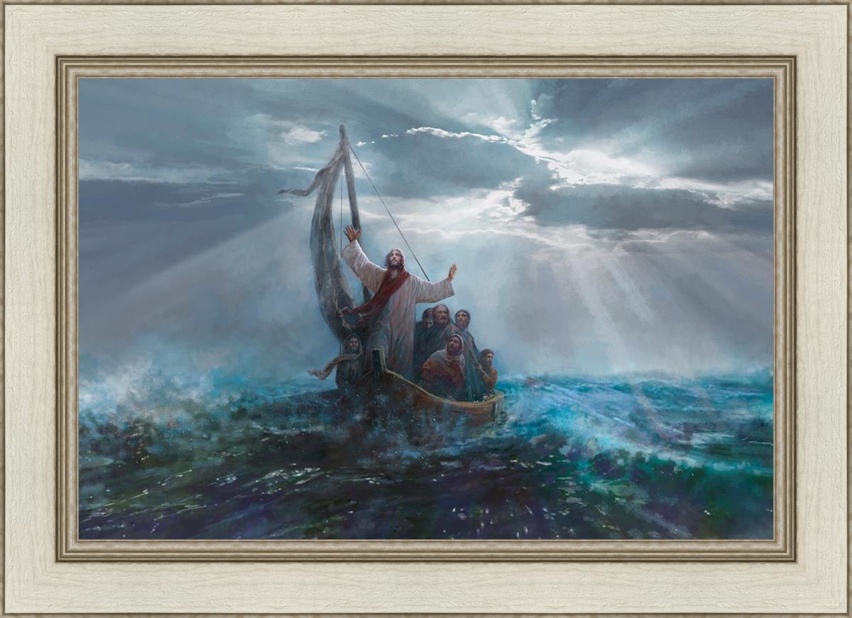 Peace Be Still is a painting by Yongsung Kim. This painting depicts Jesus Christ calming the raging sea amidst a storm.