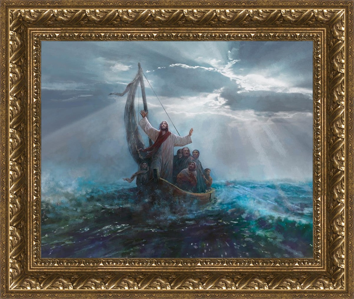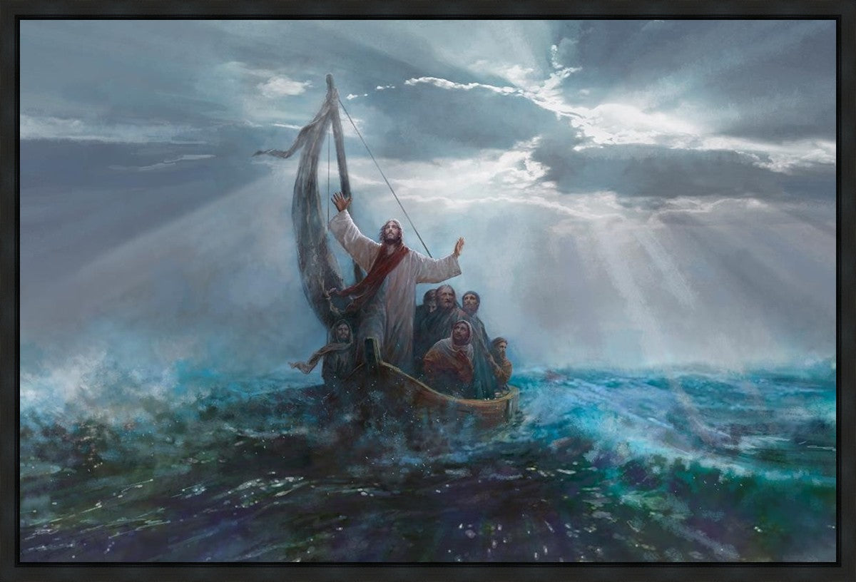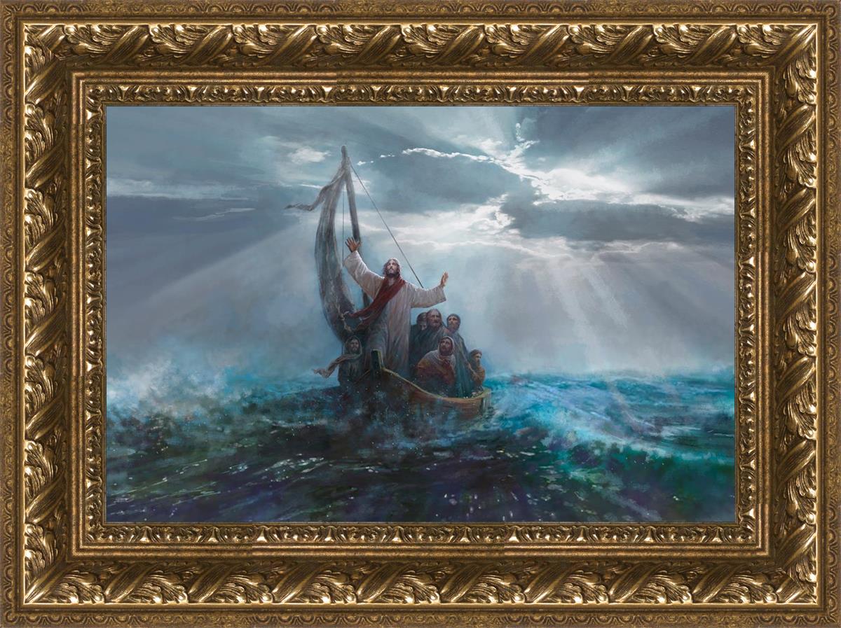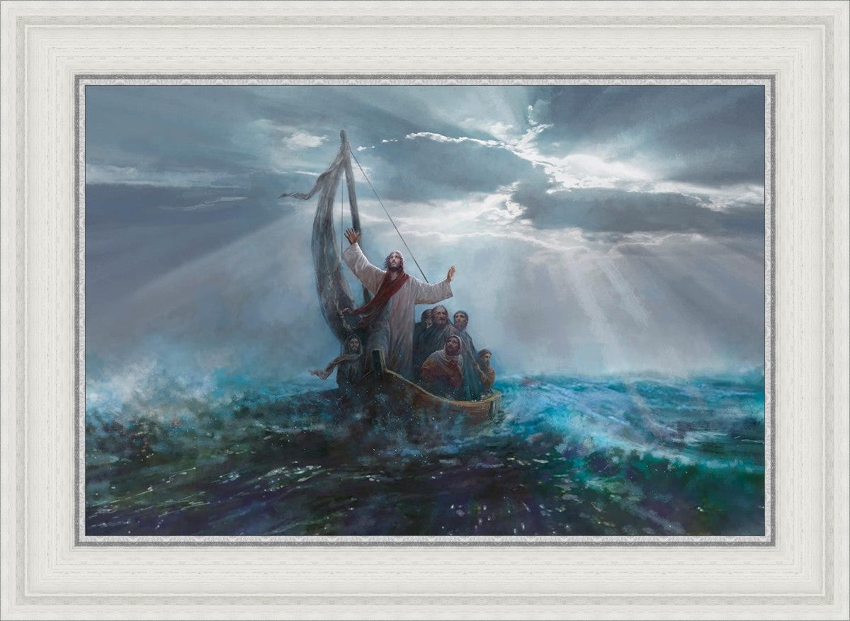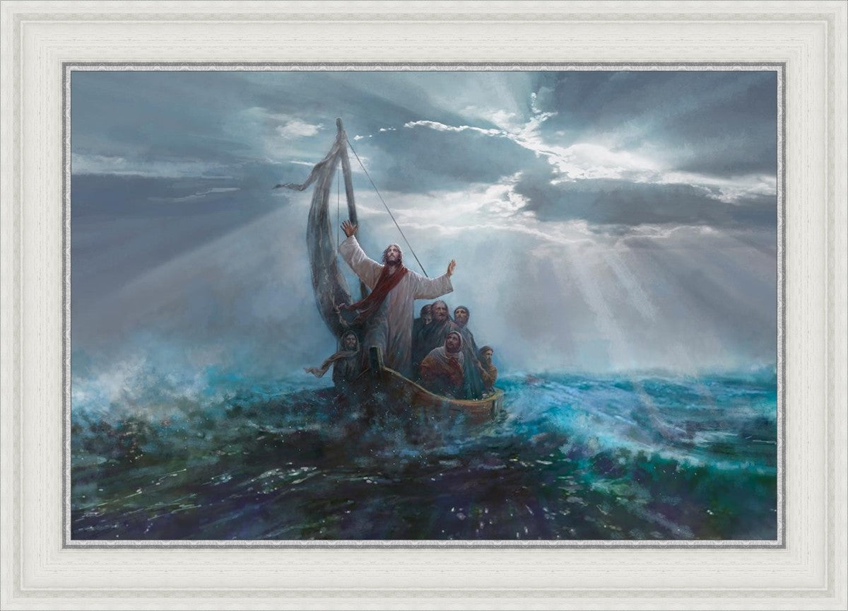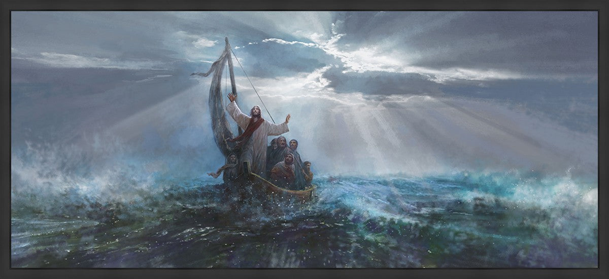Peace Be Still is a painting by Yongsung Kim. This painting depicts Jesus Christ calming the raging sea amidst a storm.