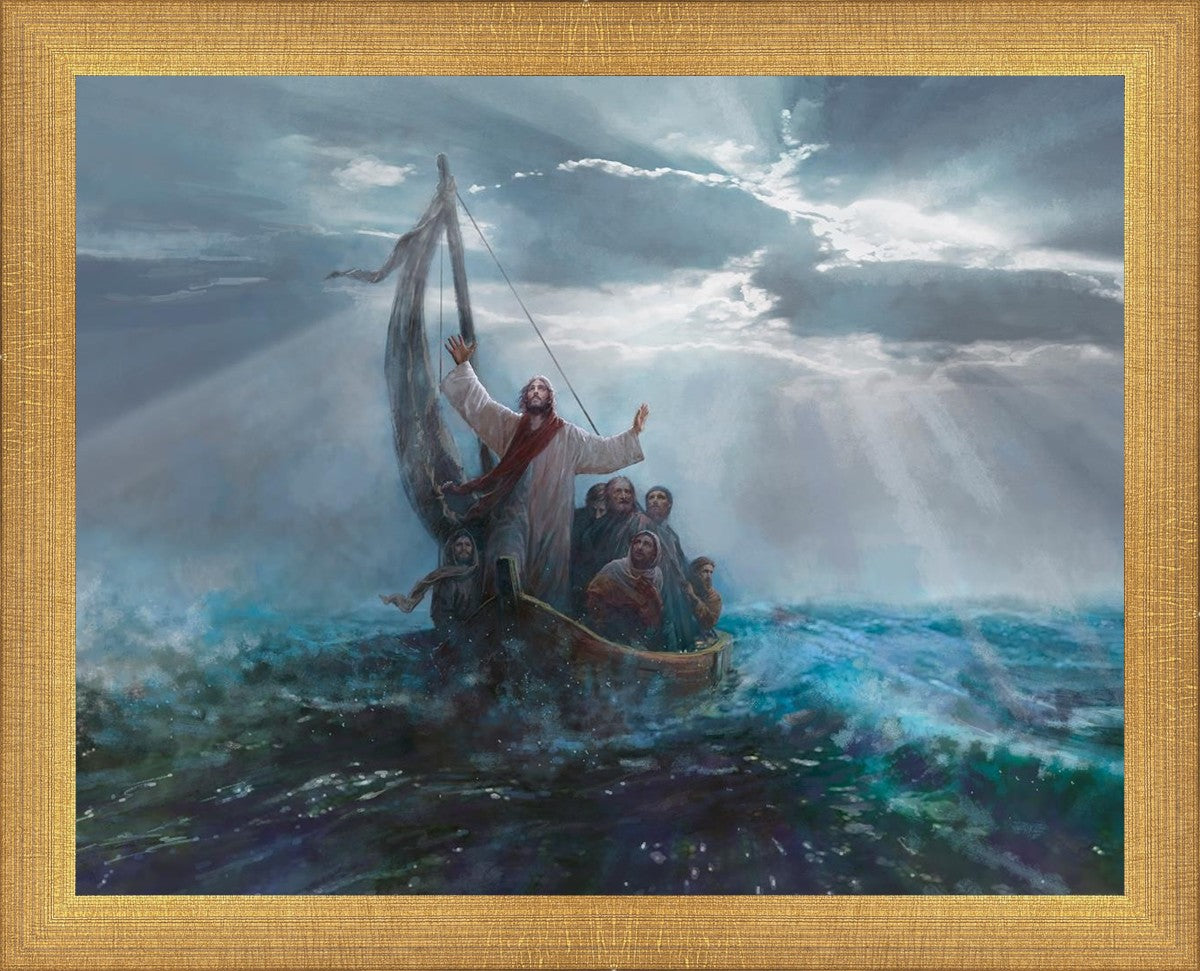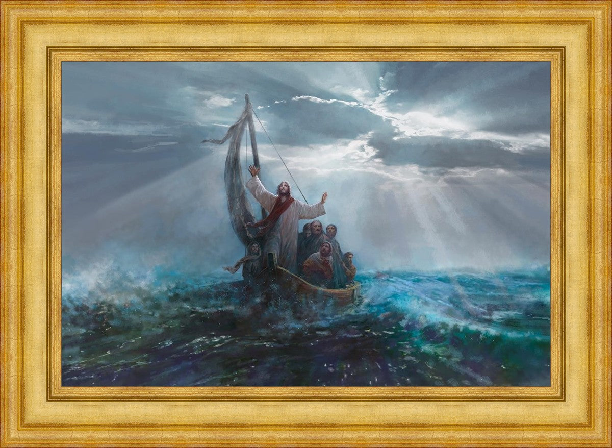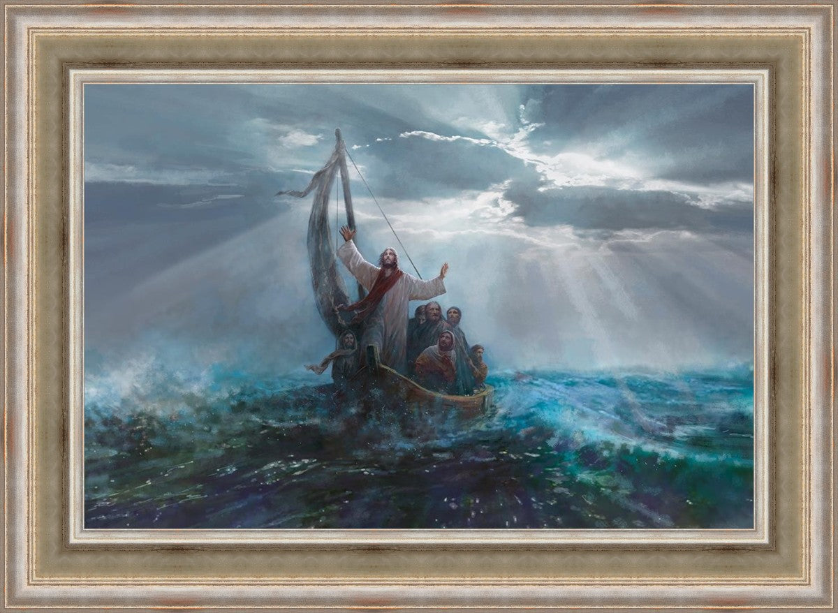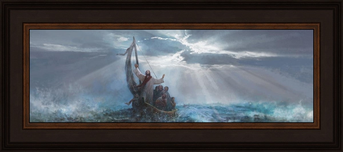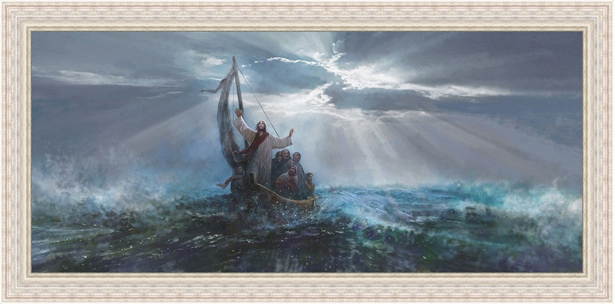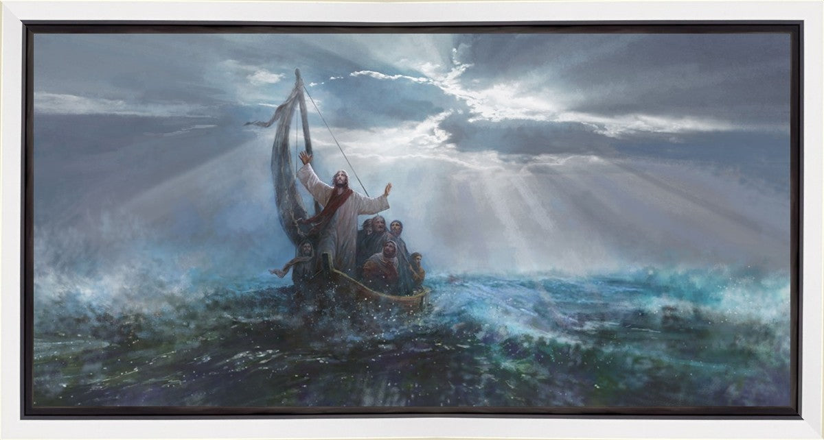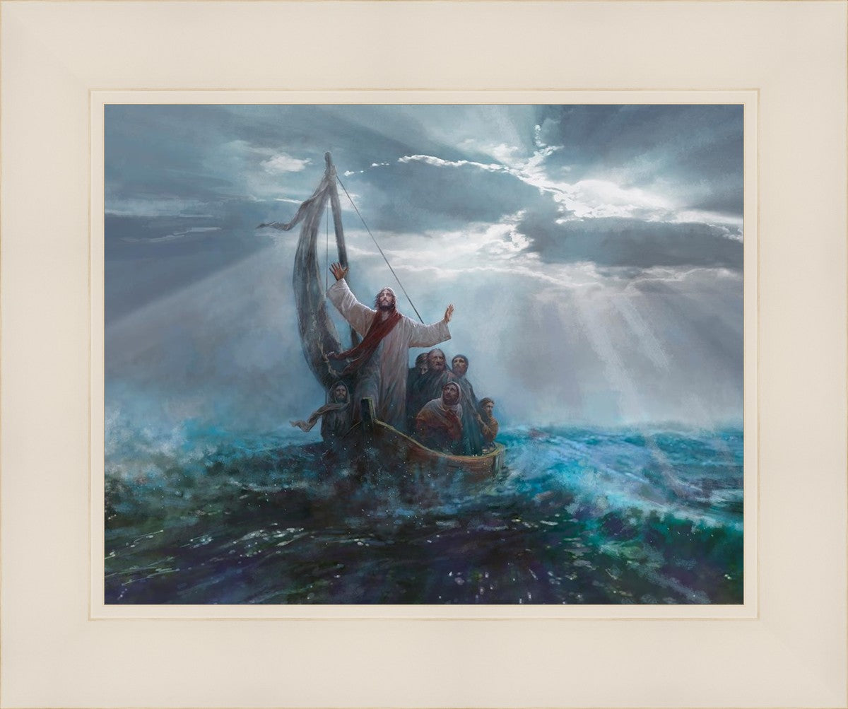 Peace Be Still is a painting by Yongsung Kim. This painting depicts Jesus Christ calming the raging sea amidst a storm.