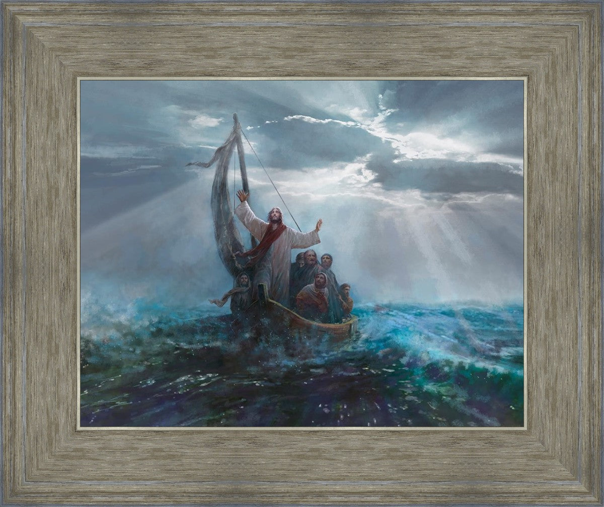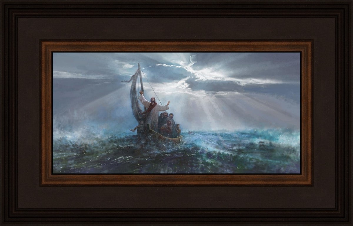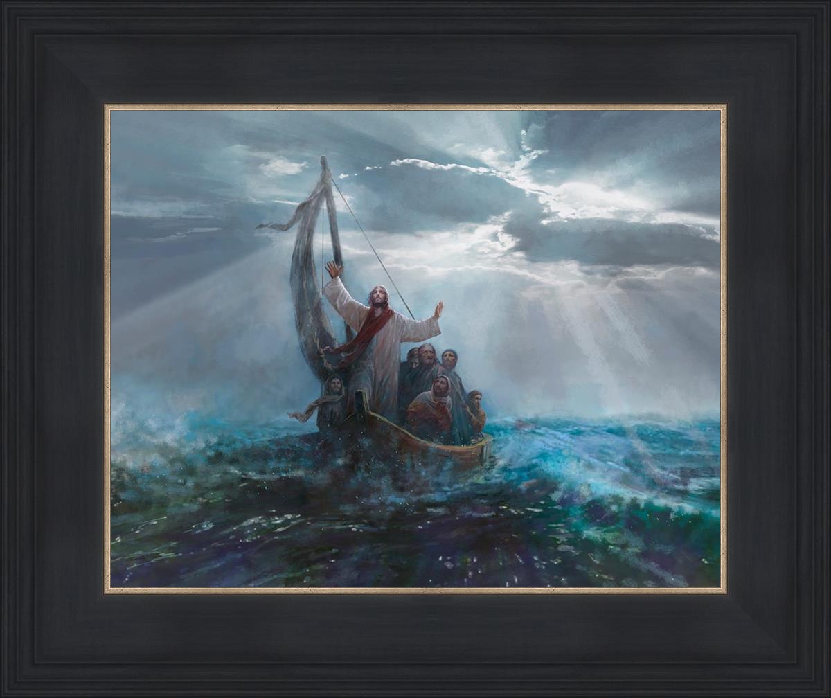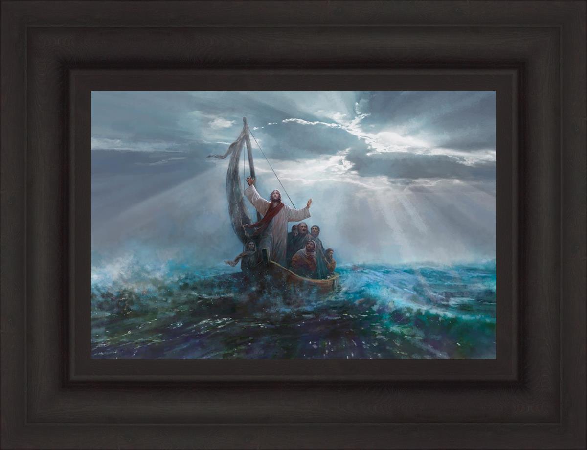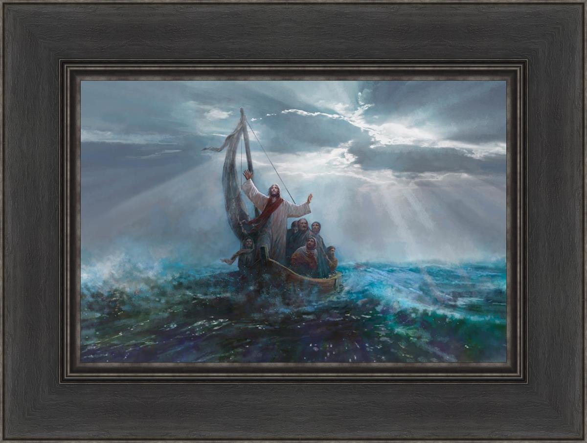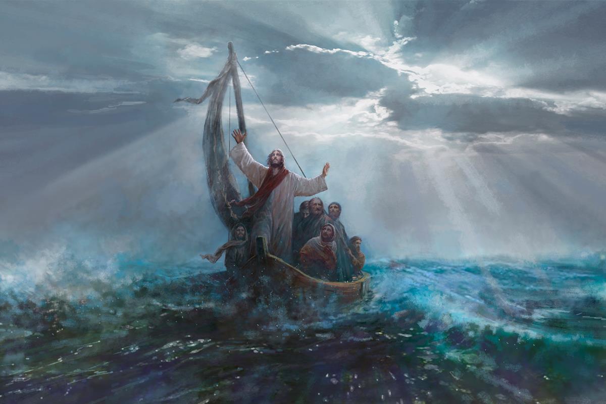 Peace Be Still is a painting by Yongsung Kim. This painting depicts Jesus Christ calming the raging sea amidst a storm.