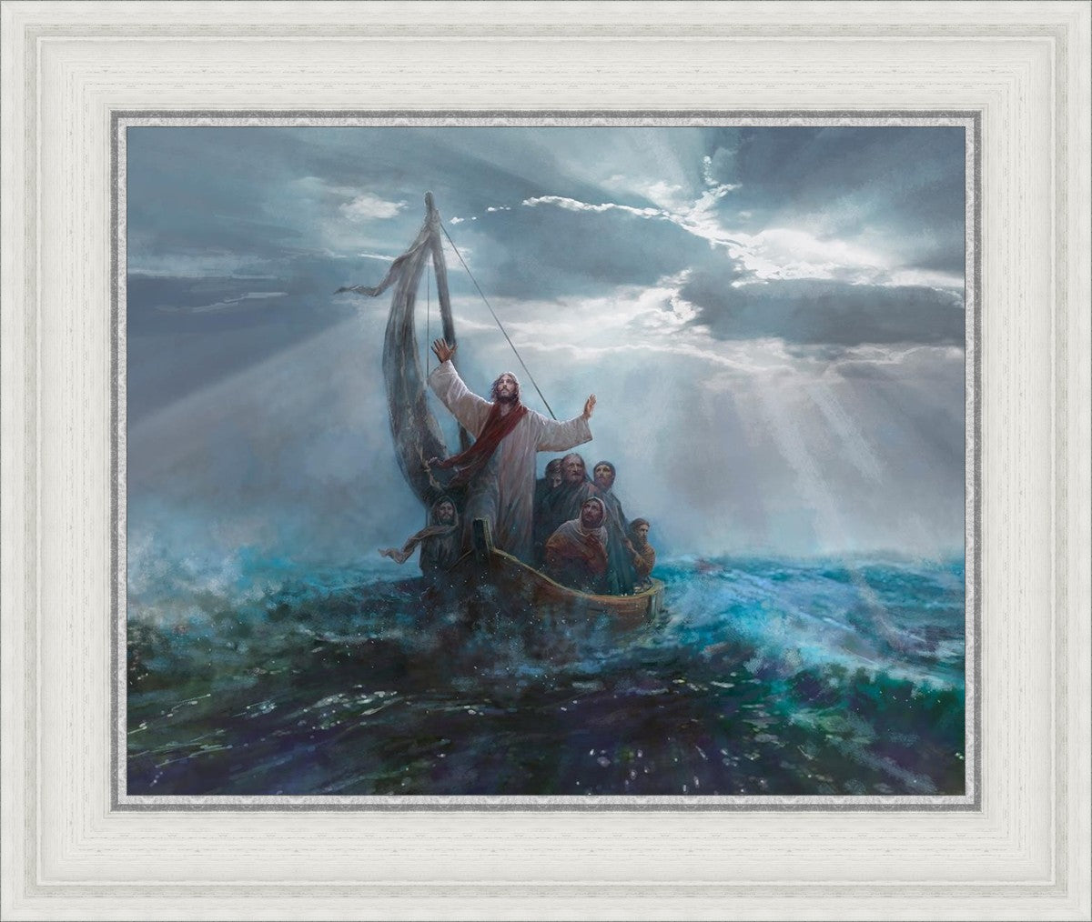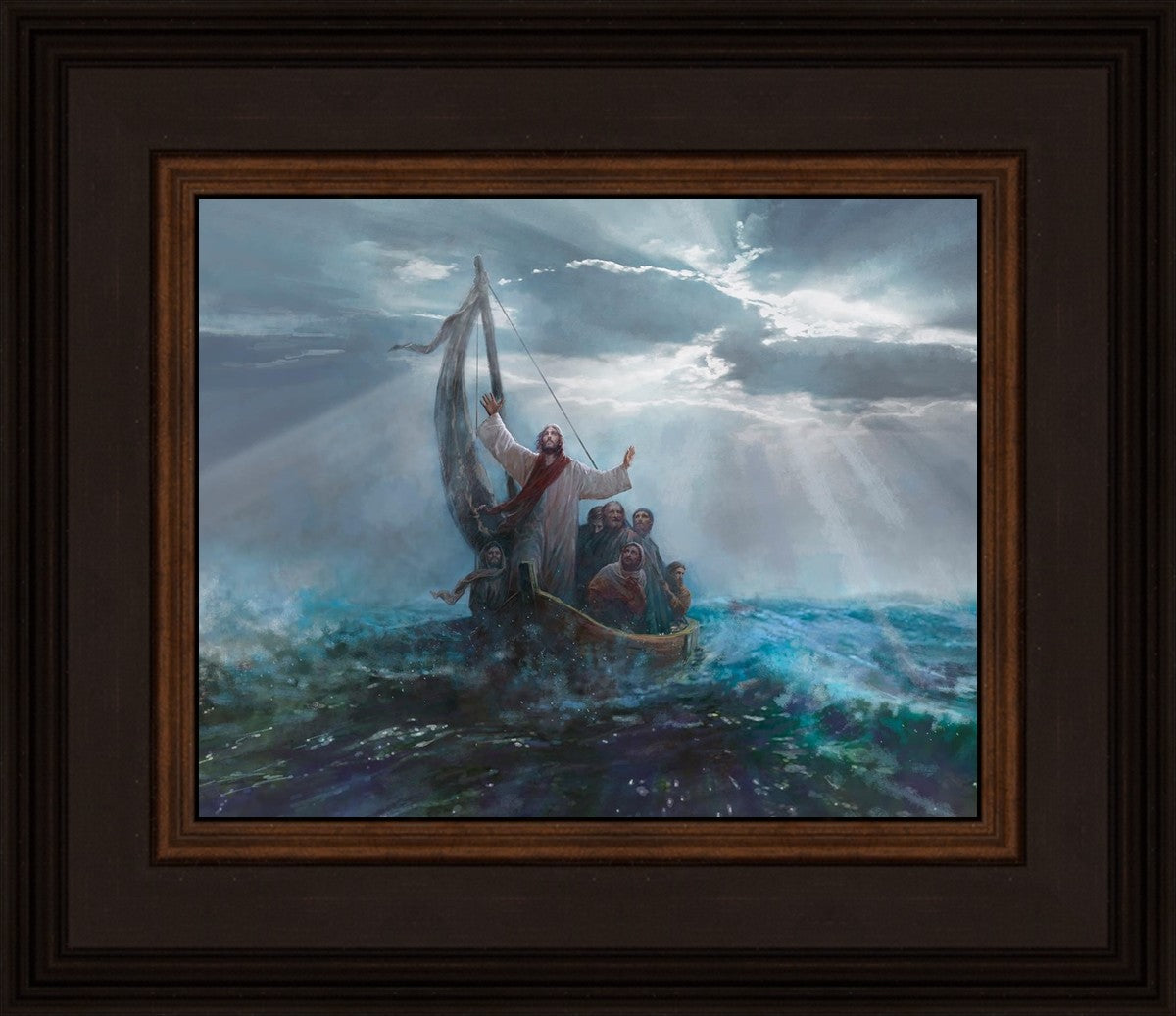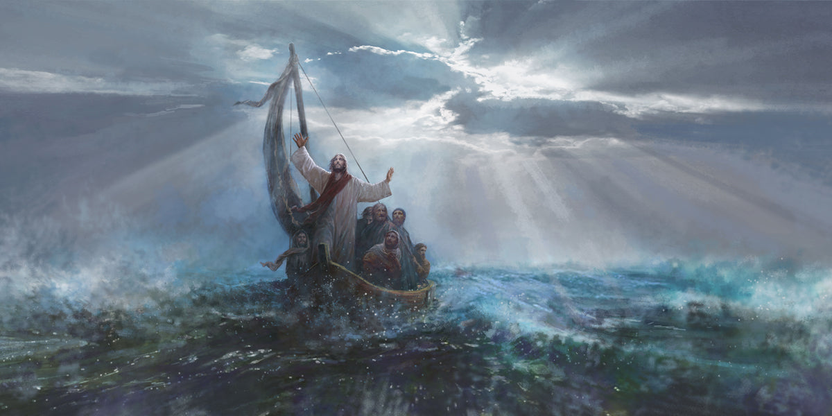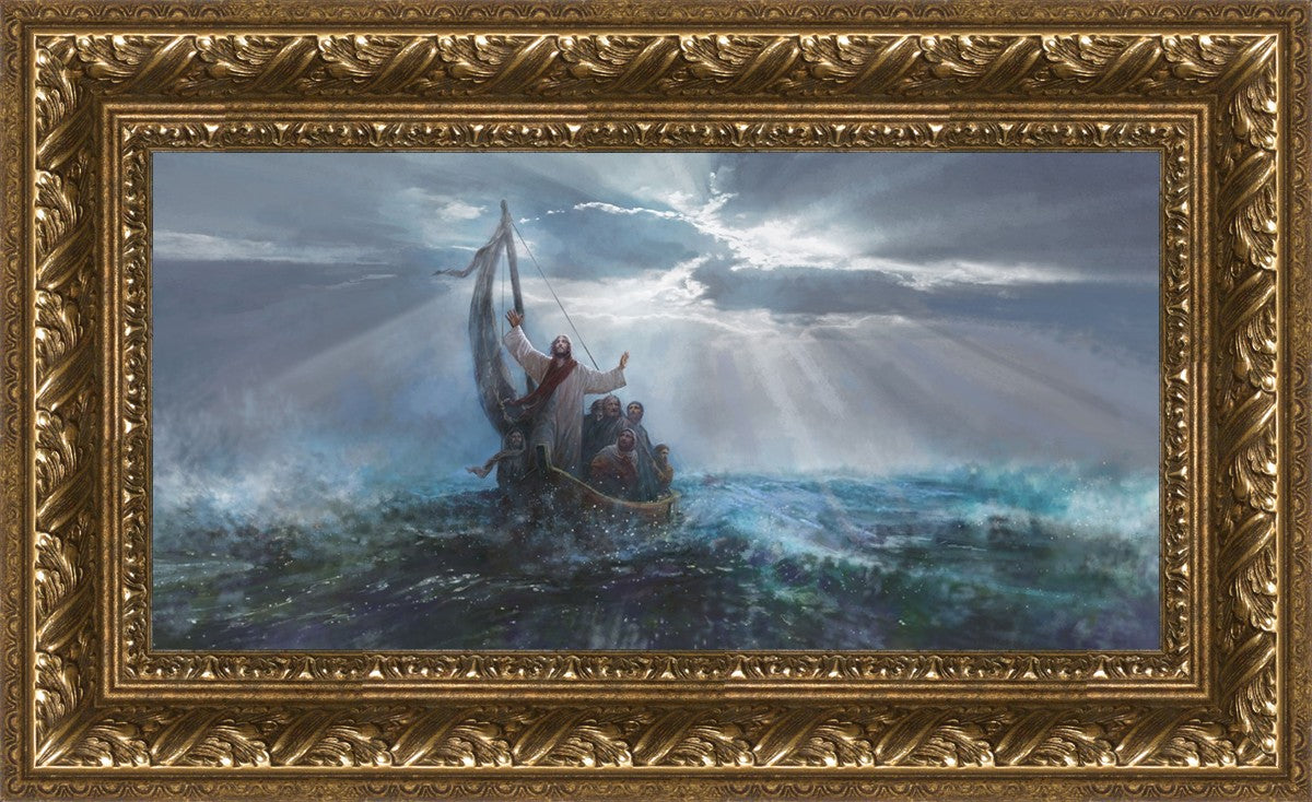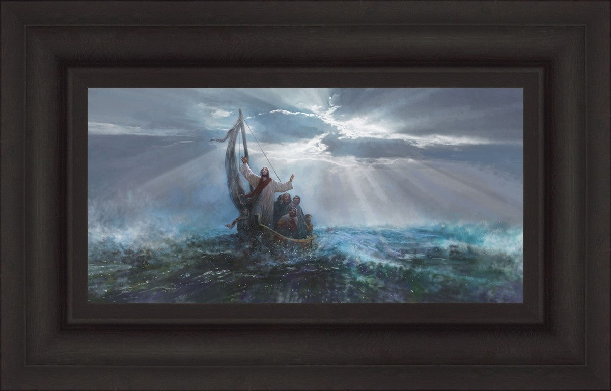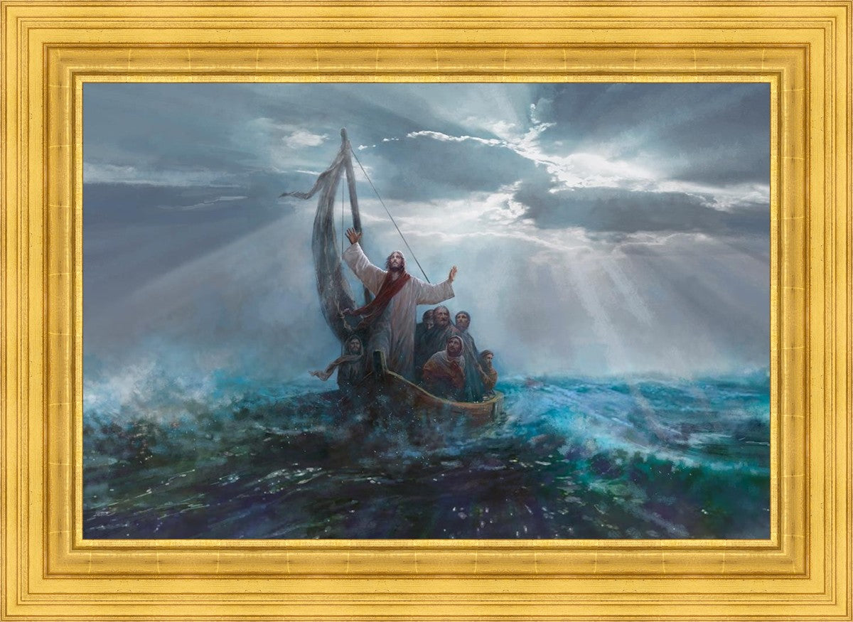 Peace Be Still is a painting by Yongsung Kim. This painting depicts Jesus Christ calming the raging sea amidst a storm.