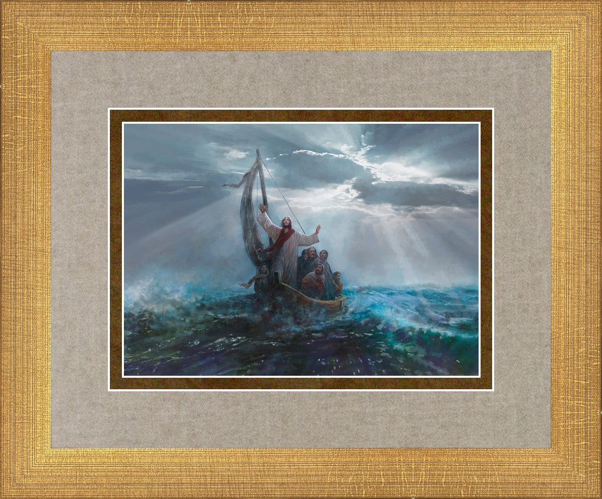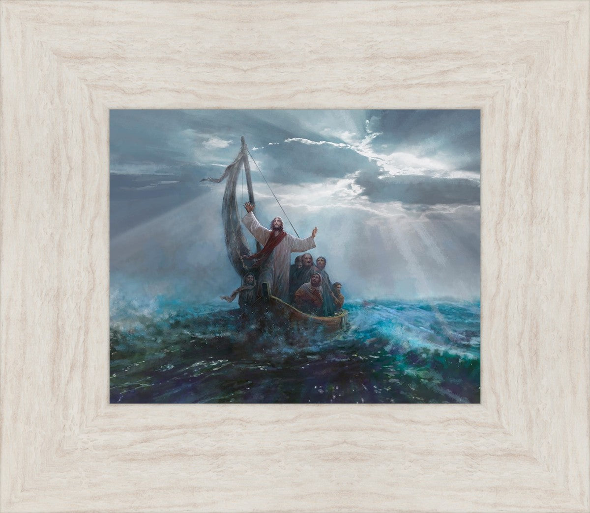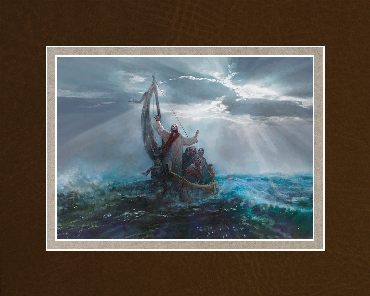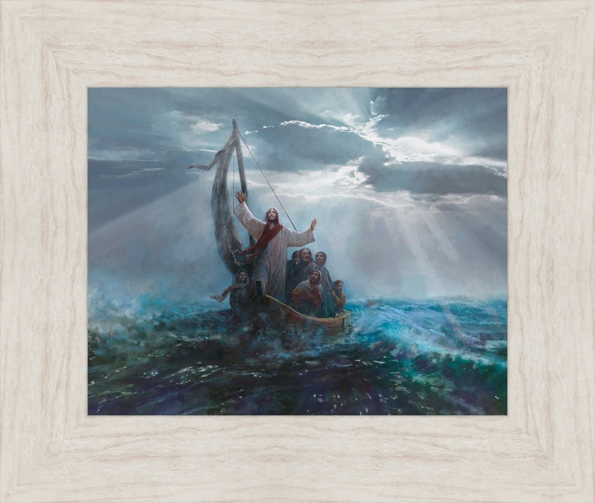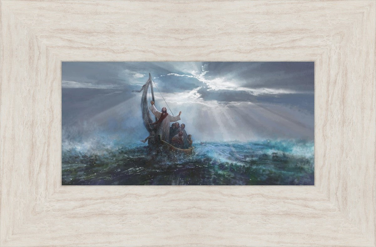 Peace Be Still is a painting by Yongsung Kim. This painting depicts Jesus Christ calming the raging sea amidst a storm.