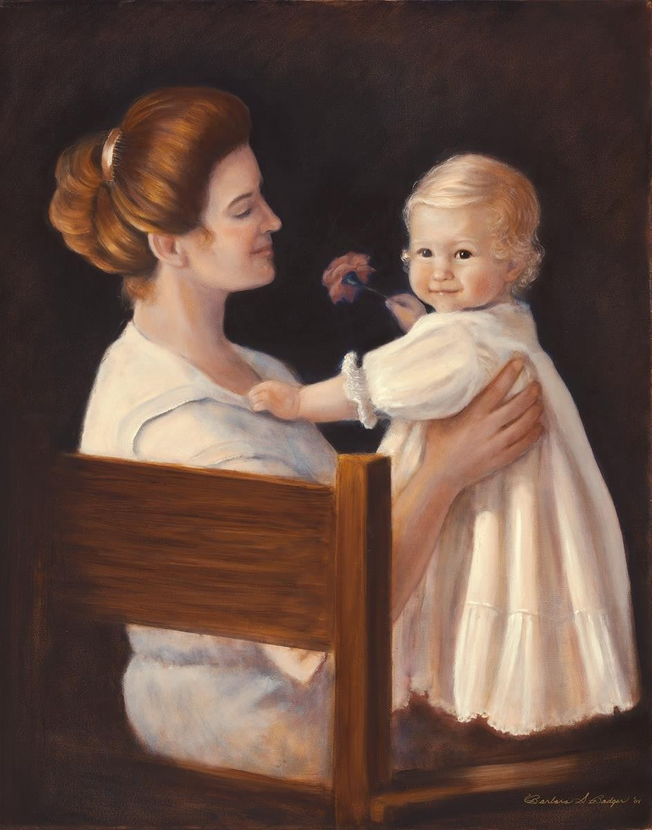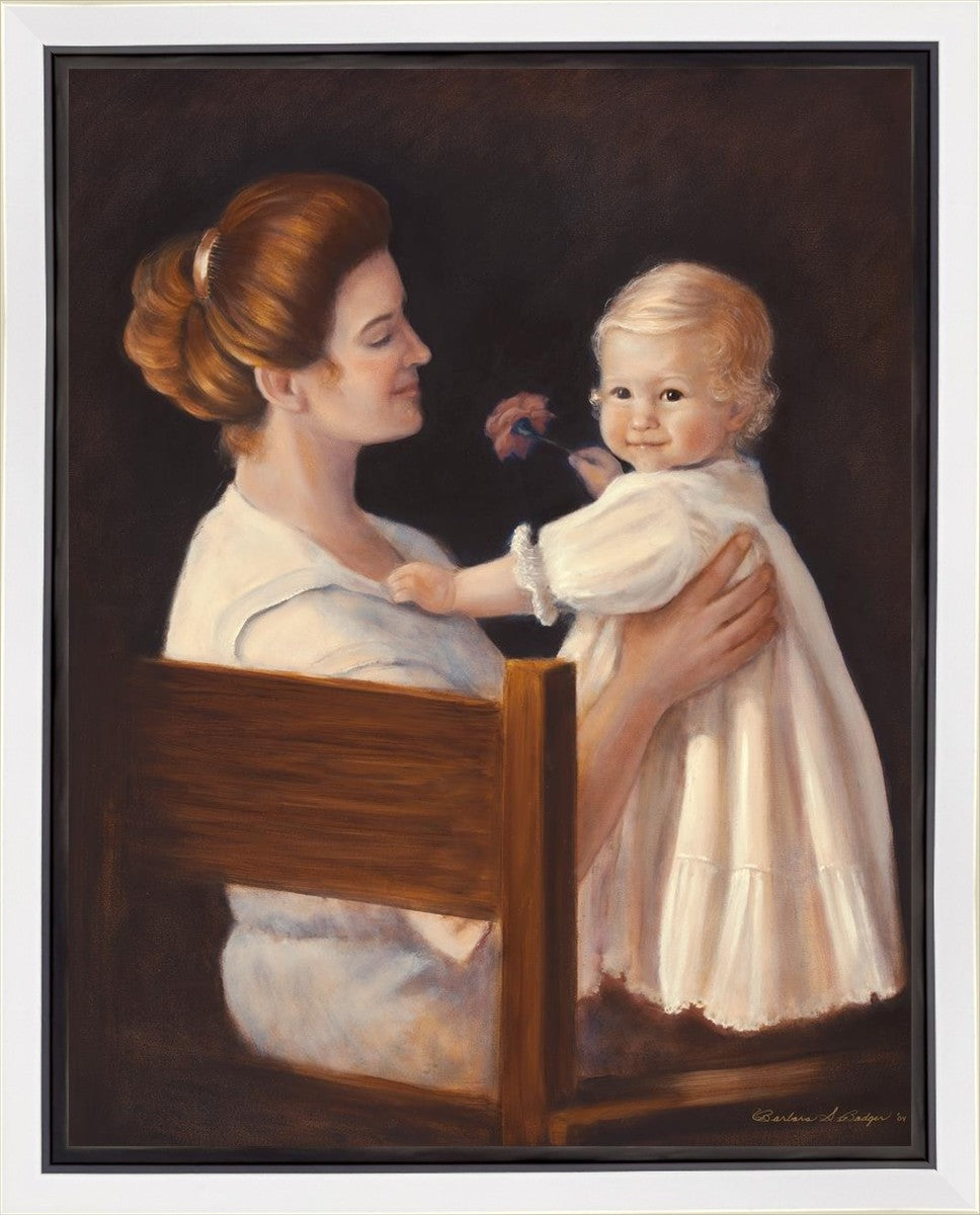 Barbara took private drawing lessons in school as a child and continued her art education in high school and at Ricks College, where Oliver Parsons was her favorite teacher. He said that she had a talent for faces and should specialize in portraits. She graduated from BYU and continued her education by traveling to workshops and the classes in the Portrait Society of America. She has done commissioned oil portraits and paints for the joy of it.