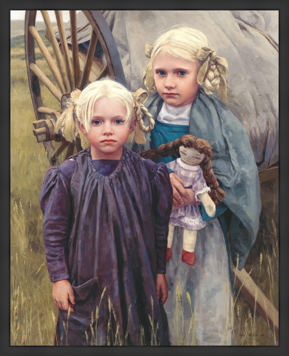 As the painting came “to life” it took on a spirit of its own and transcended from a painting of two Utah girls used in a movie set to “become” my great-grandmother Margaret Stallé and her older sister Marie.