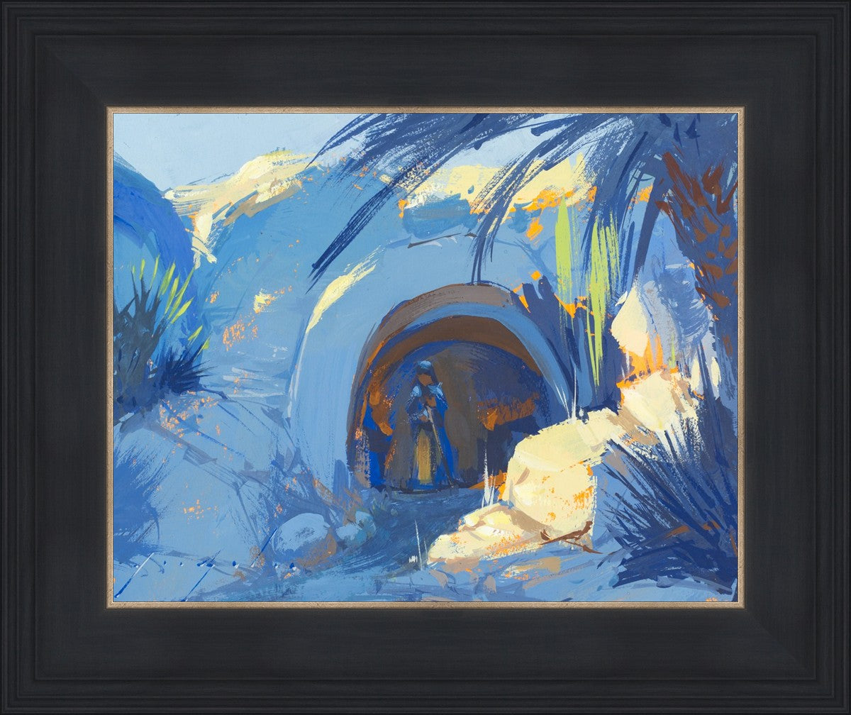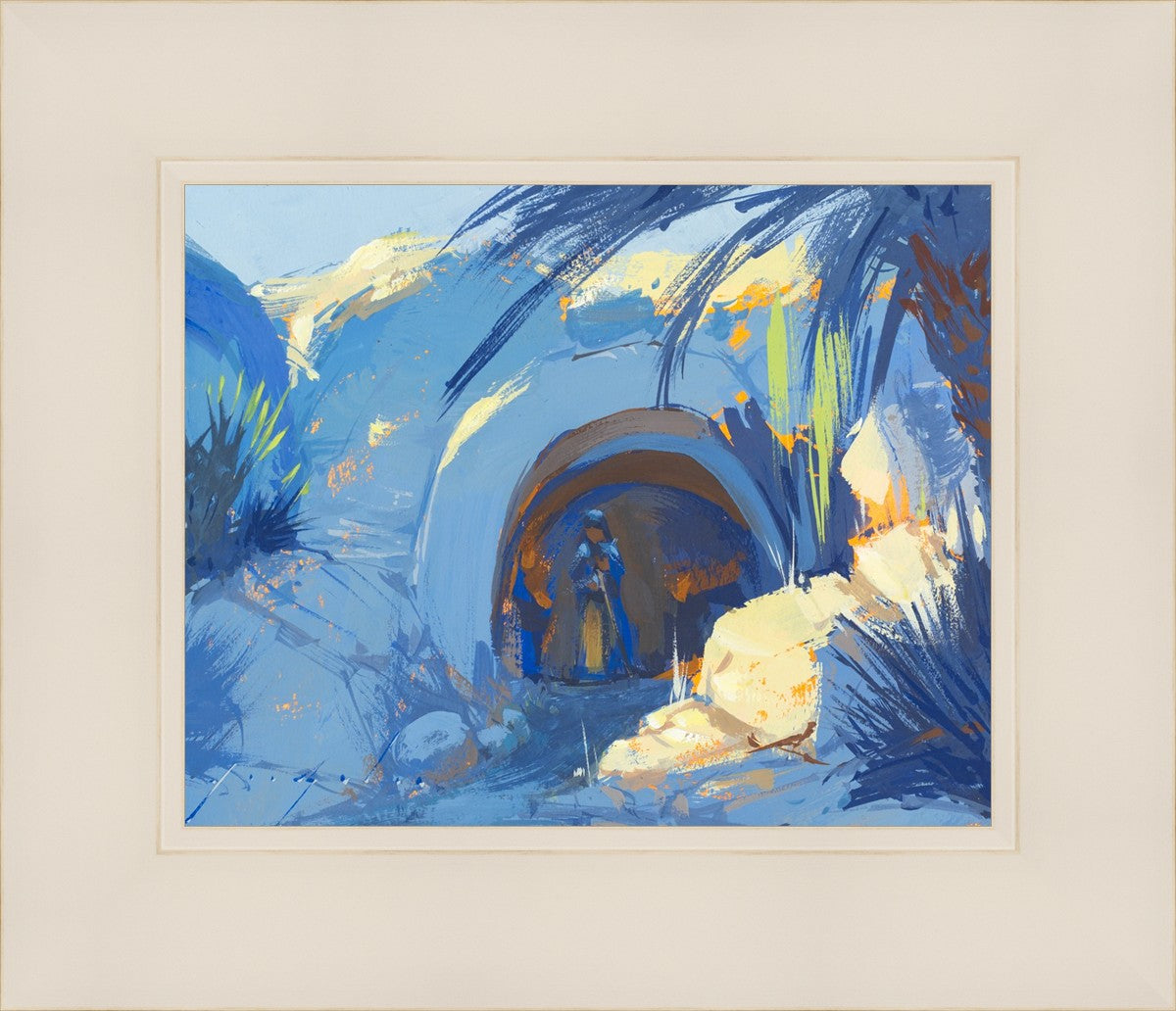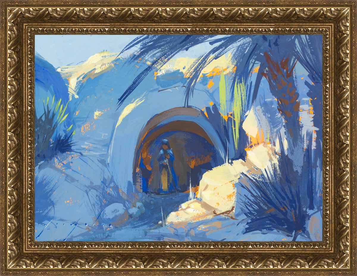 Here is the preparation for Christ's burial in the tomb. This most likely was done by close friends to Jesus. There is a melancholy feel in this scene but bright warm light foreshadowing the miracle of what was to come.