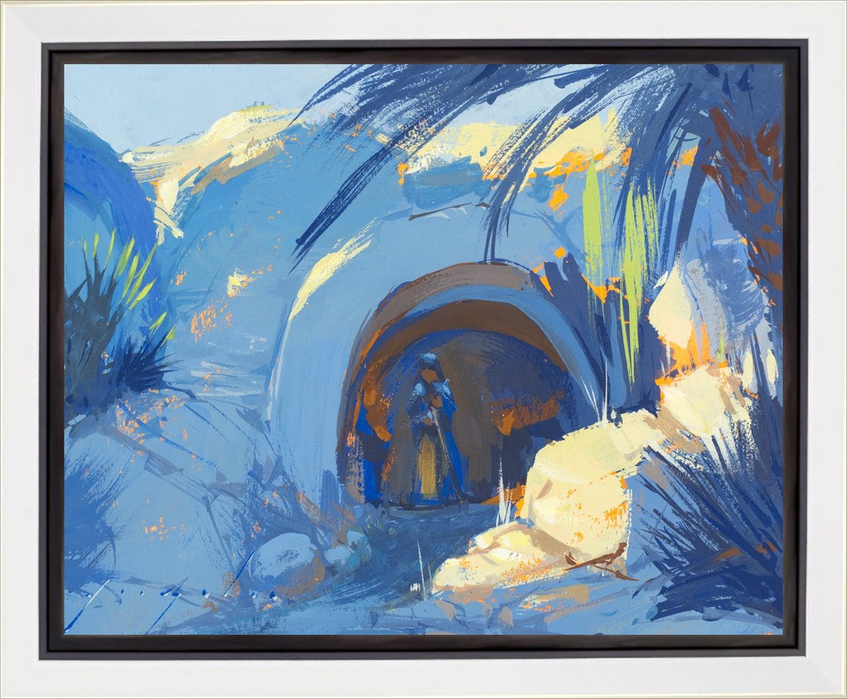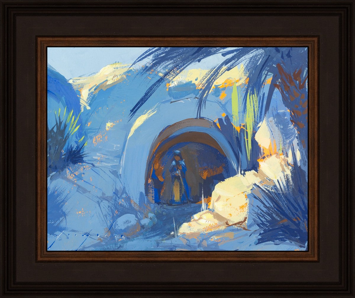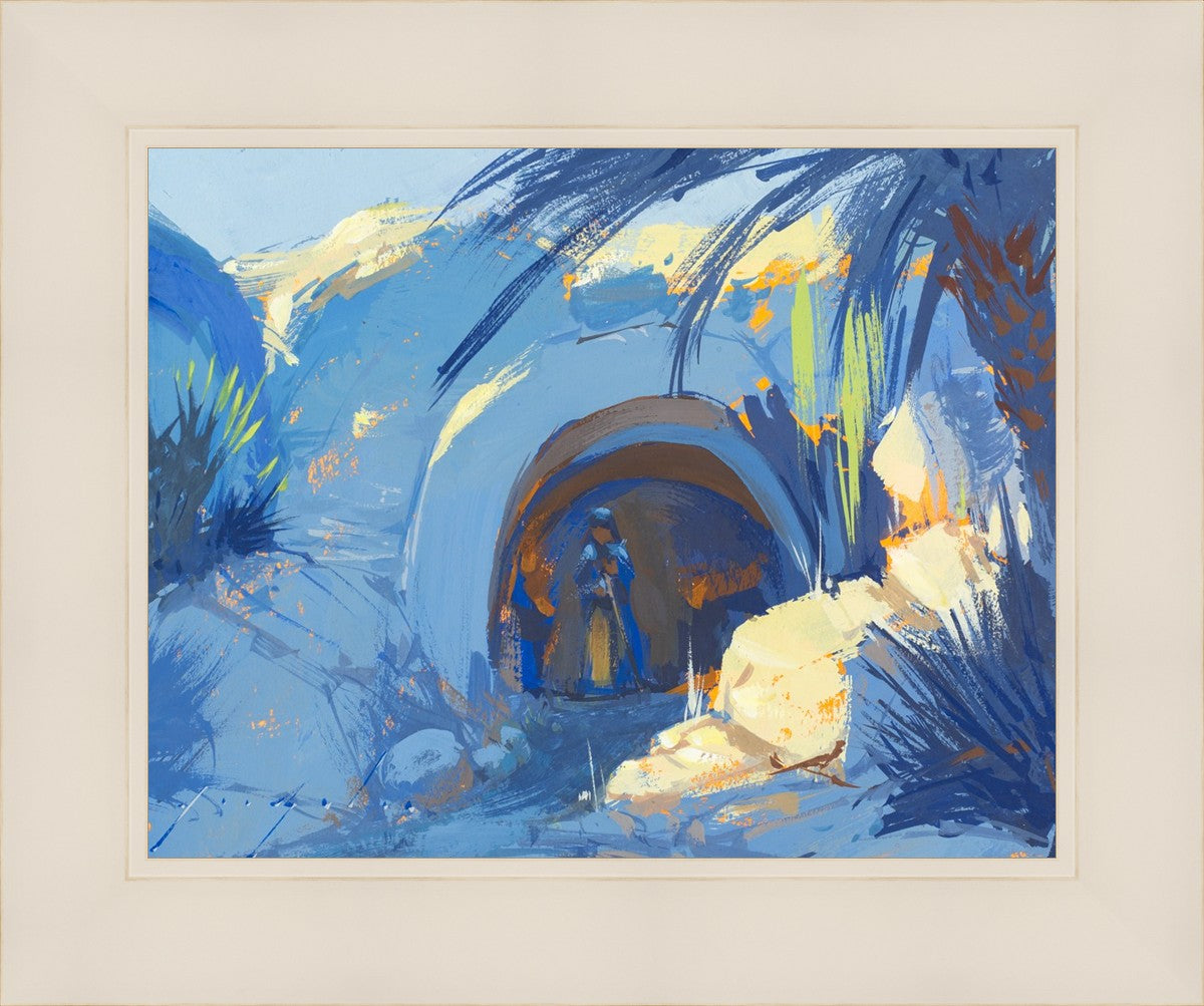 Here is the preparation for Christ's burial in the tomb. This most likely was done by close friends to Jesus. There is a melancholy feel in this scene but bright warm light foreshadowing the miracle of what was to come.
