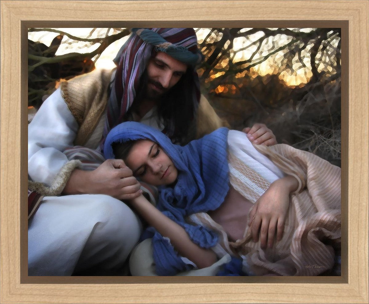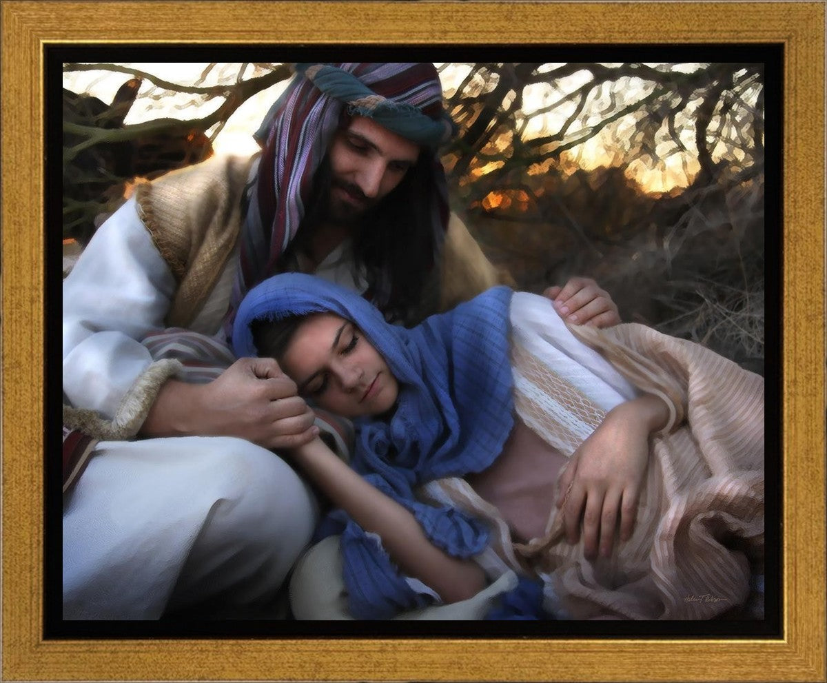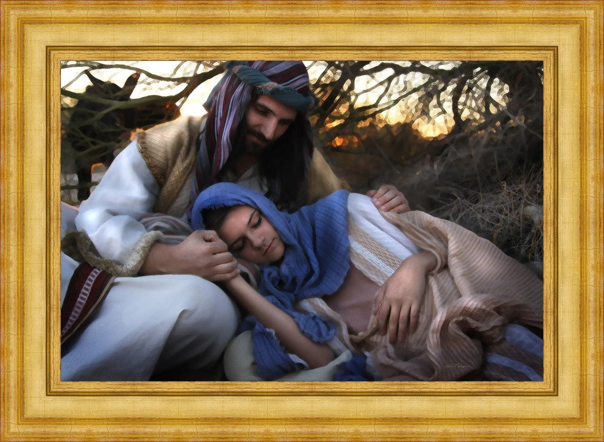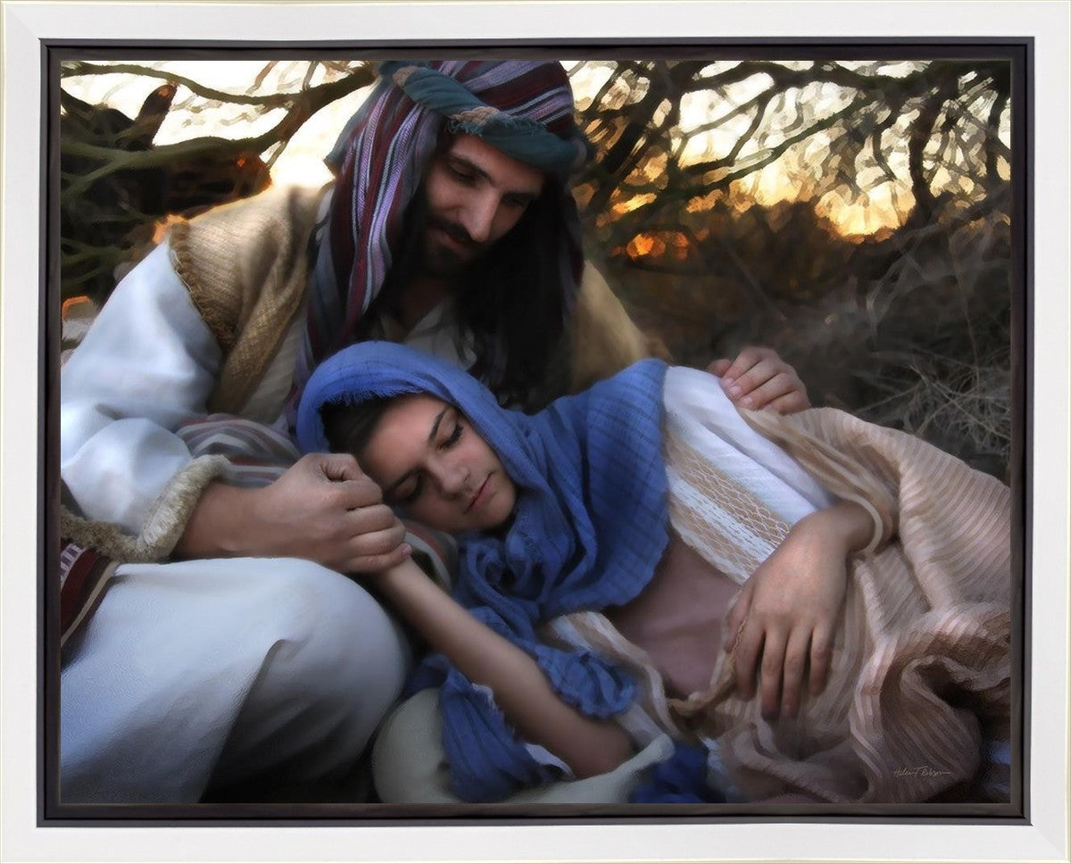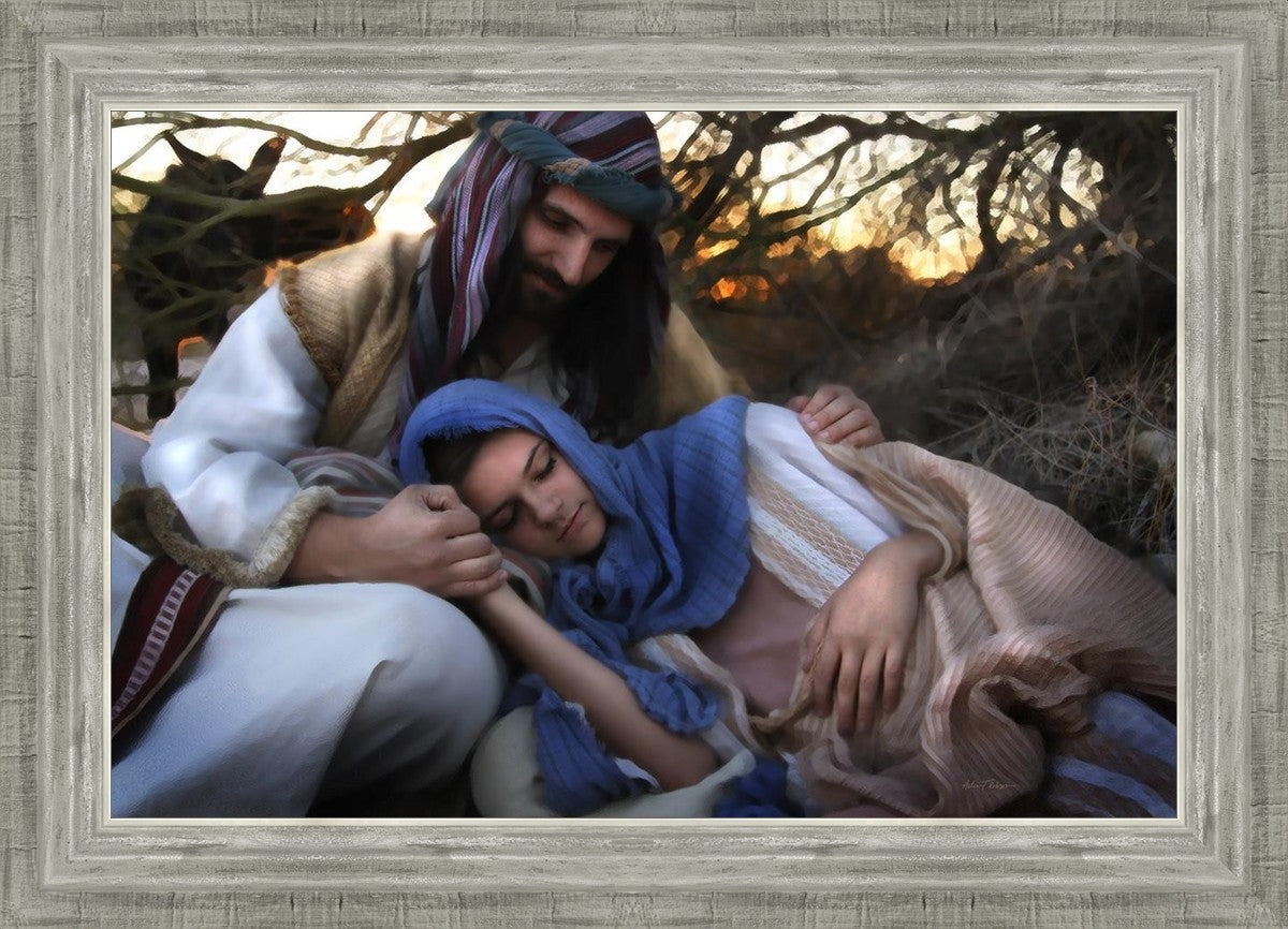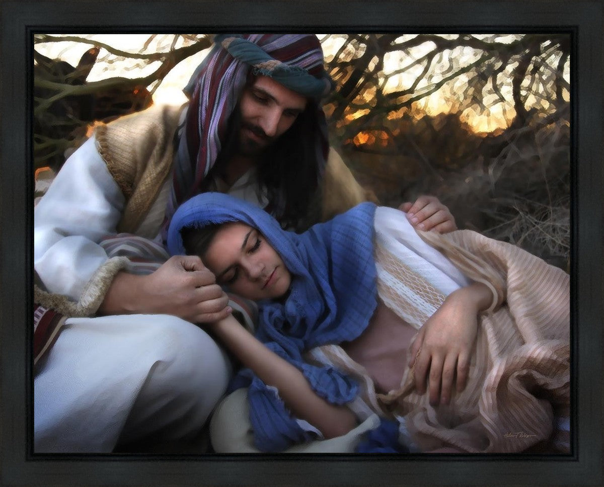 Joseph caring for and protecting Mary on their journey to Bethlehem