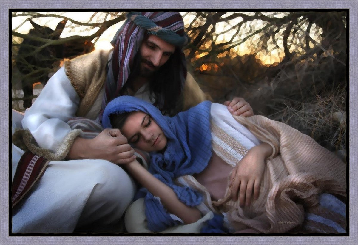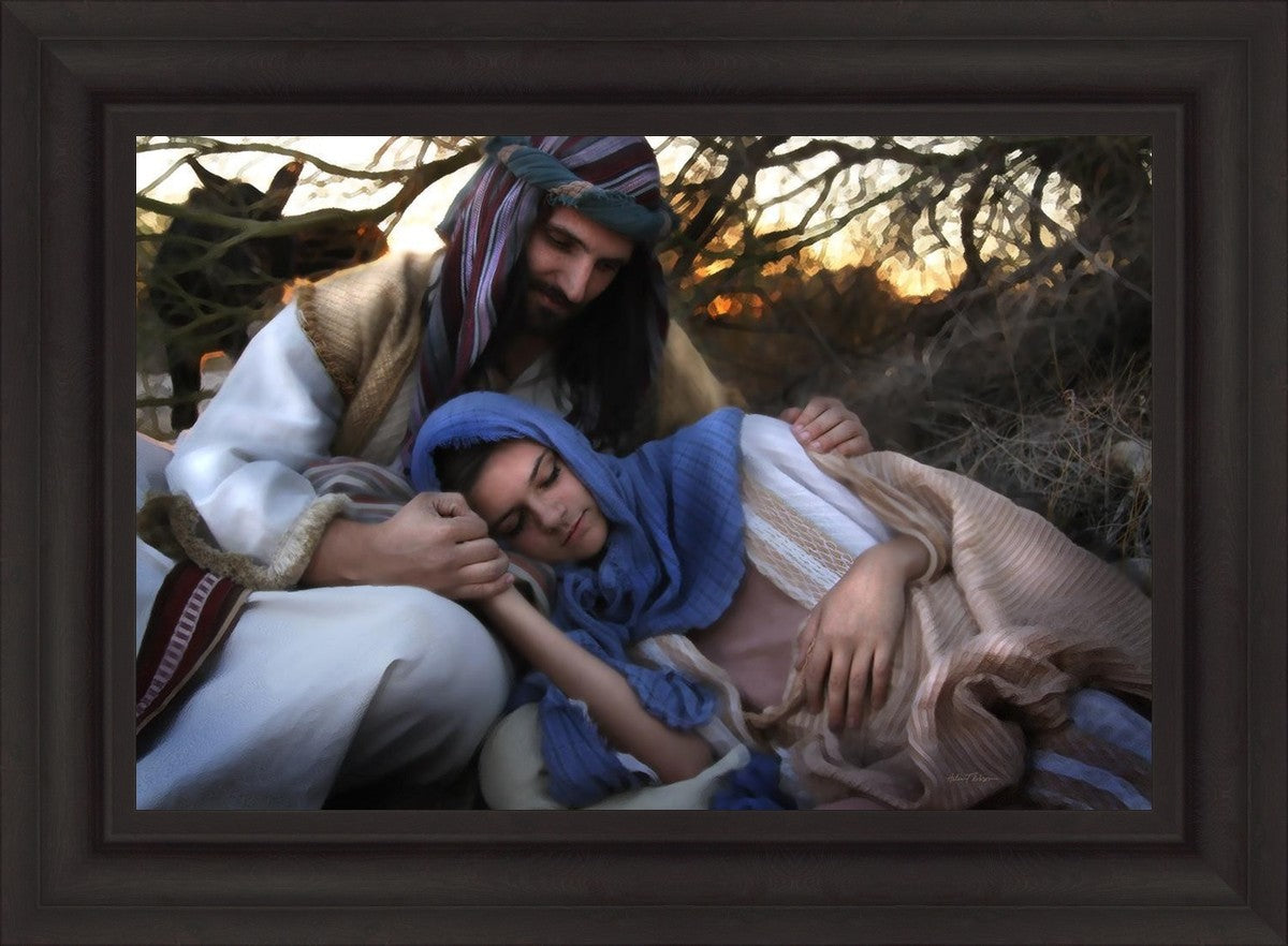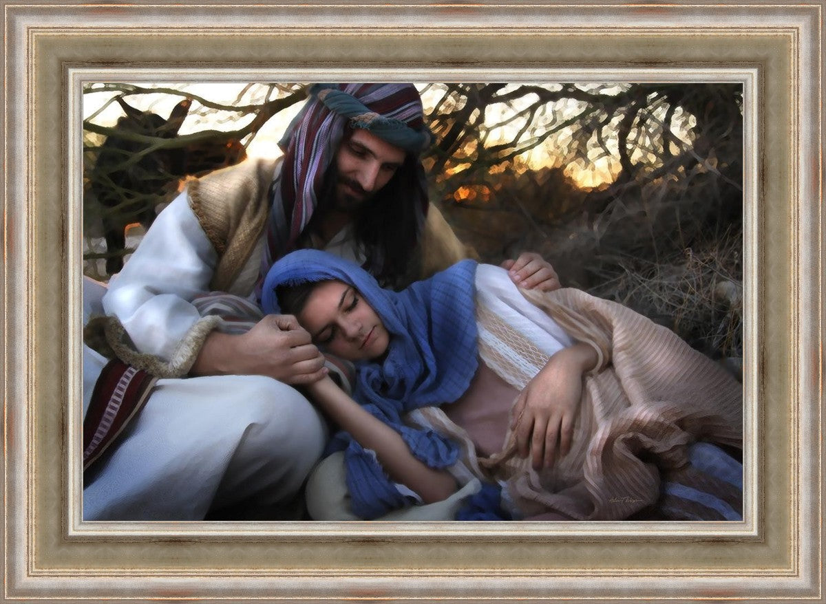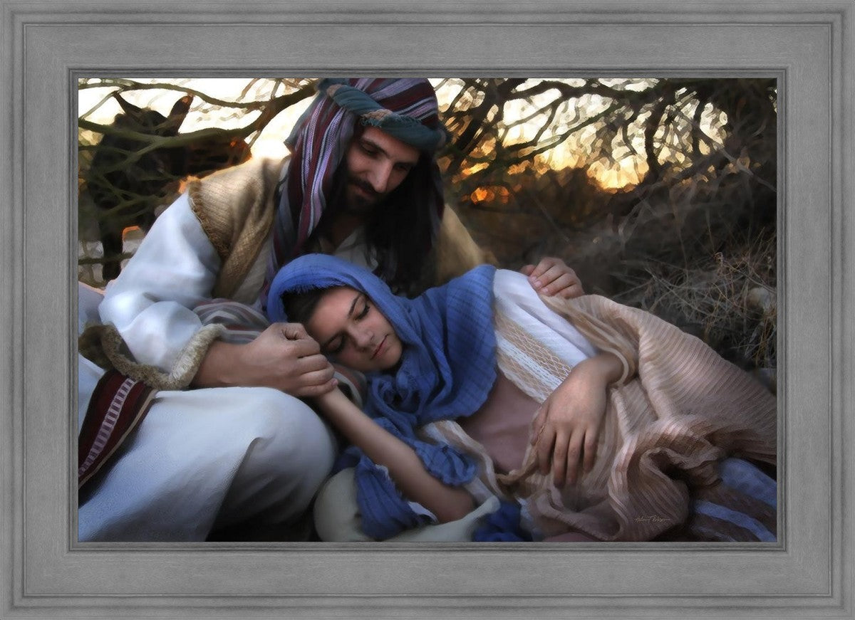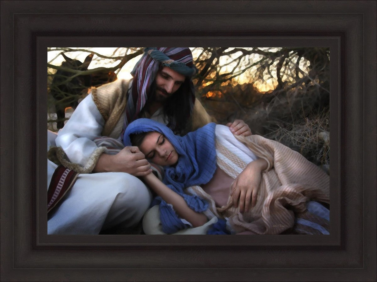 Joseph caring for and protecting Mary on their journey to Bethlehem
