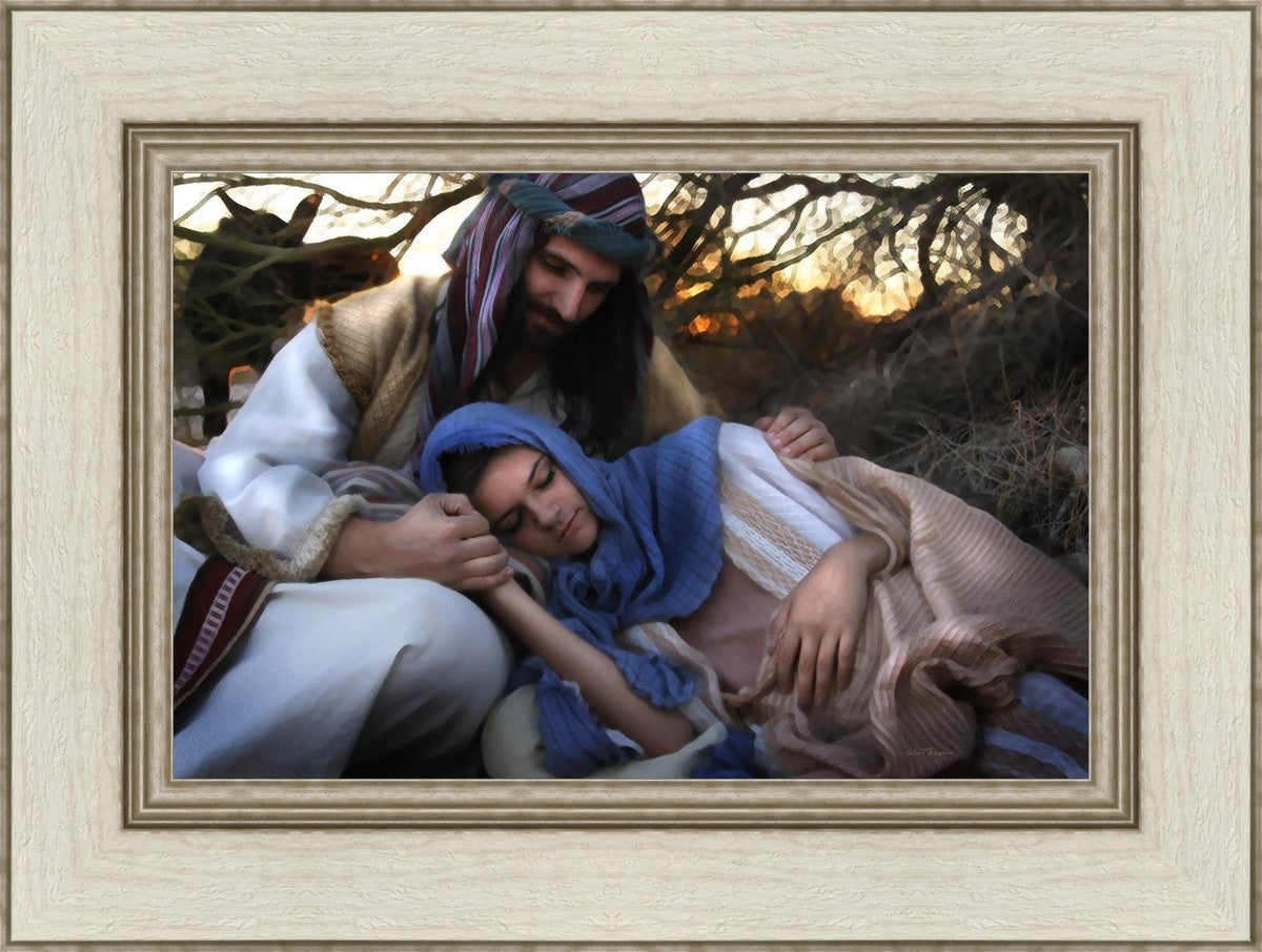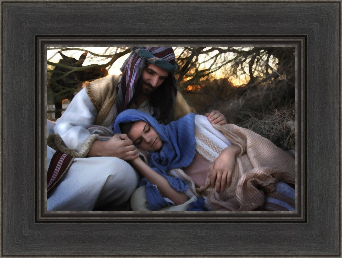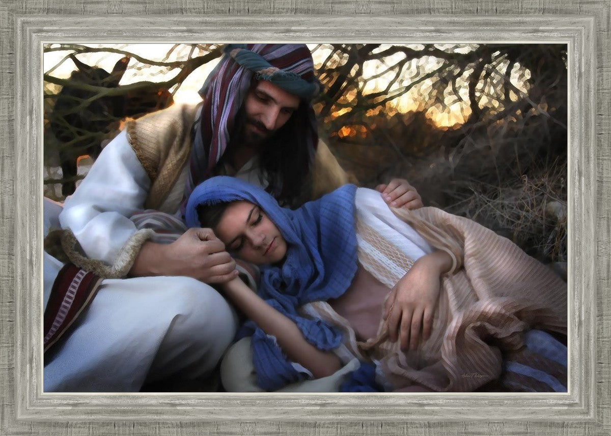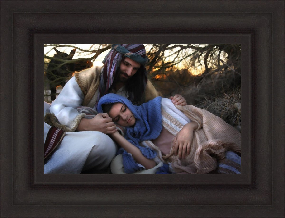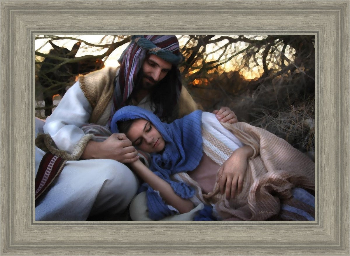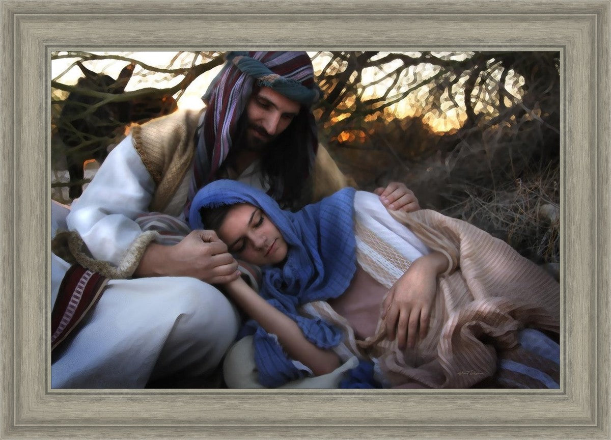 Joseph caring for and protecting Mary on their journey to Bethlehem