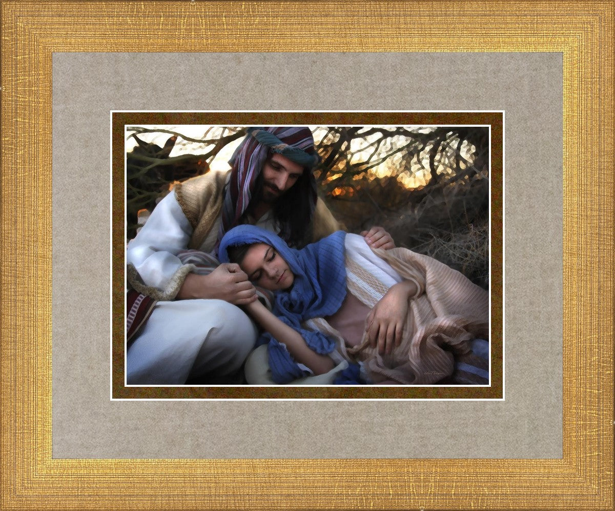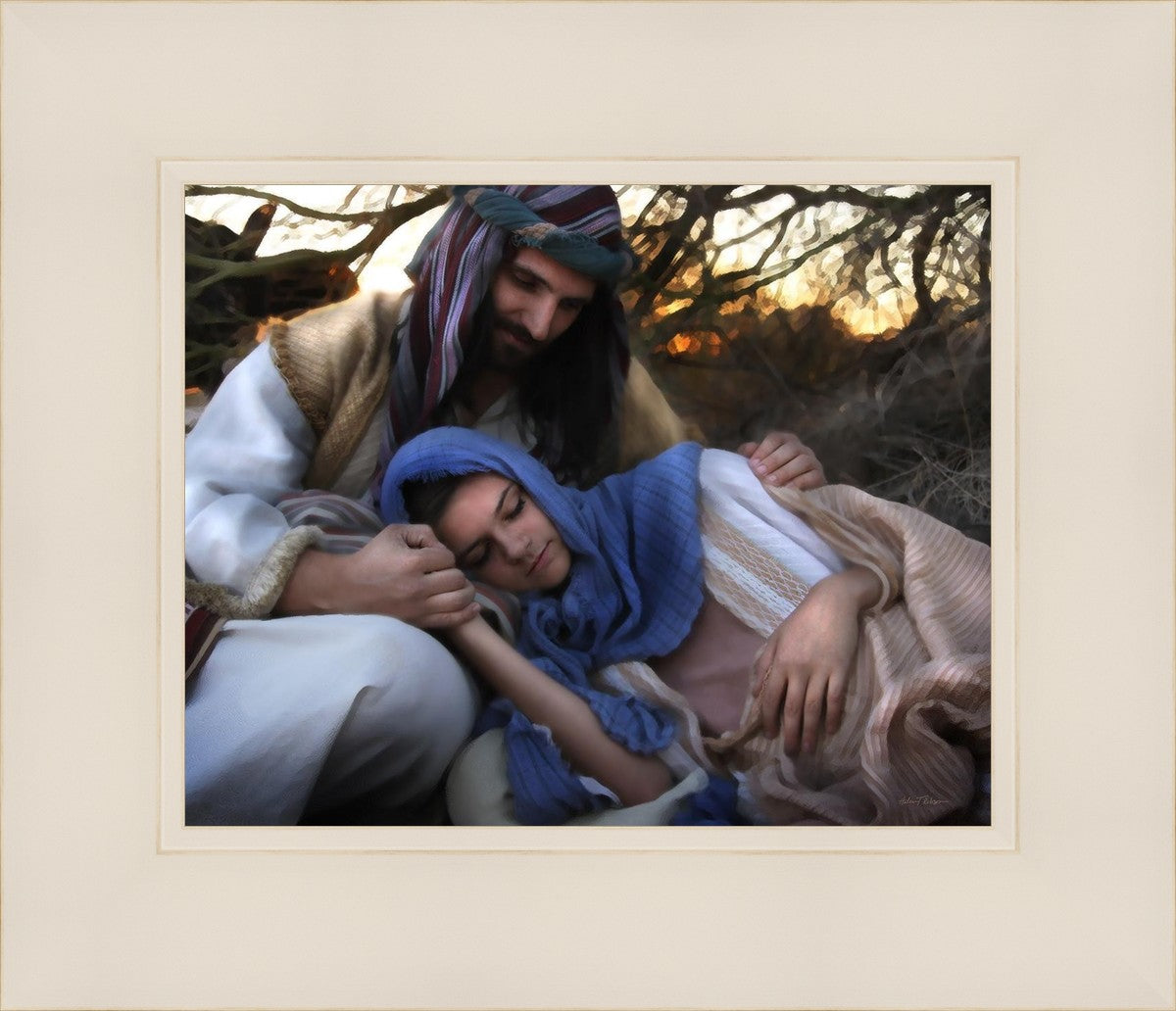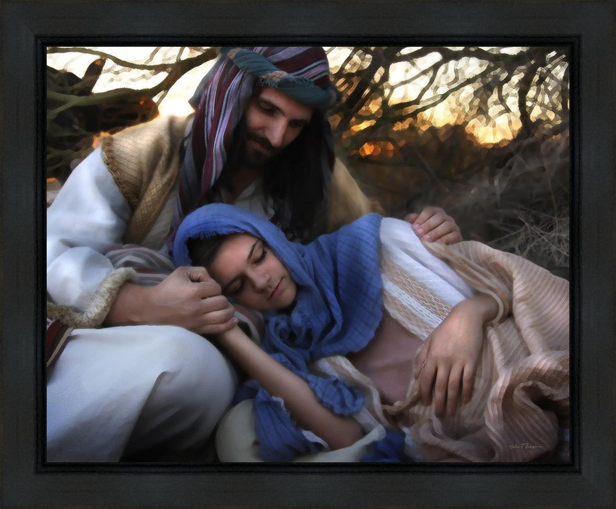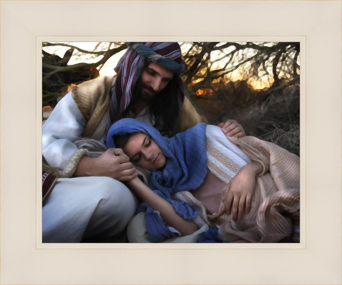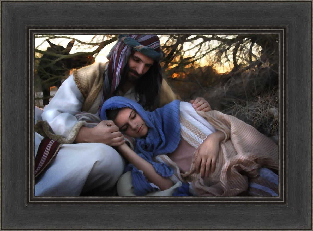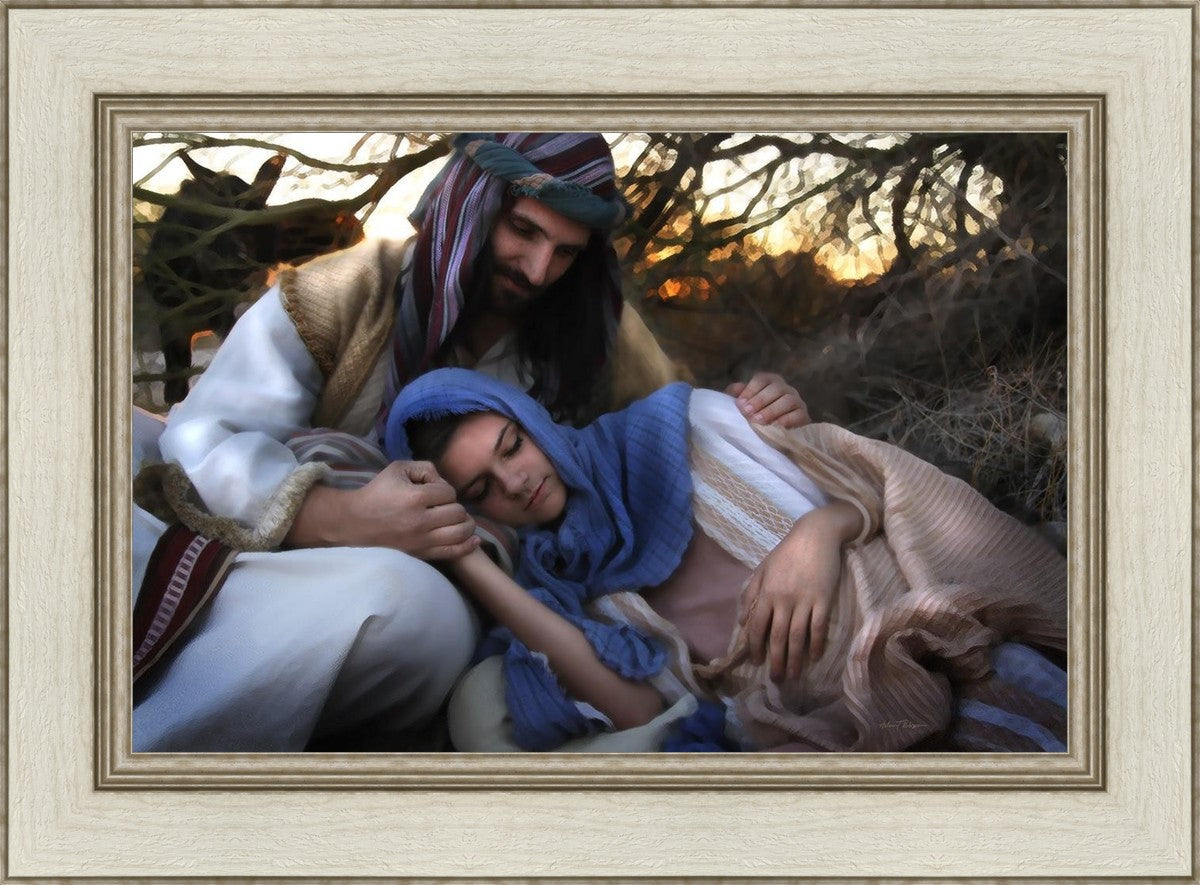 Joseph caring for and protecting Mary on their journey to Bethlehem