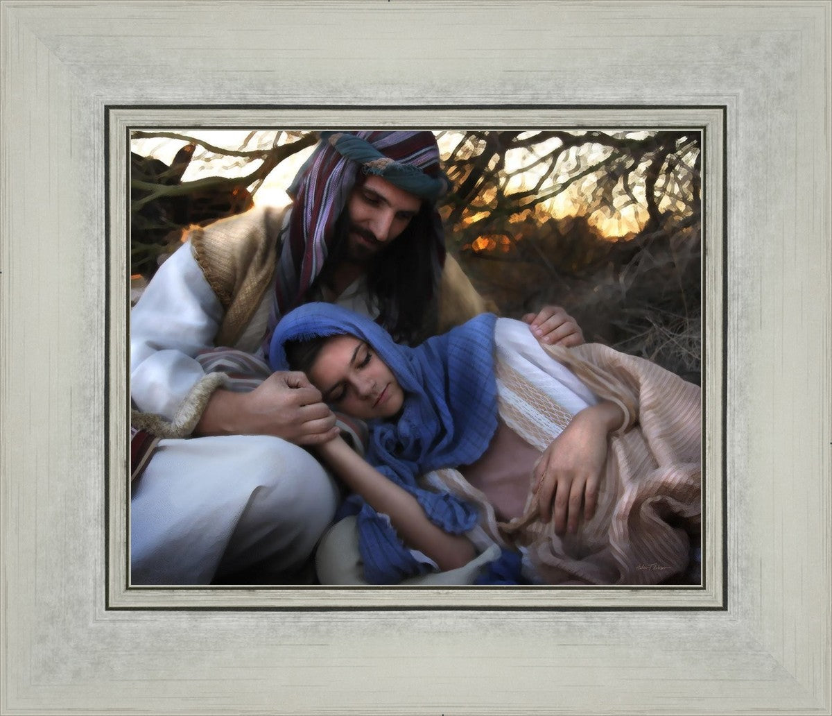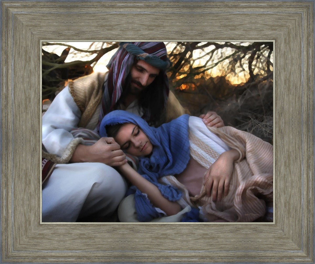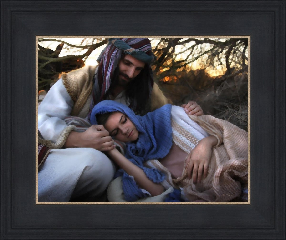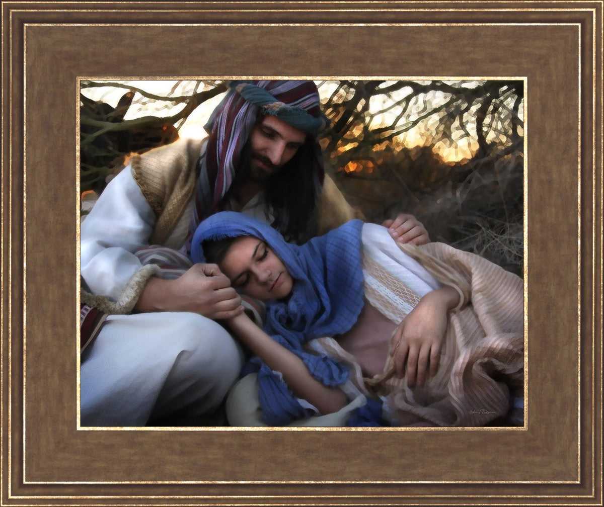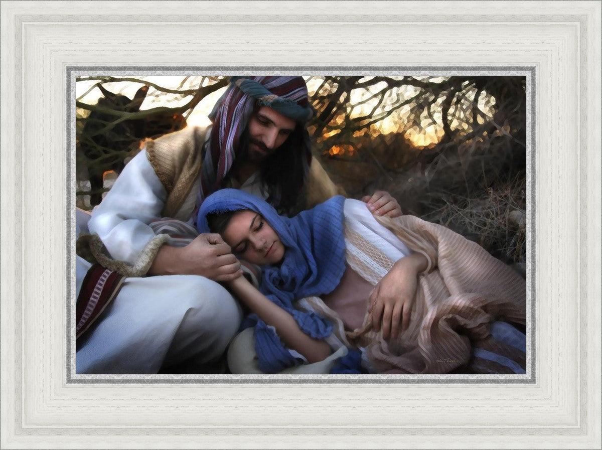 Joseph caring for and protecting Mary on their journey to Bethlehem
