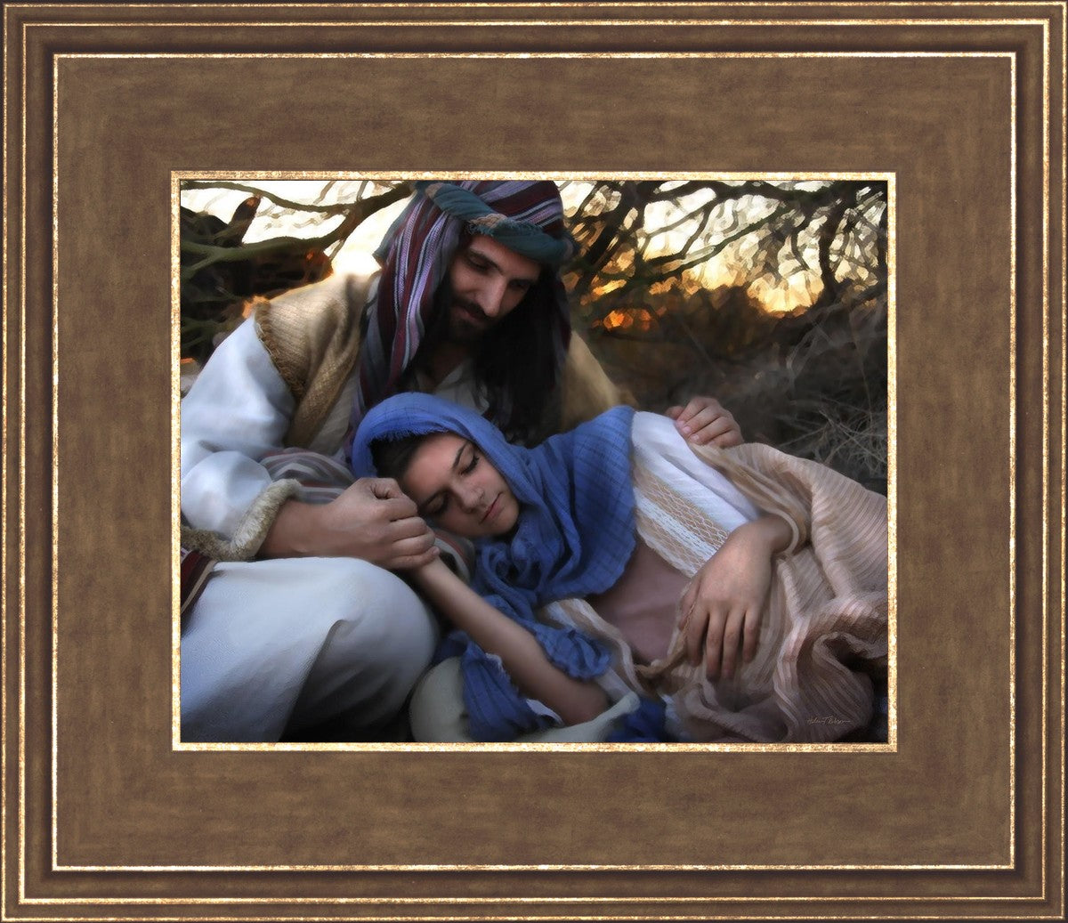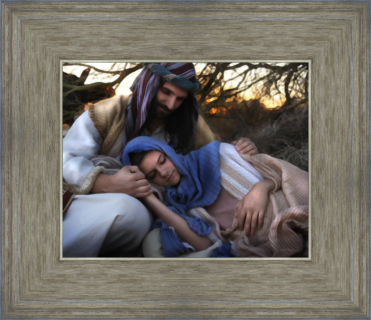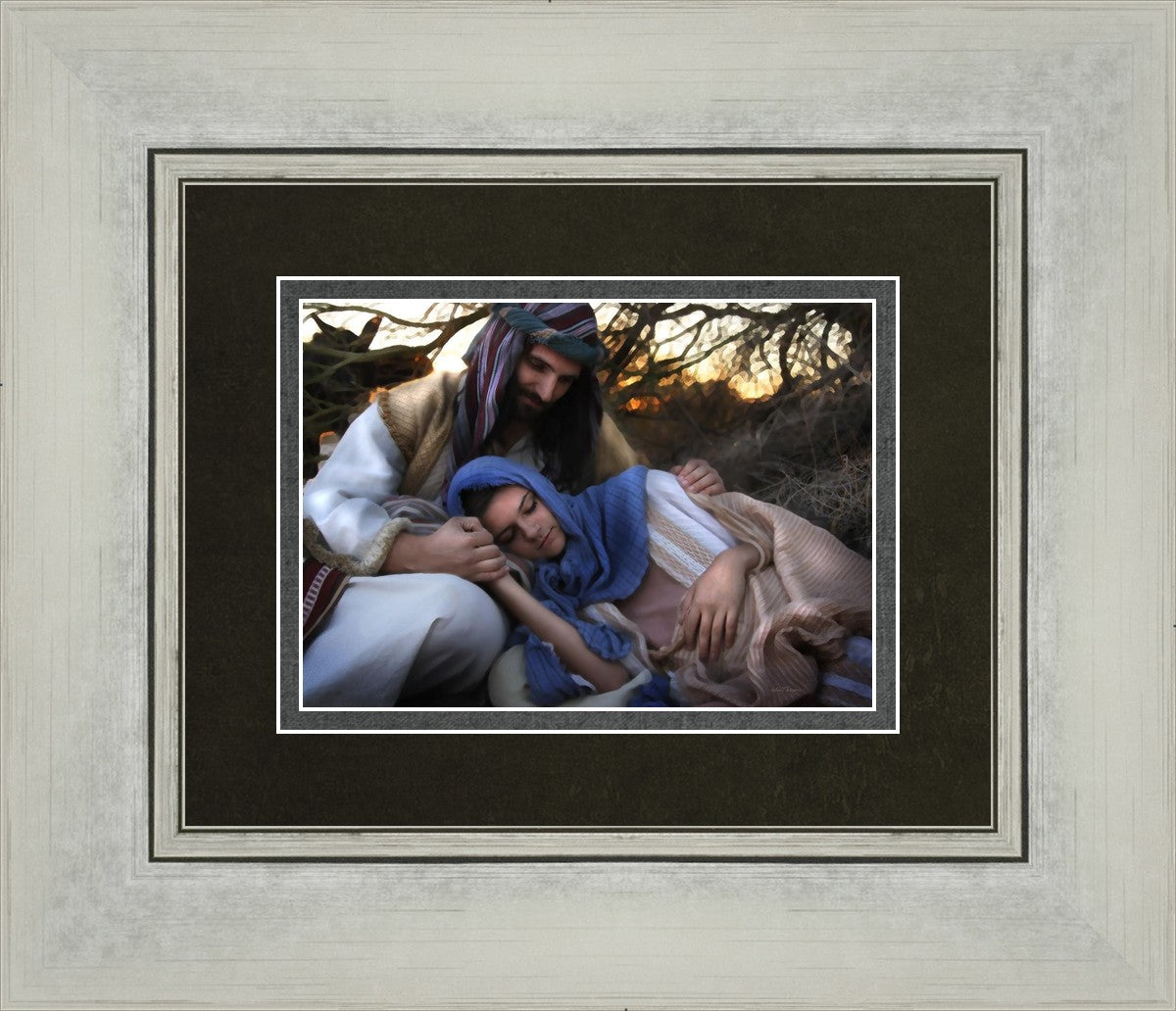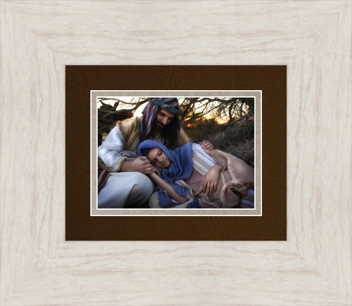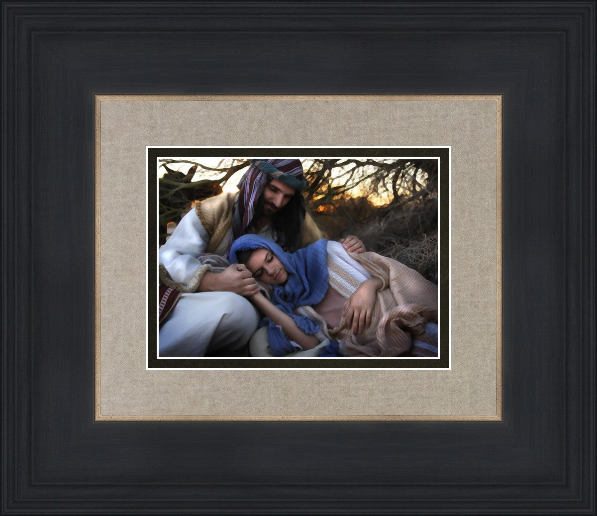 Joseph caring for and protecting Mary on their journey to Bethlehem
