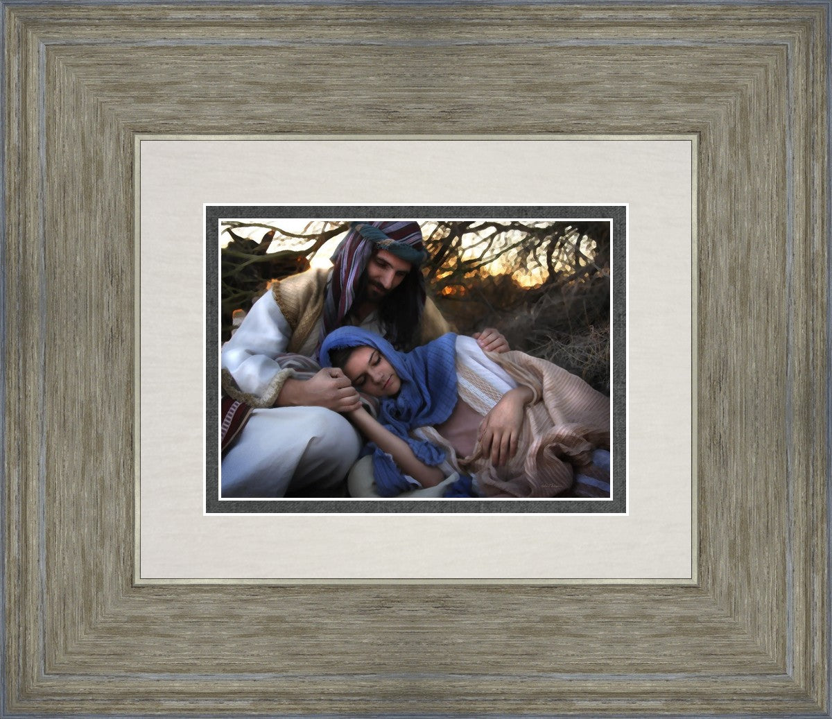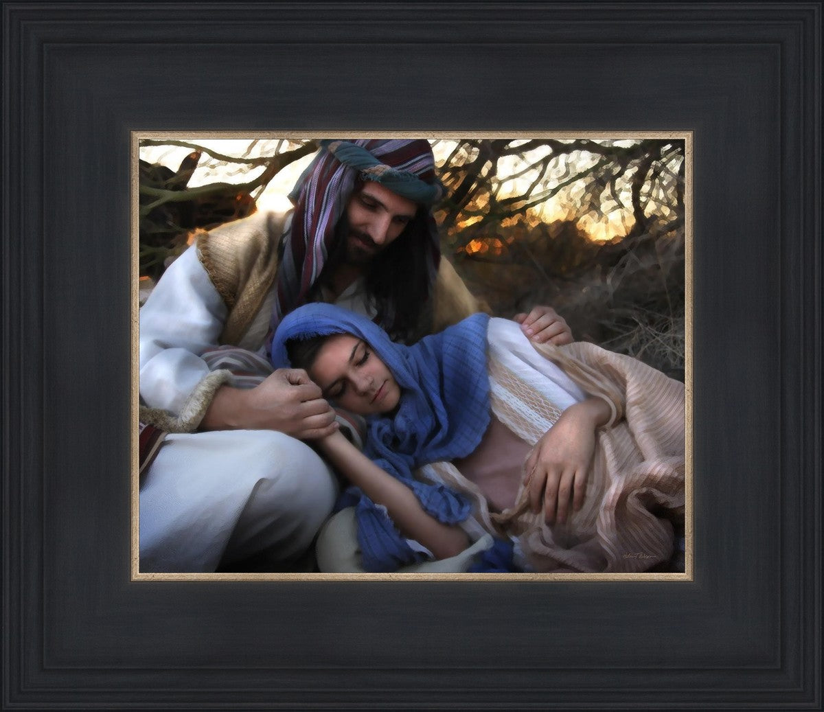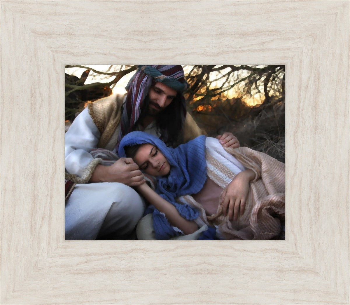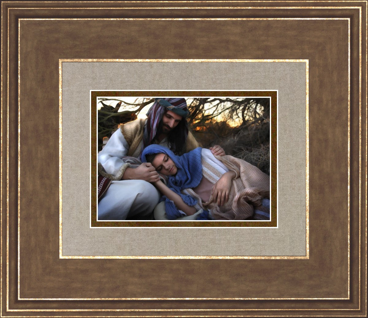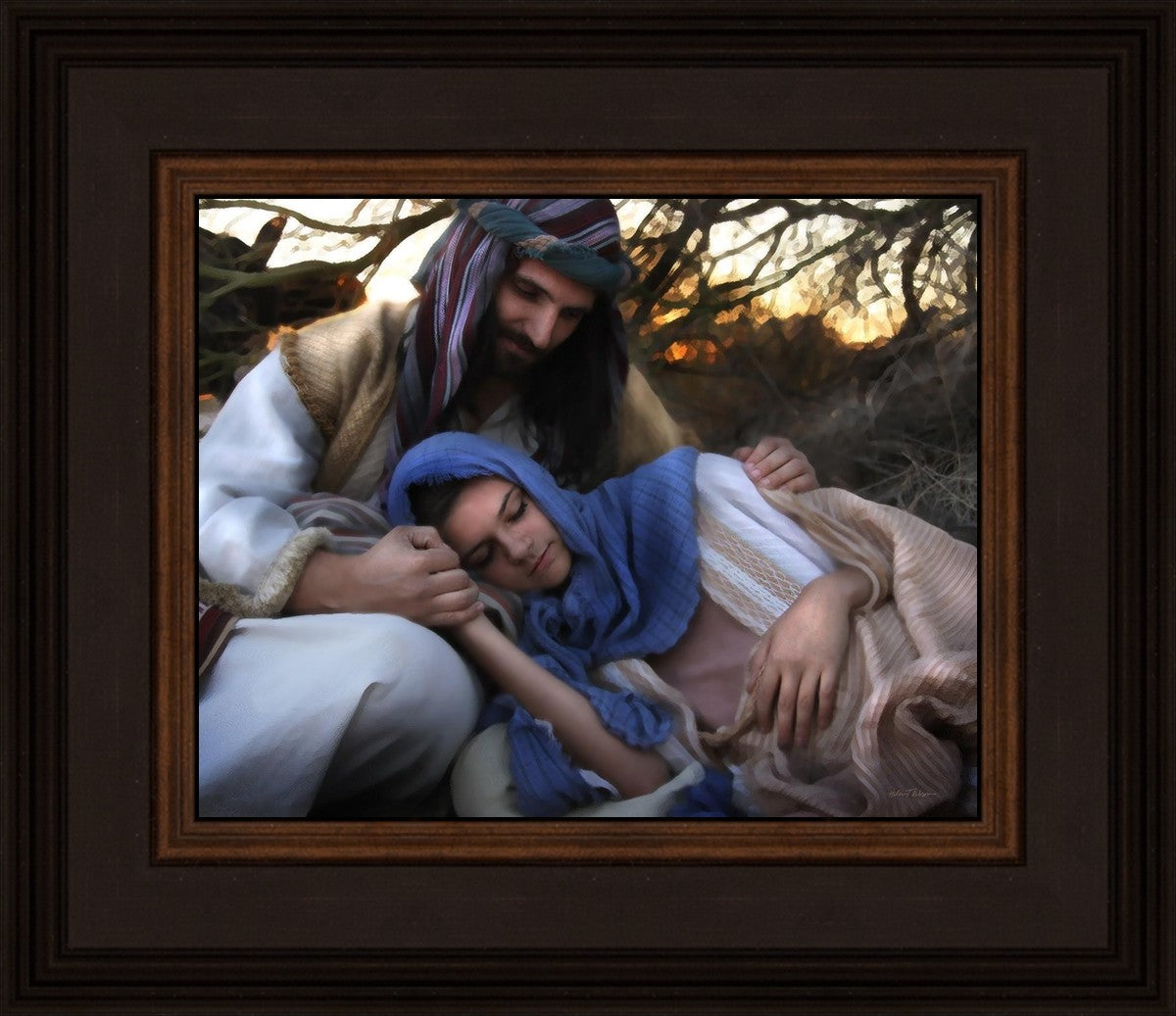 Joseph caring for and protecting Mary on their journey to Bethlehem