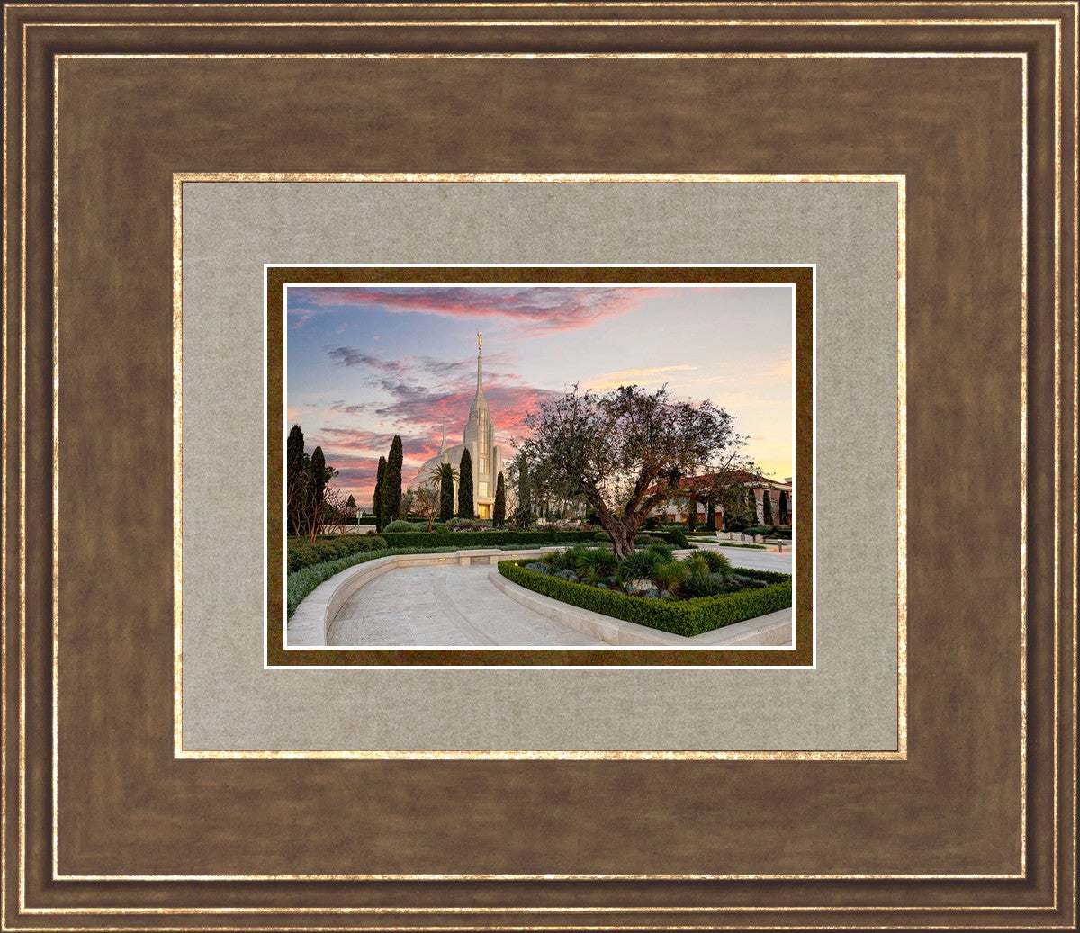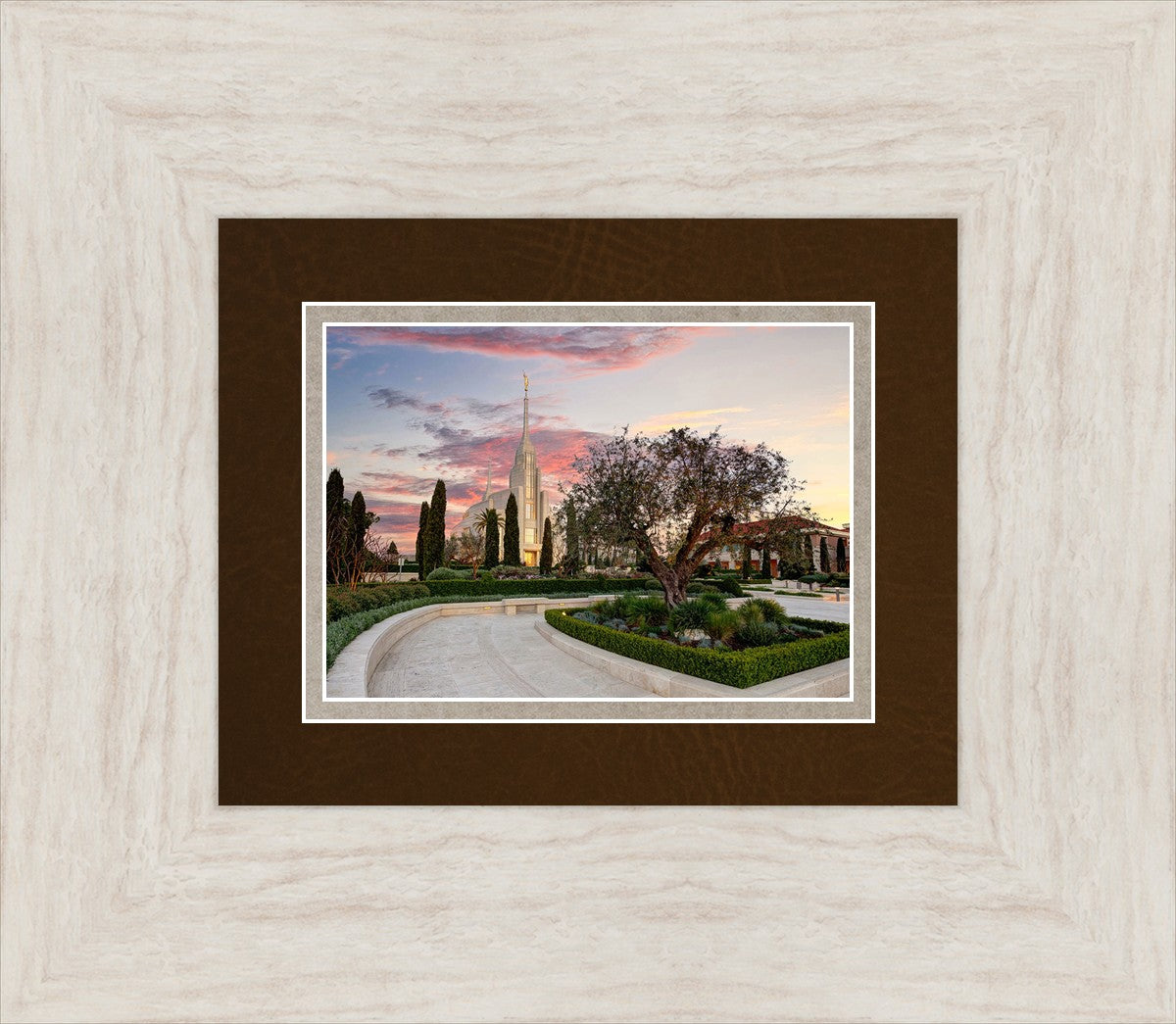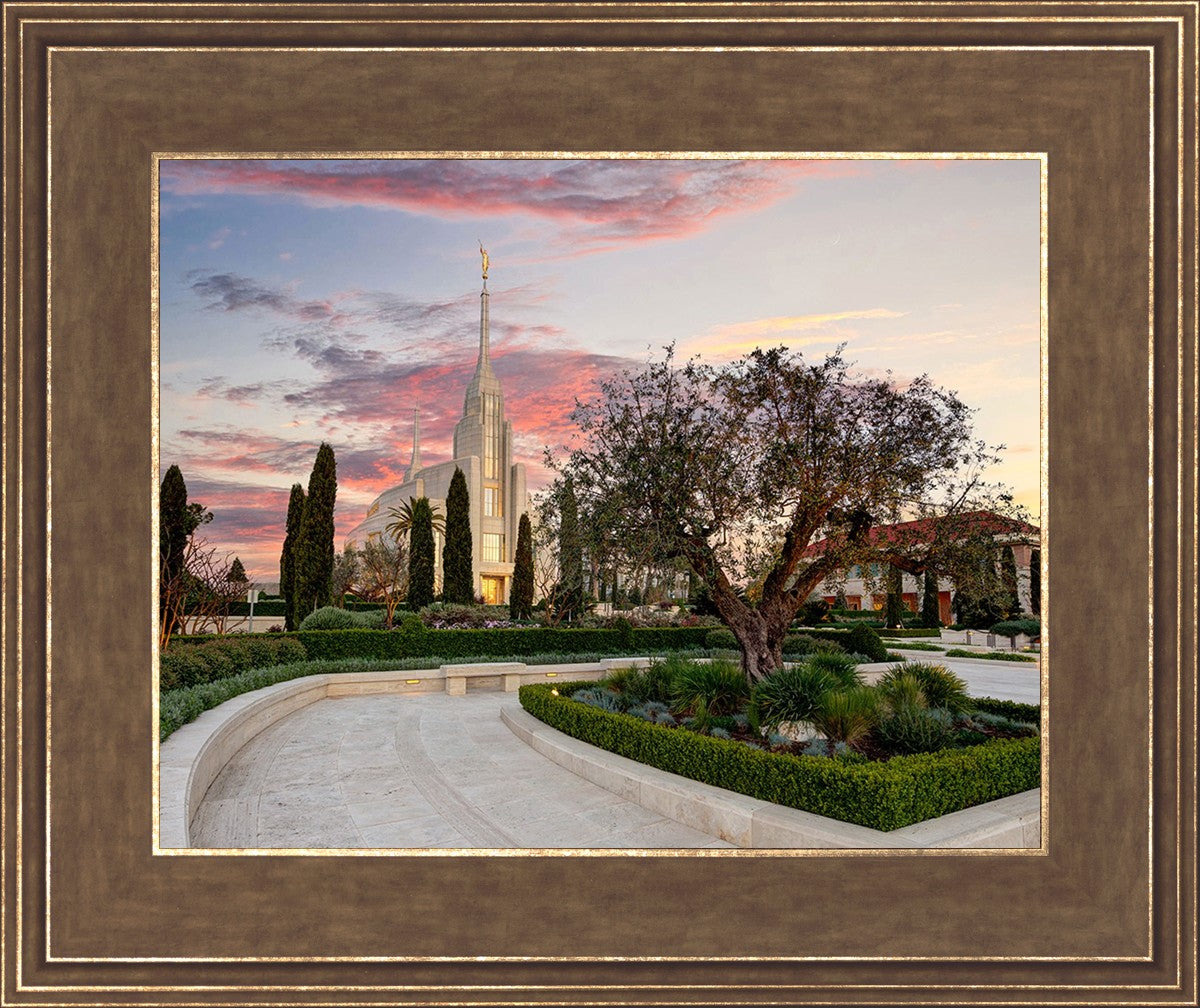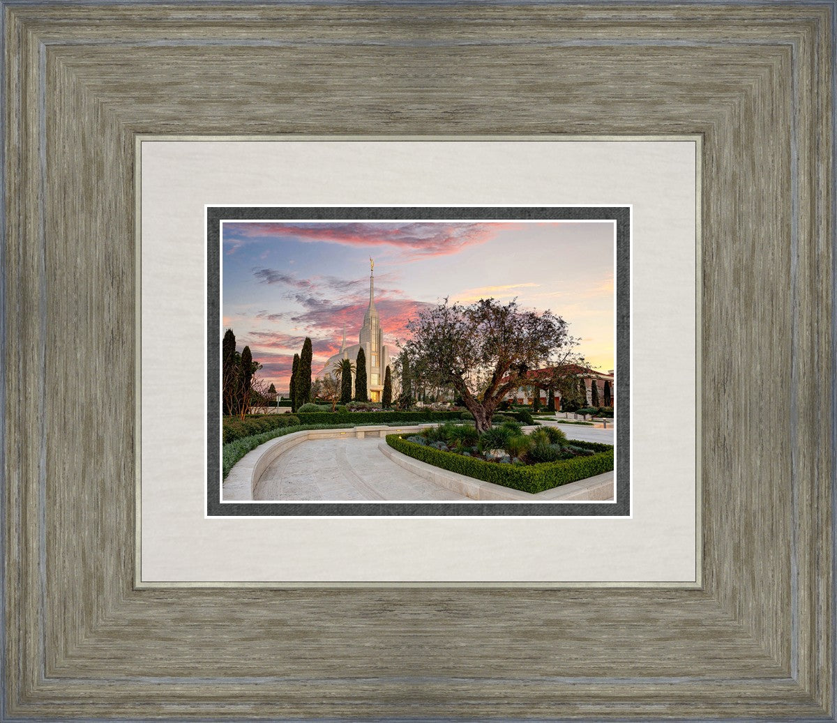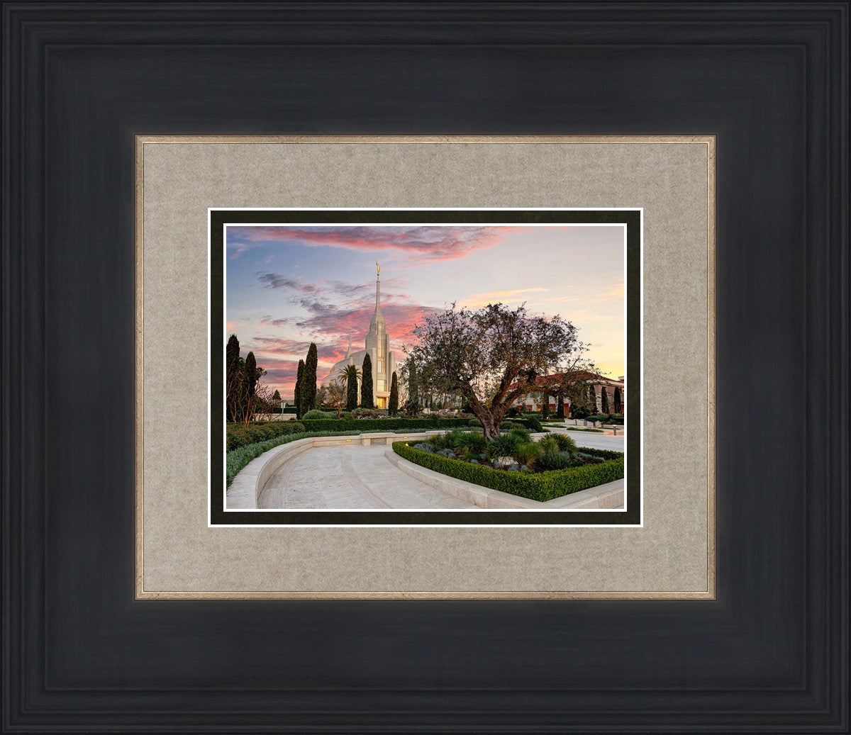 A landscape photograph of the new Rome Temple at sunset taken from one of the beautiful sitting areas found at the site