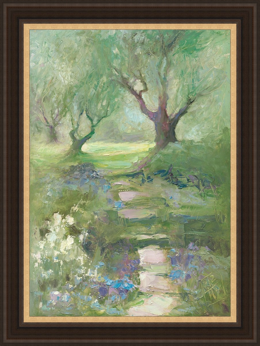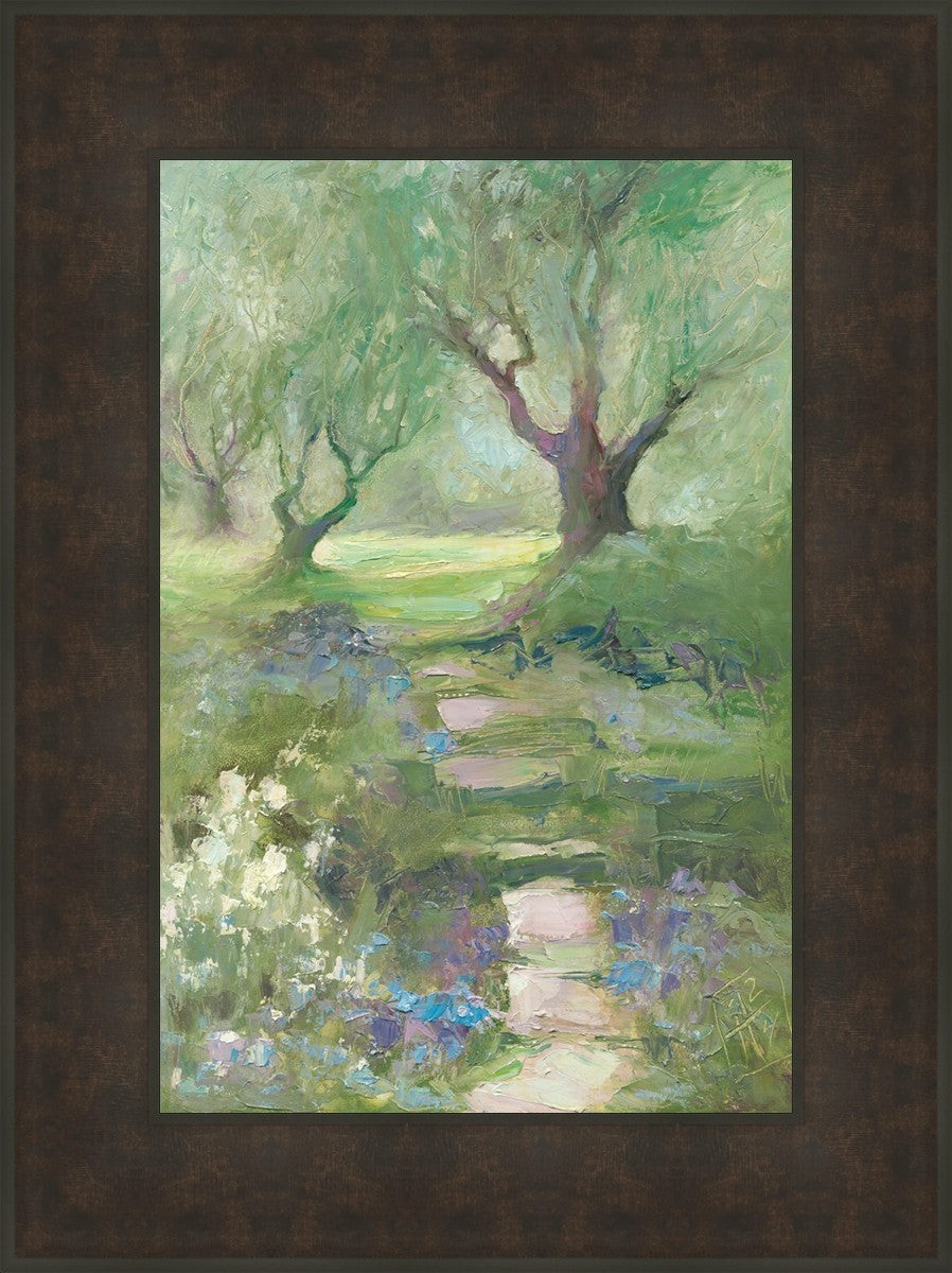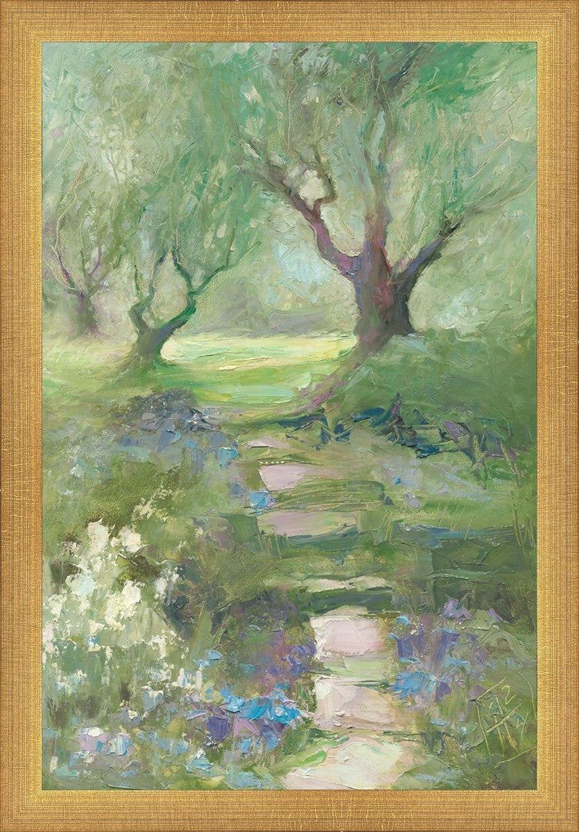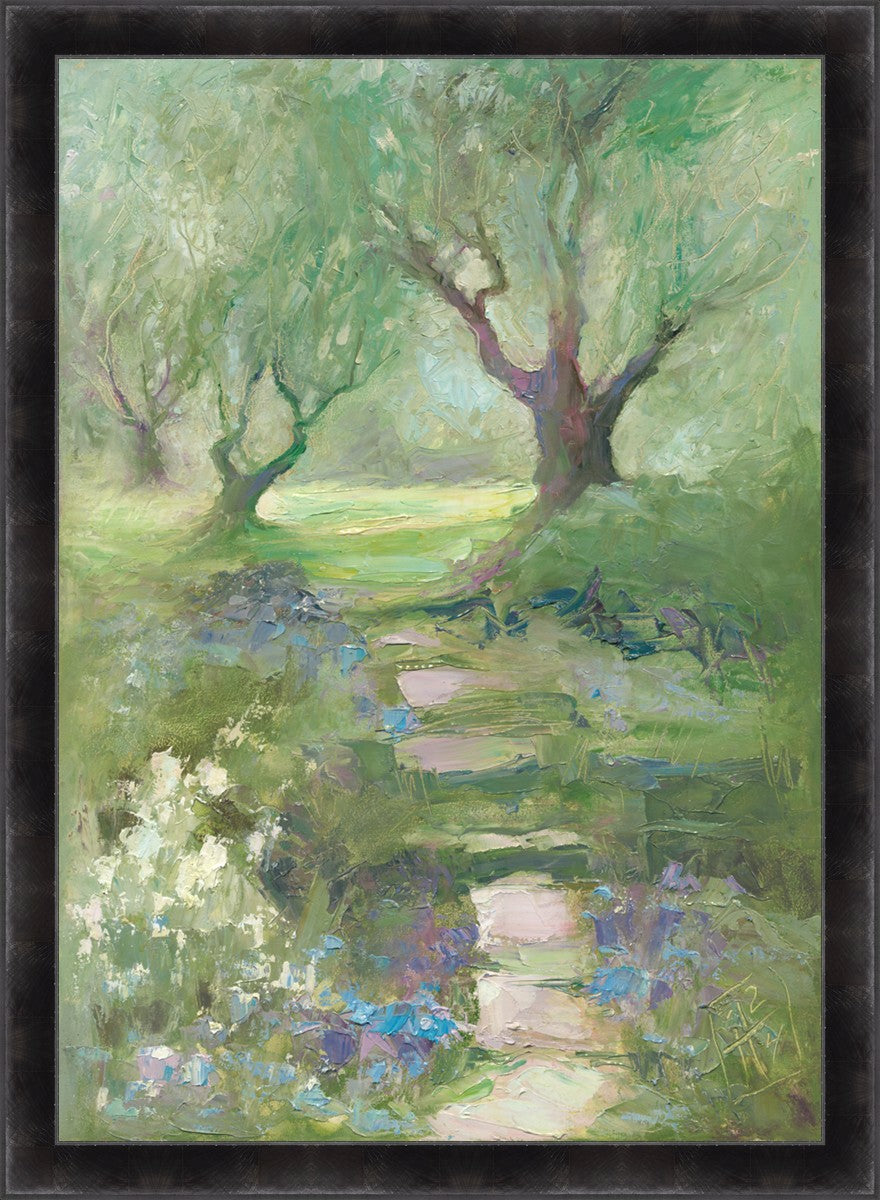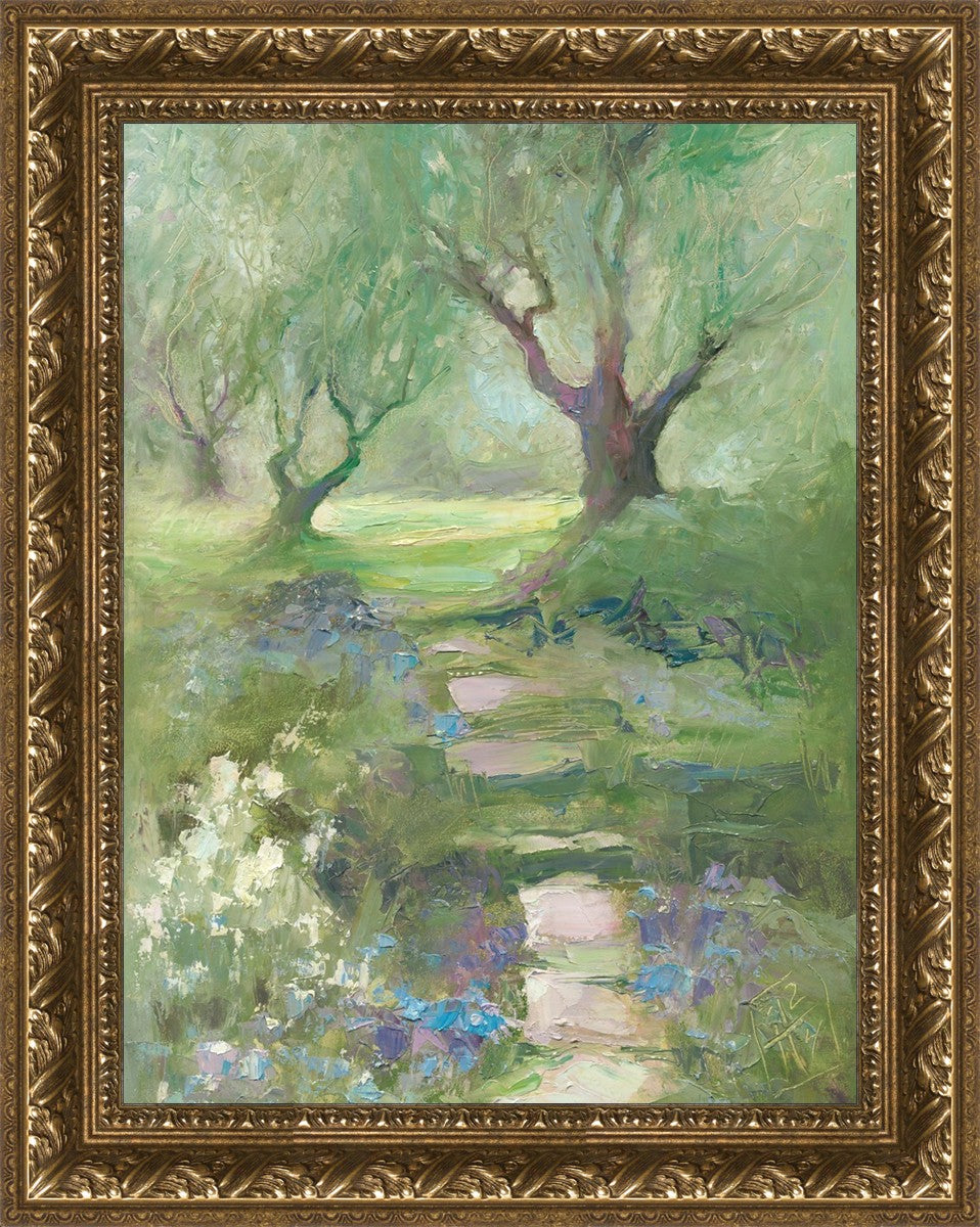 The painting was inspired by my memories of visiting Gethsemane in Jerusalem. The olive trees there have witnessed many tragic and joyful events. These ancient trees endure dramatic lives, struggling for survival against extreme temperatures, winds, and dry soil. Yet, they persevere and produce fruit that plays a vital role in religious ordinances and traditions.