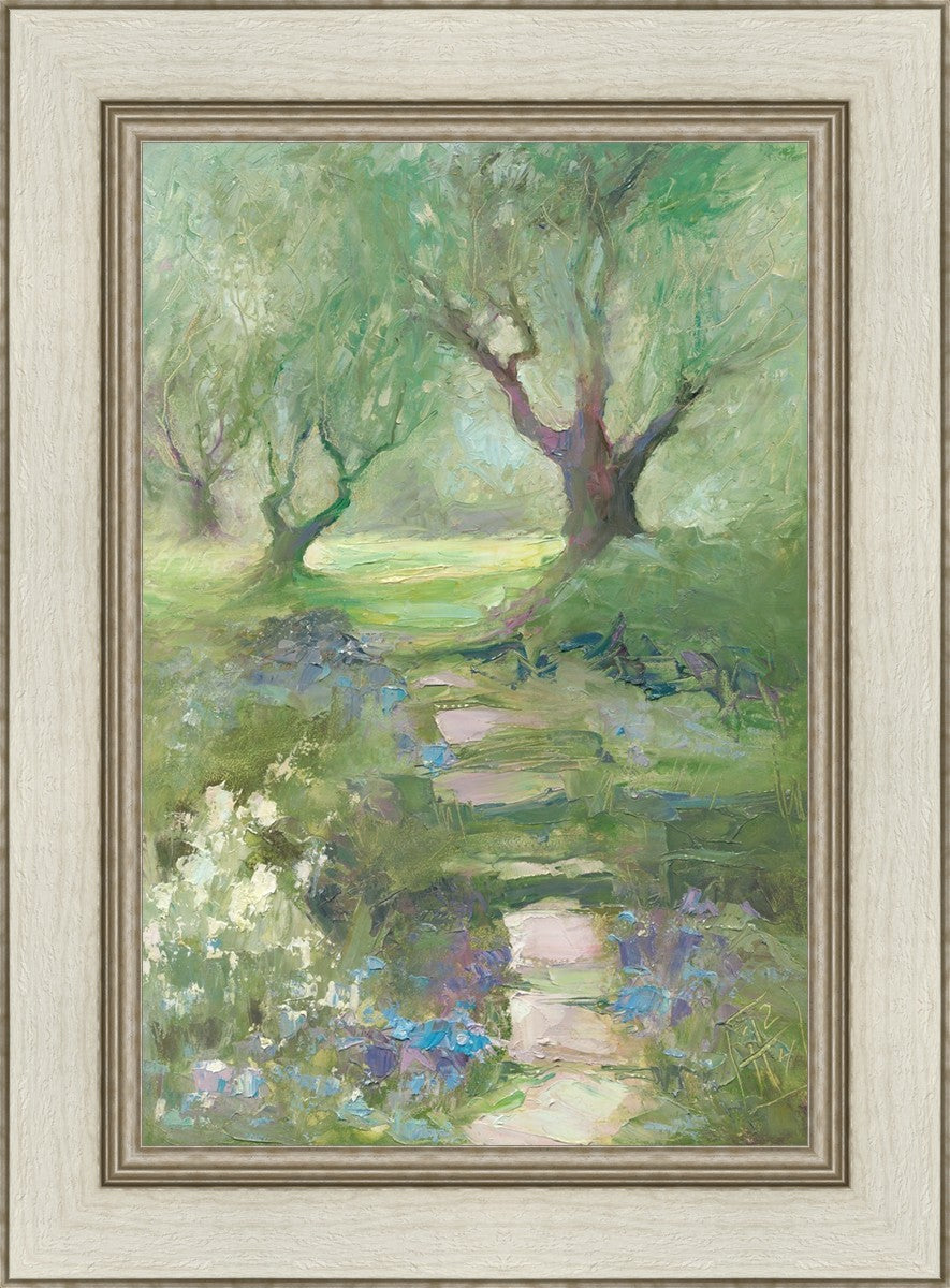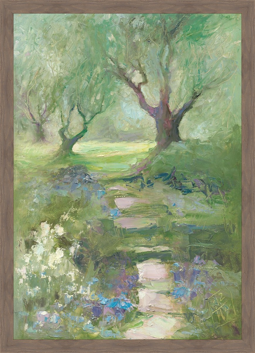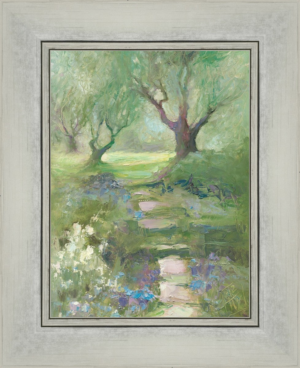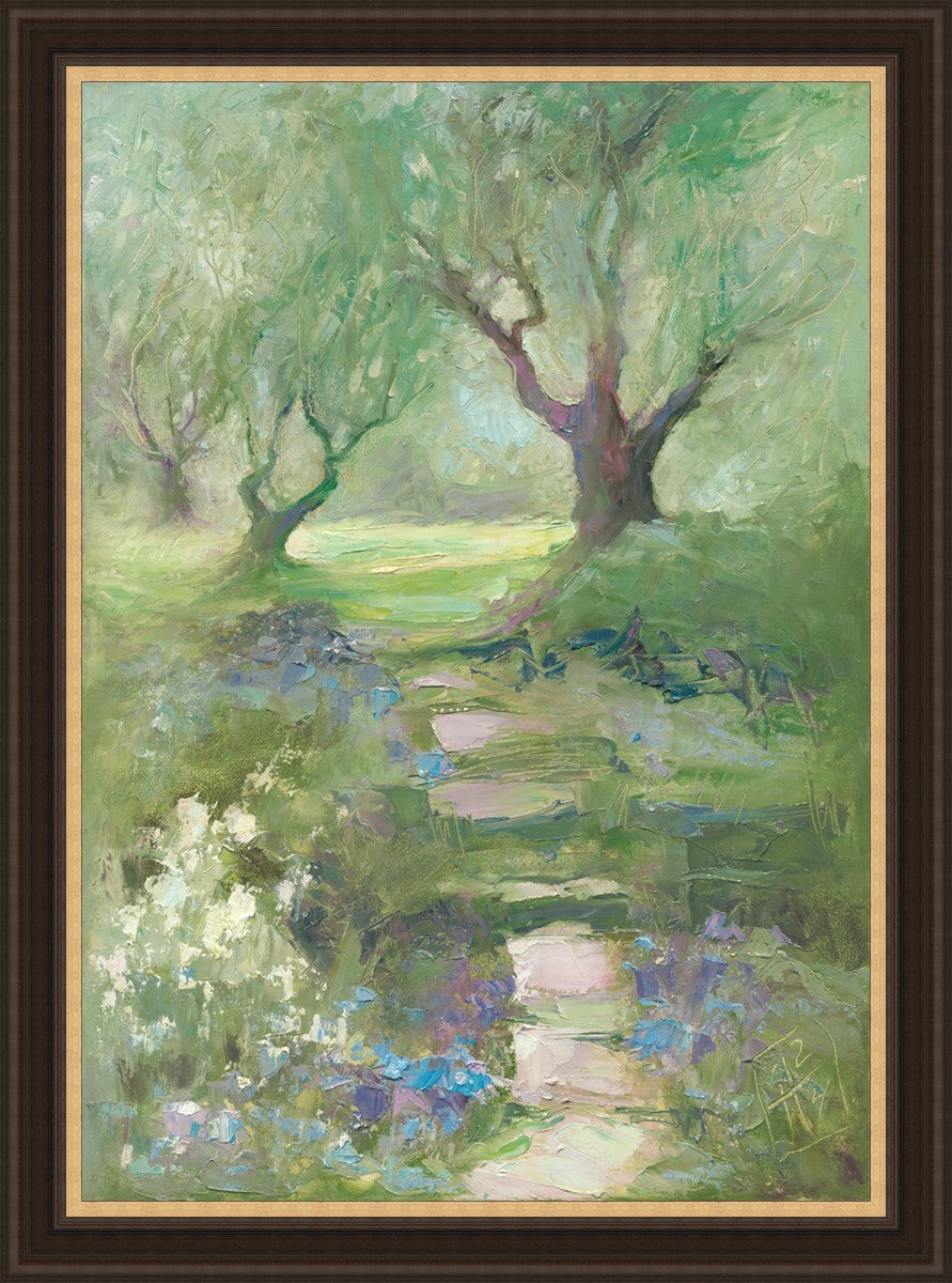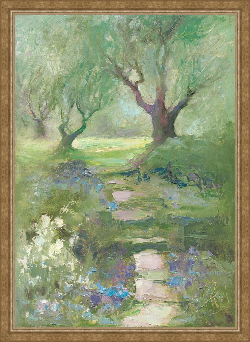The painting was inspired by my memories of visiting Gethsemane in Jerusalem. The olive trees there have witnessed many tragic and joyful events. These ancient trees endure dramatic lives, struggling for survival against extreme temperatures, winds, and dry soil. Yet, they persevere and produce fruit that plays a vital role in religious ordinances and traditions.