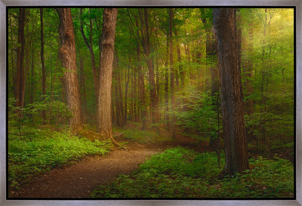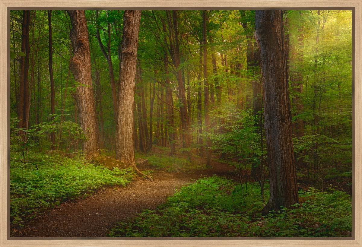 Our Float Frame is custom-made with a small gap between the frame and canvas to accentuate the edges of the artwork and give the illusion of a floating image within the frame.