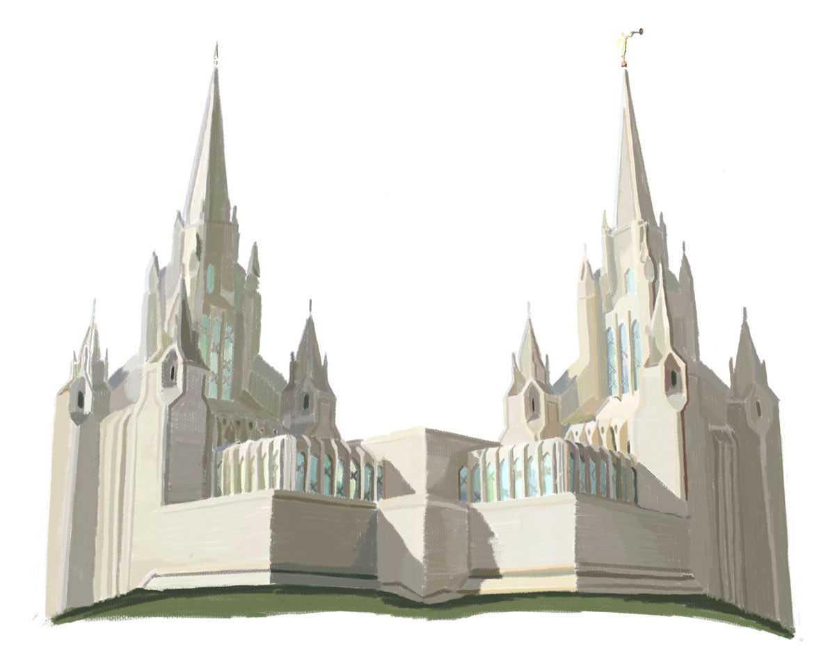 Believing that I am an artist has been a journey my whole life. I have spent my life jumping into all different mediums of art. Oil paint, pastel, water color, and then digital art. I love to create. Then 2020 happened. I had a goal to go to the temple every month that year. Then all the temples closed. I felt defeated and a little lost like most of us. I found the comfort of the temple again by drawing temples. You may ask why I don't fill in the rest of the piece around the temple. Well my purpose in not finishing it and leaving it white is so that the viewer focuses on the one thing in that painting that is important. It's simple just like the gospel. You don't need all the fluff, it's not complicated, this is what is important. As an artist, I always want to capture core memories and turn them into art.