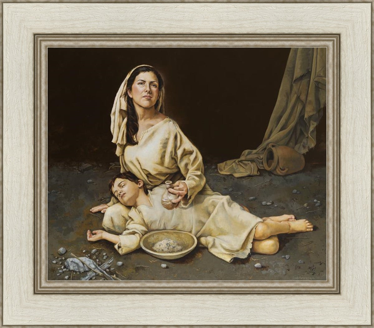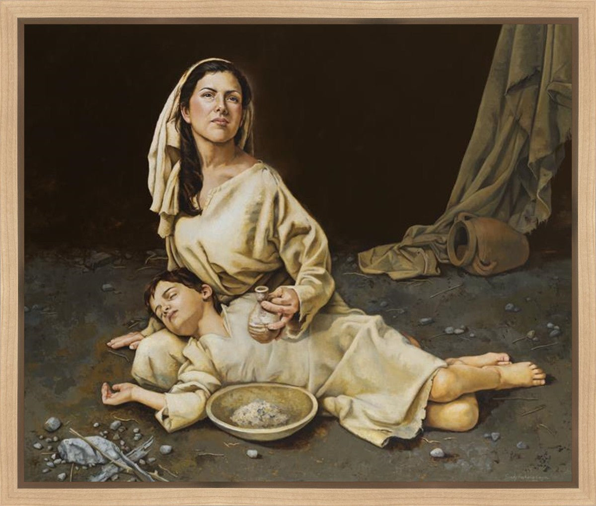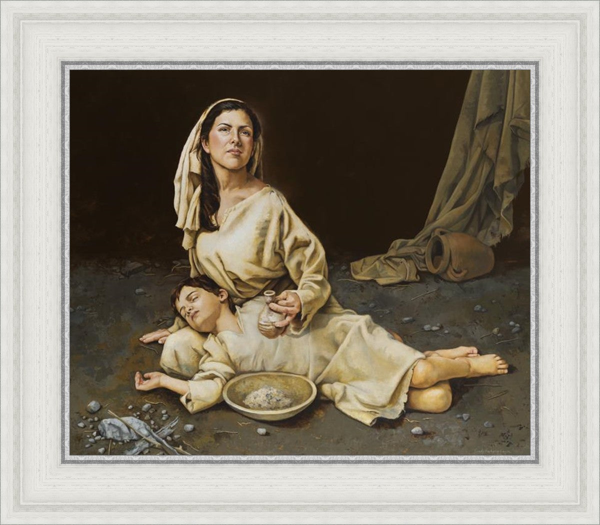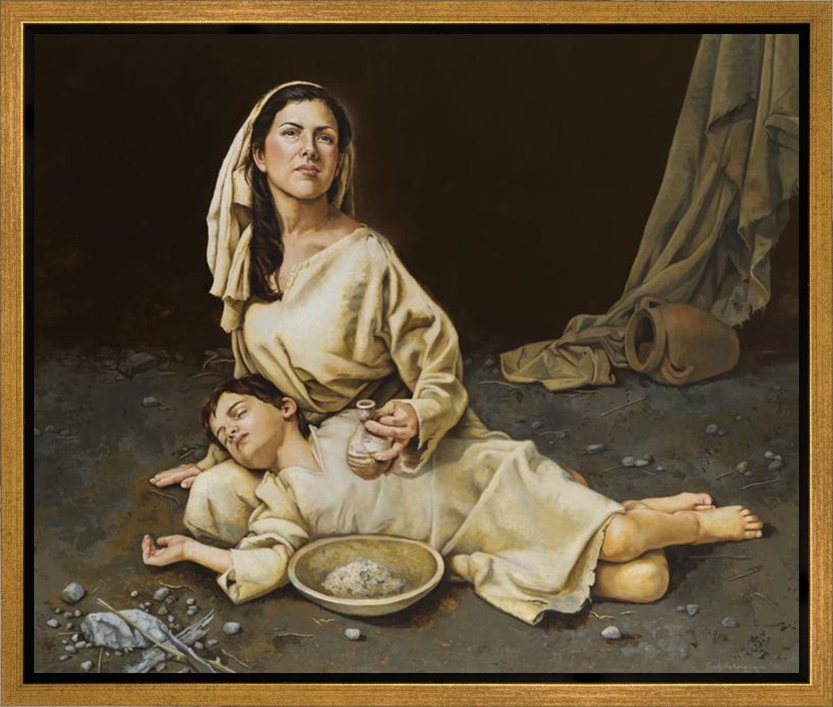 Much of the inspiration for my paintings comes through experiences I had when drinking the biter cups of life. This is especially true of this painting. It is during these defining moments of adversity – famines, if you will – that I have come to understand “sacrifice brings forth blessings.” It is my desire to visually convey that true faith always manifests itself in faithfulness. The message of the Widow of Zarephath has tremendous relevancy today; it is through our choices we ultimately come to know God. (Scriptural reference: 1 Kings 17: 9-15)