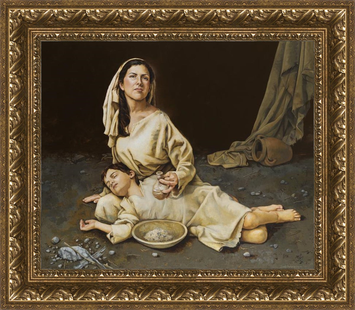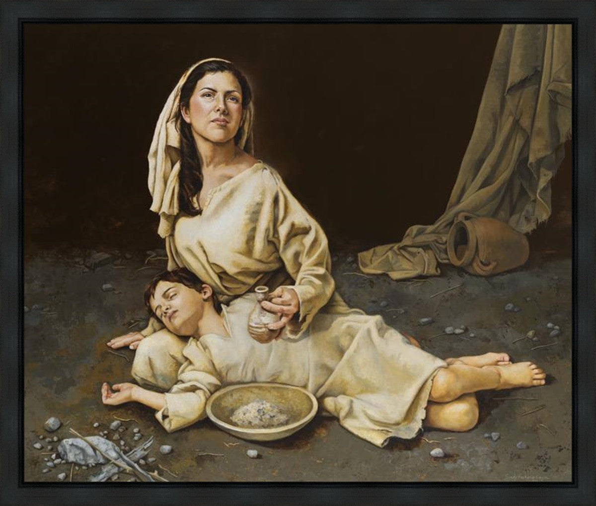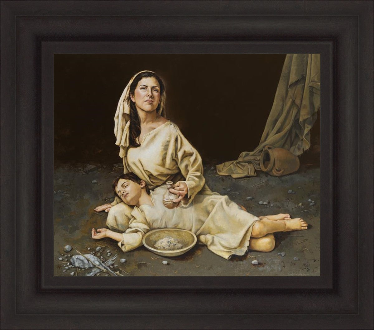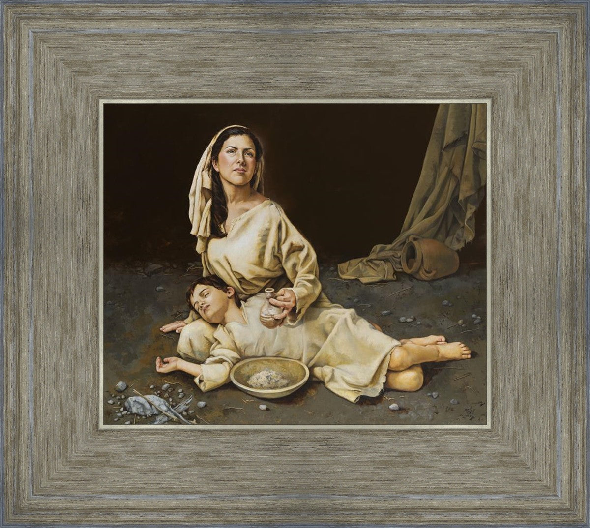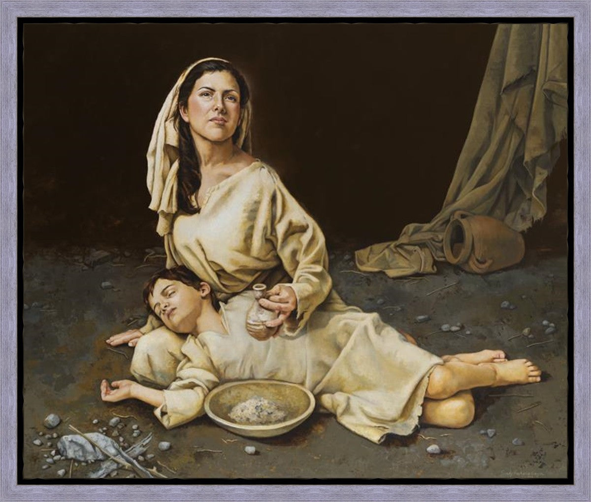 Much of the inspiration for my paintings comes through experiences I had when drinking the biter cups of life. This is especially true of this painting. It is during these defining moments of adversity – famines, if you will – that I have come to understand “sacrifice brings forth blessings.” It is my desire to visually convey that true faith always manifests itself in faithfulness. The message of the Widow of Zarephath has tremendous relevancy today; it is through our choices we ultimately come to know God. (Scriptural reference: 1 Kings 17: 9-15)