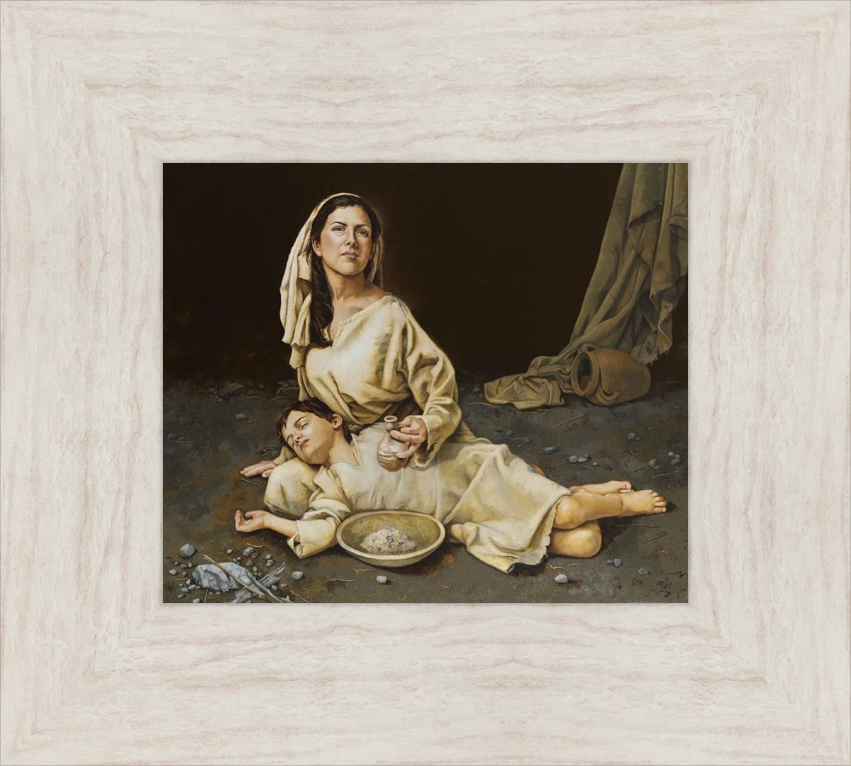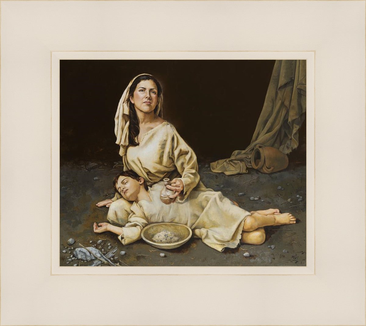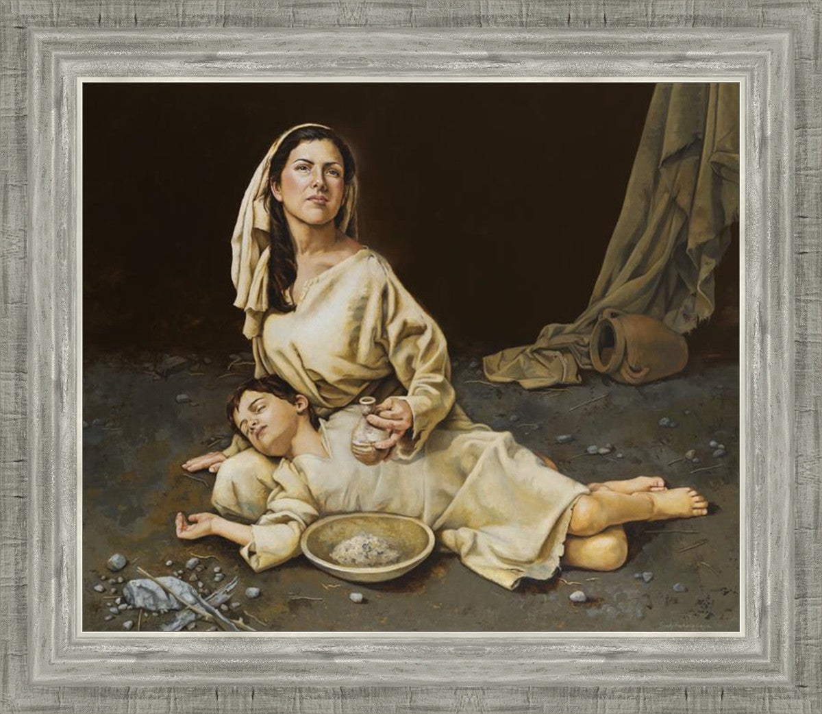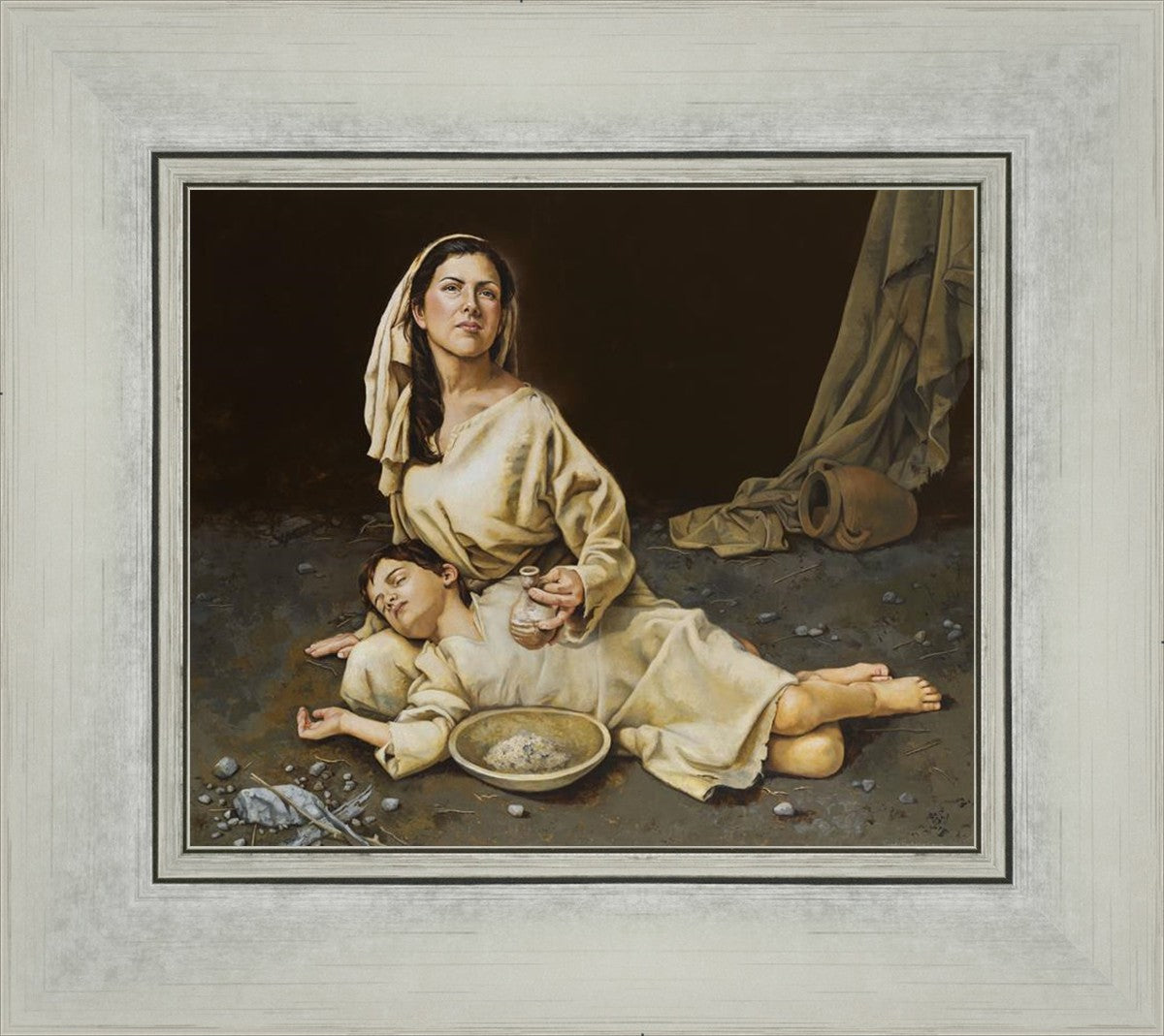 Much of the inspiration for my paintings comes through experiences I had when drinking the biter cups of life. This is especially true of this painting. It is during these defining moments of adversity – famines, if you will – that I have come to understand “sacrifice brings forth blessings.” It is my desire to visually convey that true faith always manifests itself in faithfulness. The message of the Widow of Zarephath has tremendous relevancy today; it is through our choices we ultimately come to know God. (Scriptural reference: 1 Kings 17: 9-15)