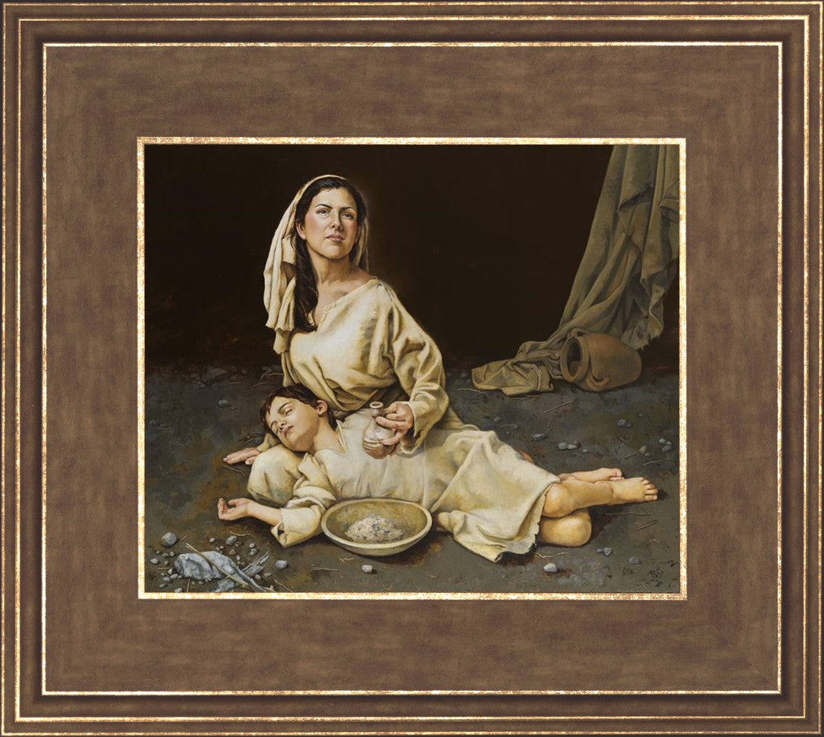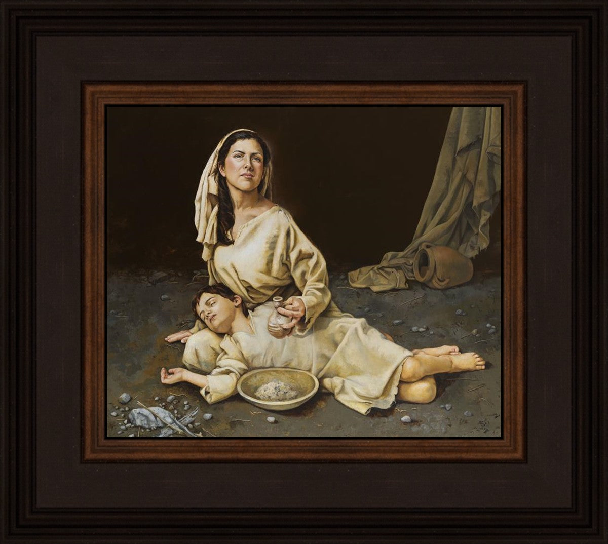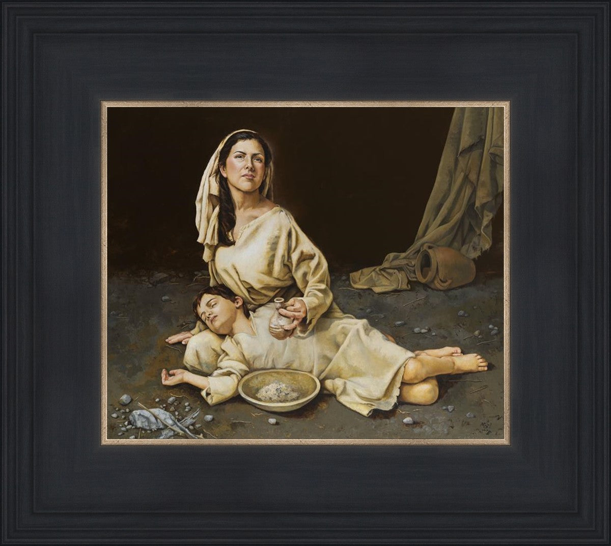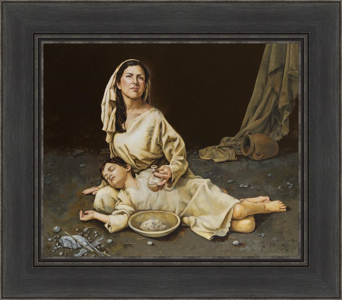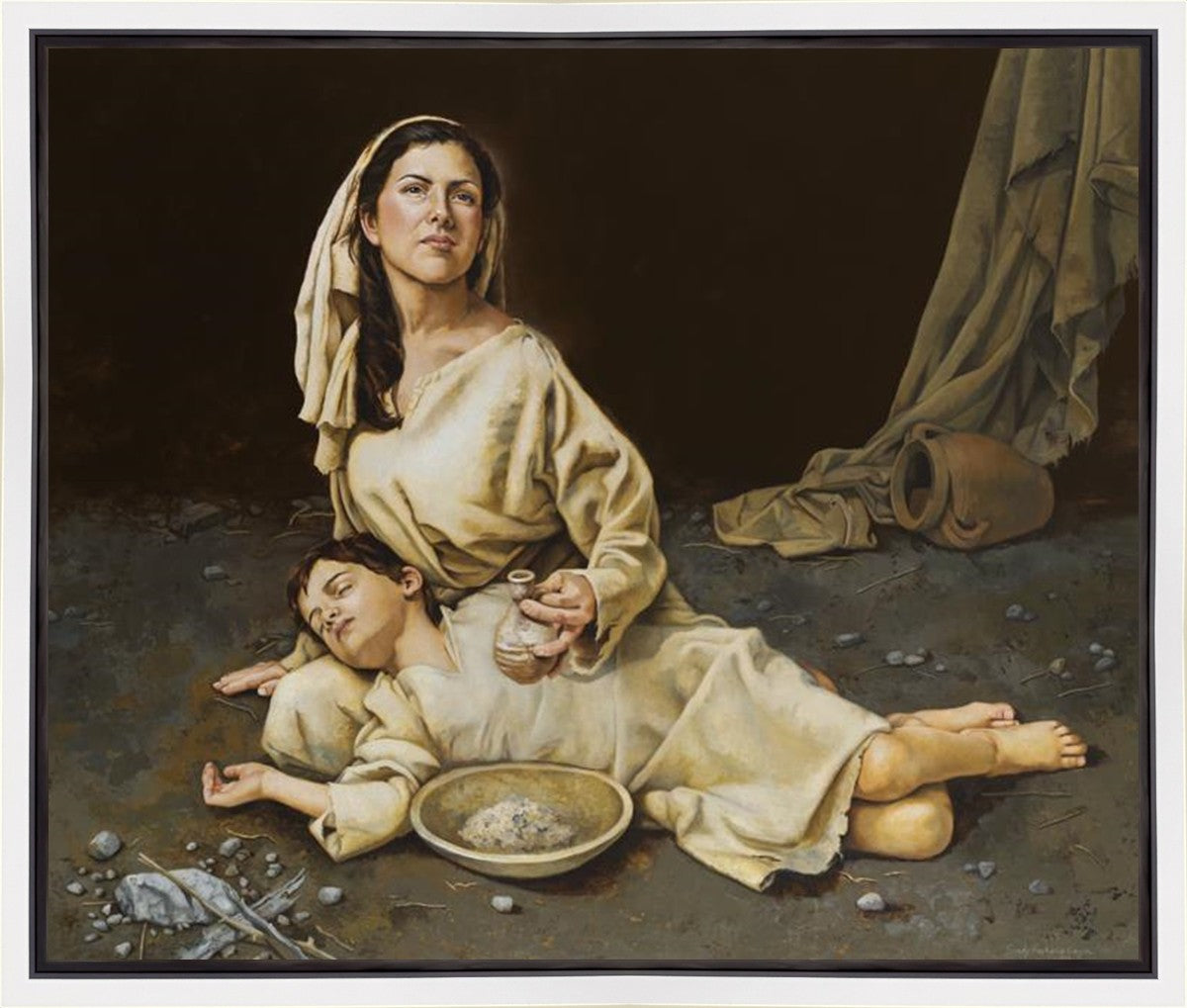 Much of the inspiration for my paintings comes through experiences I had when drinking the biter cups of life. This is especially true of this painting. It is during these defining moments of adversity – famines, if you will – that I have come to understand “sacrifice brings forth blessings.” It is my desire to visually convey that true faith always manifests itself in faithfulness. The message of the Widow of Zarephath has tremendous relevancy today; it is through our choices we ultimately come to know God. (Scriptural reference: 1 Kings 17: 9-15)