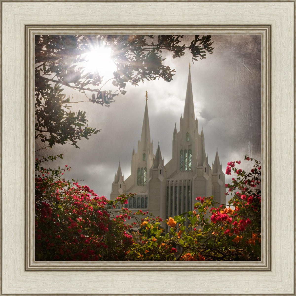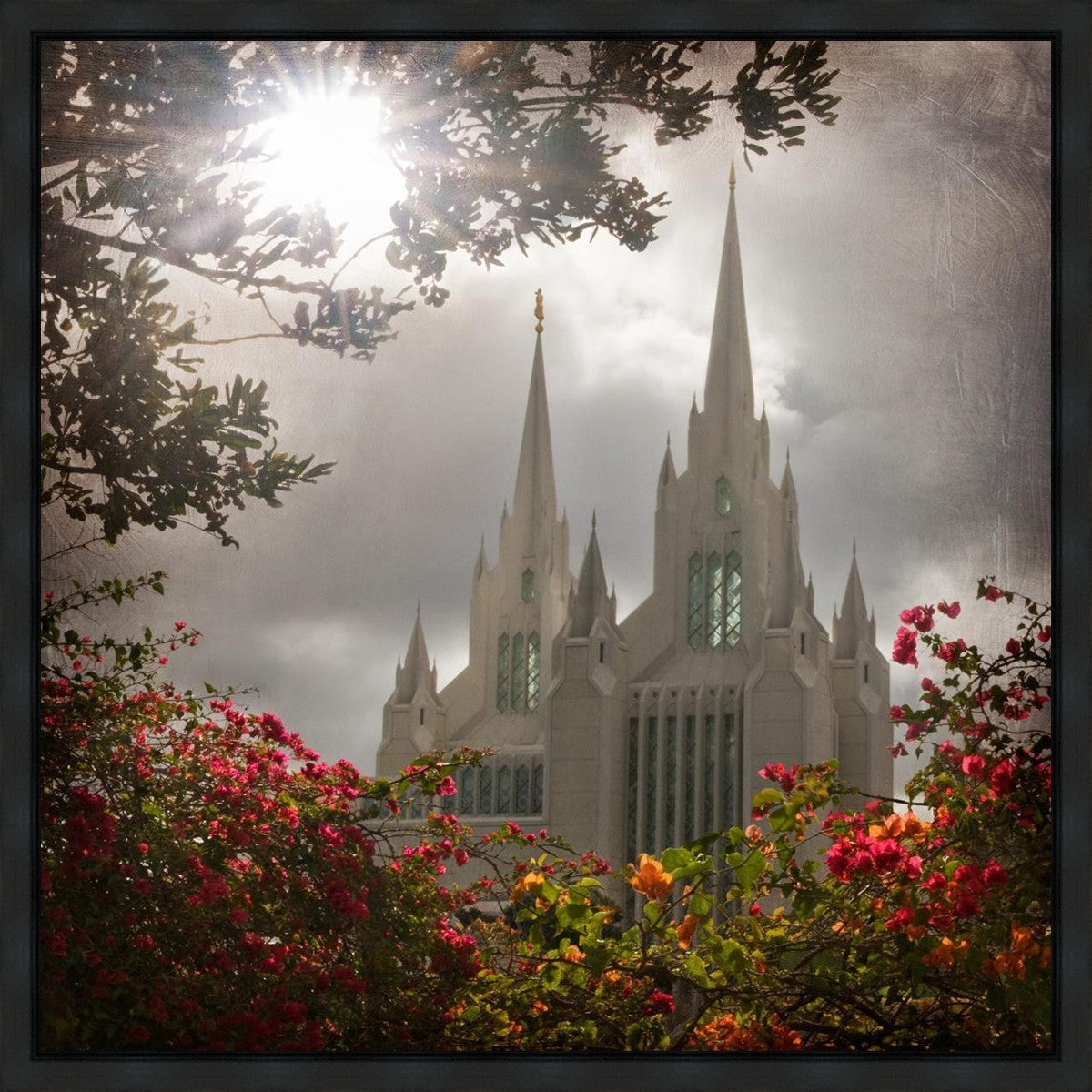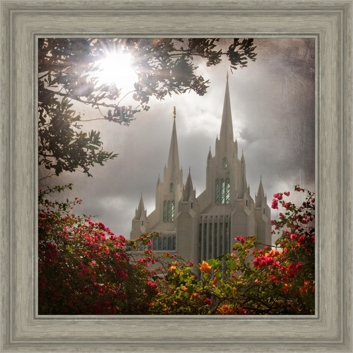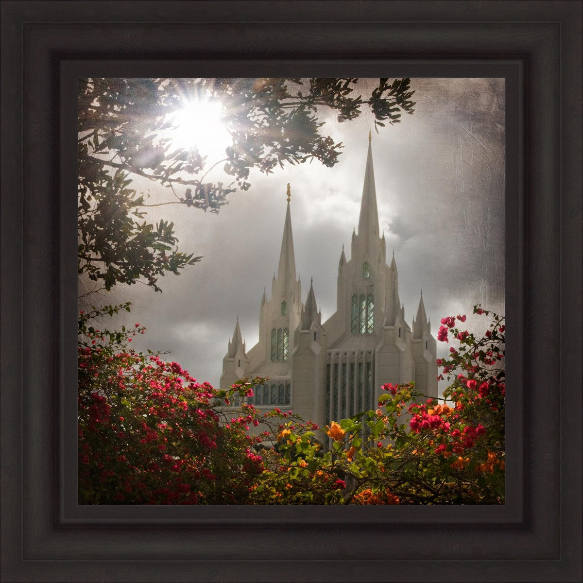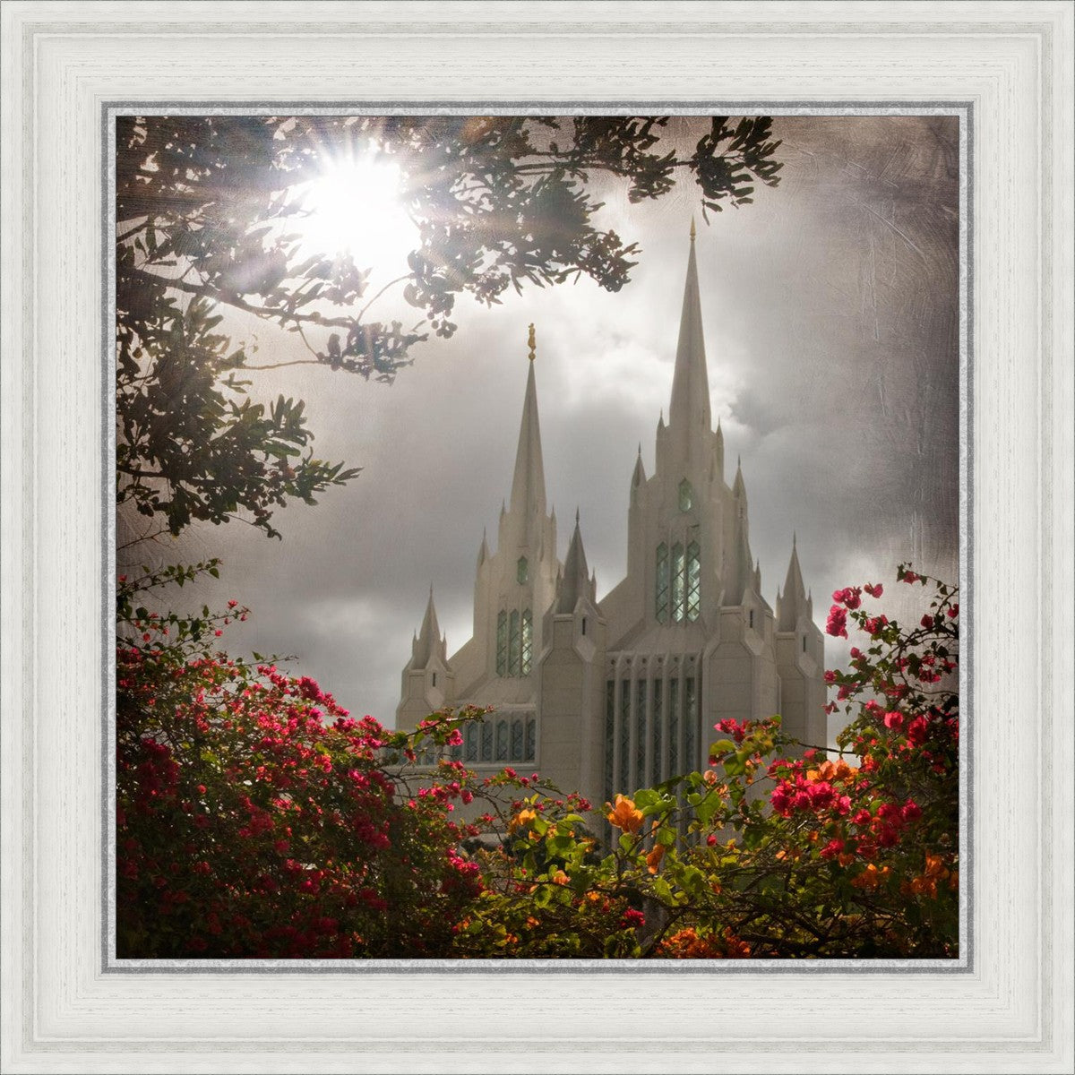 Since 1999 Landon has worked as an artisan in nearly 40 temples doing the decorative paint and gold leaf. He continues to do so as well as wood repair and graining. He was married in 2001 to Jacey Thomas in the Manti Utah temple. When she couldn’t find an image of the temple that she liked enough to purchase for their home, he decided to take one himself. That desire to create something original and different inspired his current series of temple art. They are taken from a panoramic viewpoint and stylized with an artistic border that reflect his paintings. All modern structures apart from the temple have been omitted.