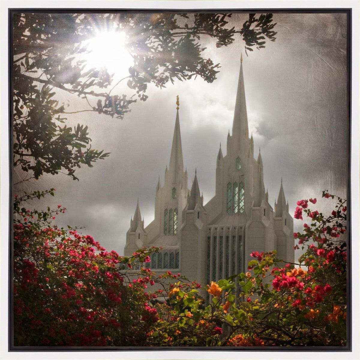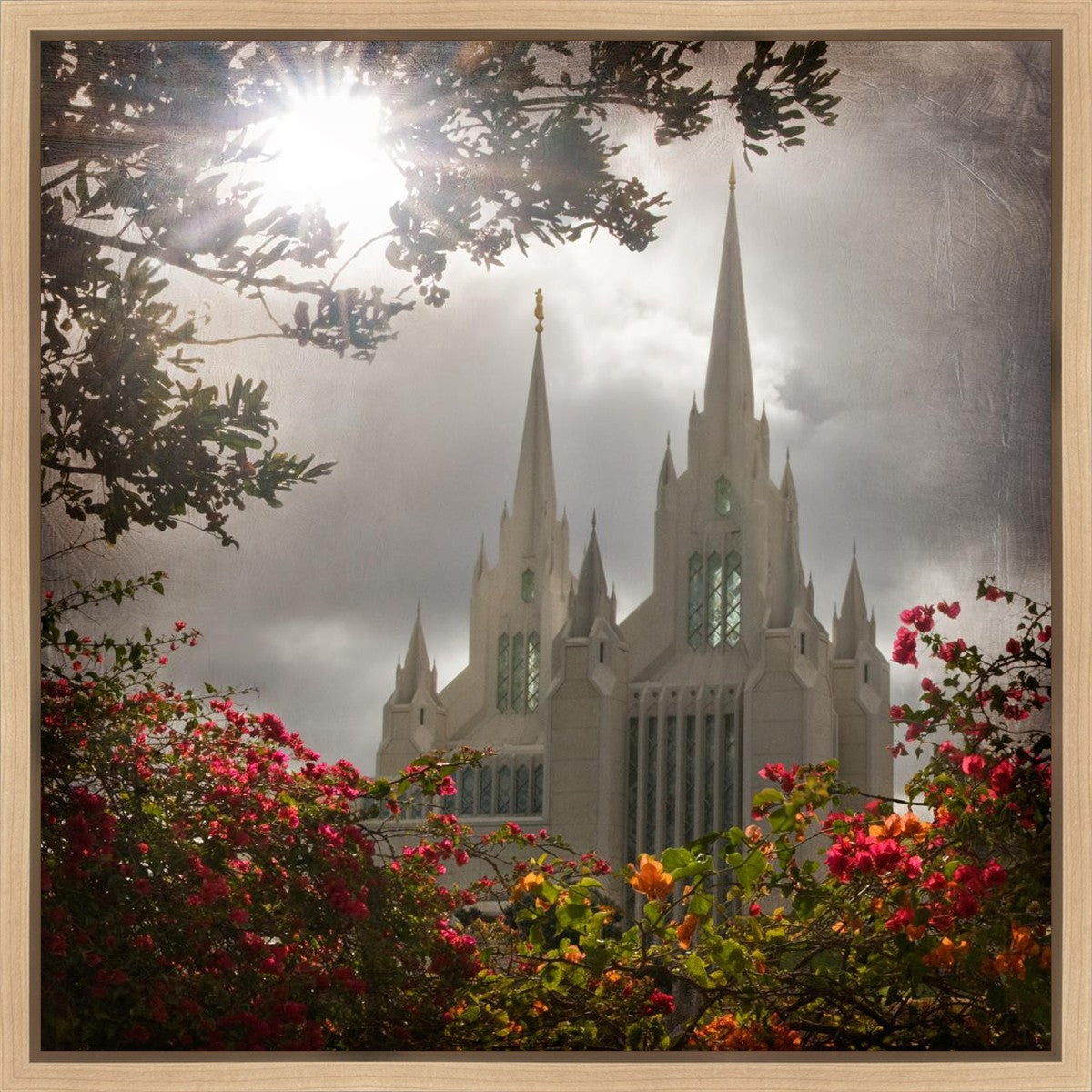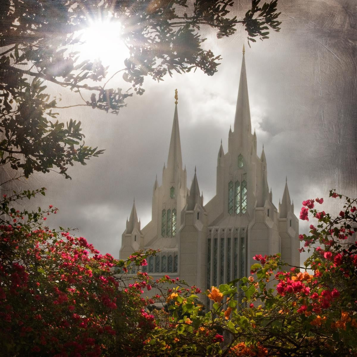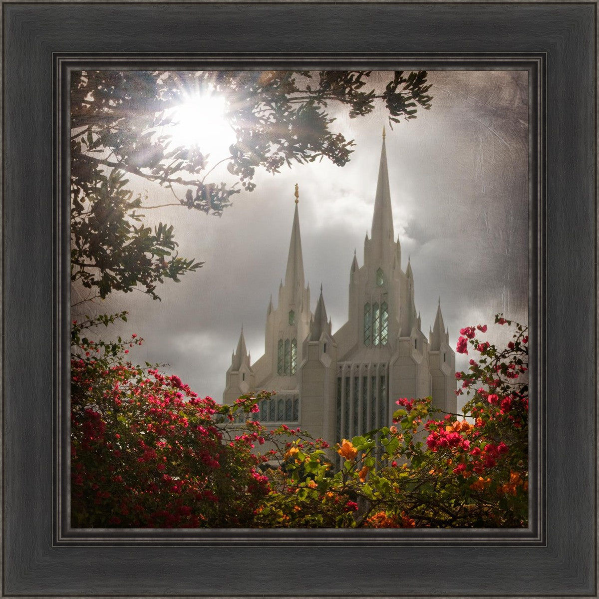 Since 1999 Landon has worked as an artisan in nearly 40 temples doing the decorative paint and gold leaf. He continues to do so as well as wood repair and graining. He was married in 2001 to Jacey Thomas in the Manti Utah temple. When she couldn’t find an image of the temple that she liked enough to purchase for their home, he decided to take one himself. That desire to create something original and different inspired his current series of temple art. They are taken from a panoramic viewpoint and stylized with an artistic border that reflect his paintings. All modern structures apart from the temple have been omitted.