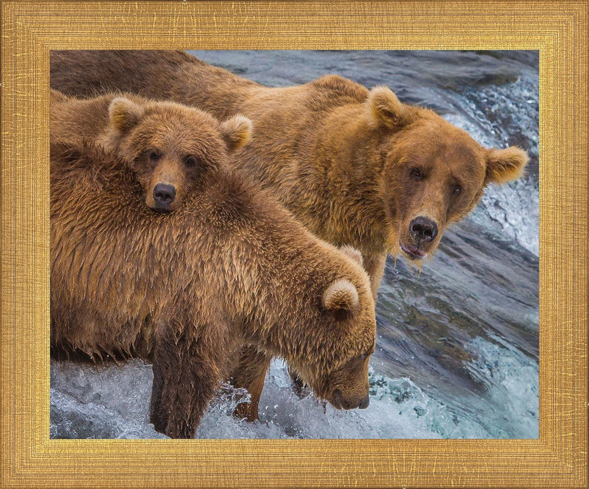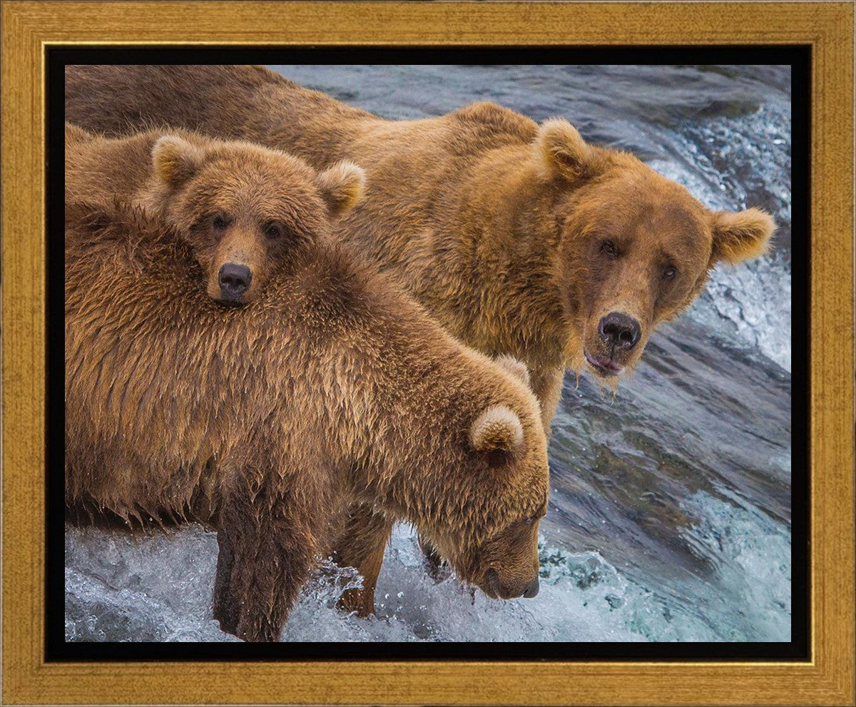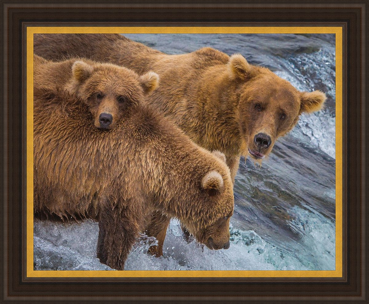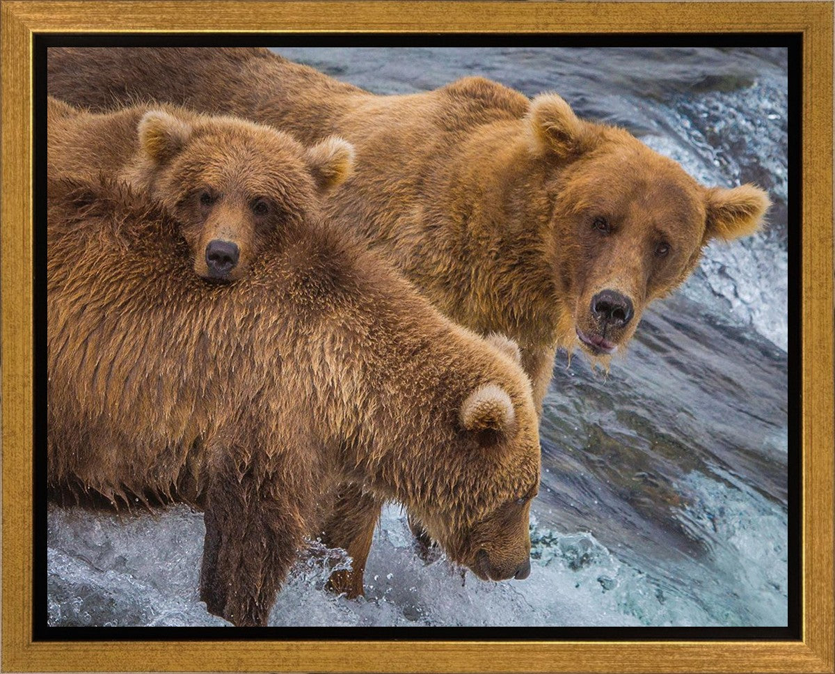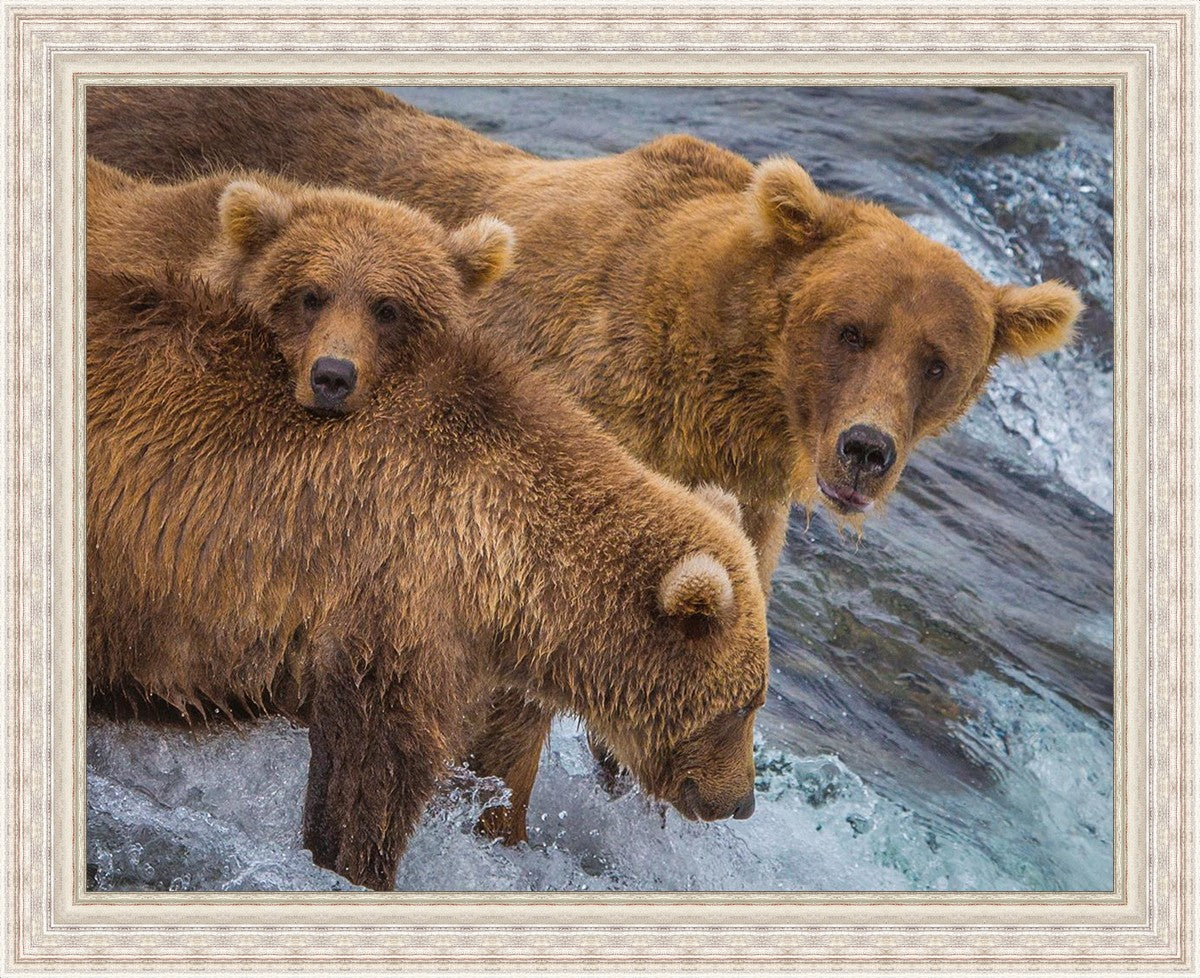 A family of grizzly bears dine at the rapids on the Katmai RIver in Alaska