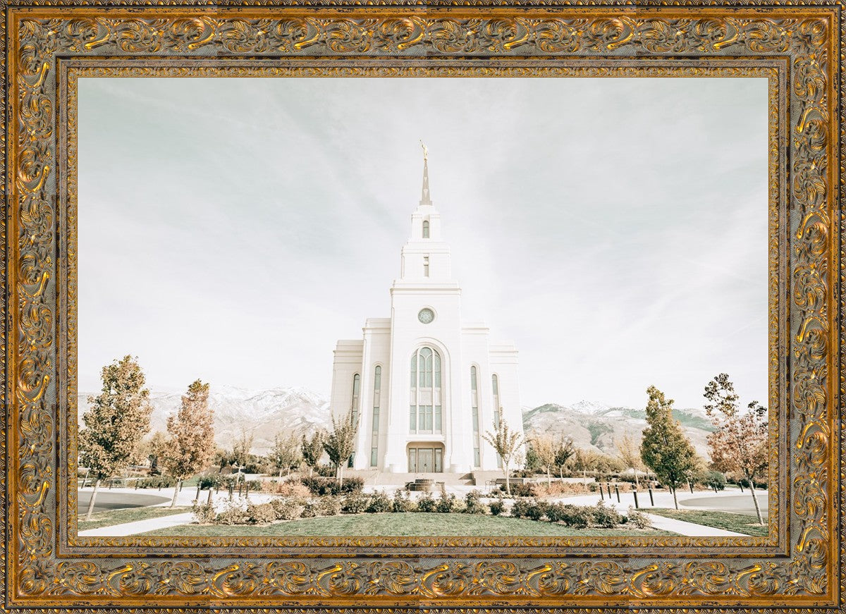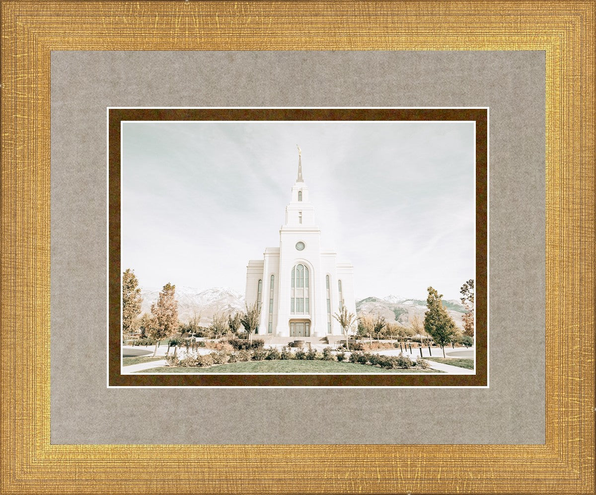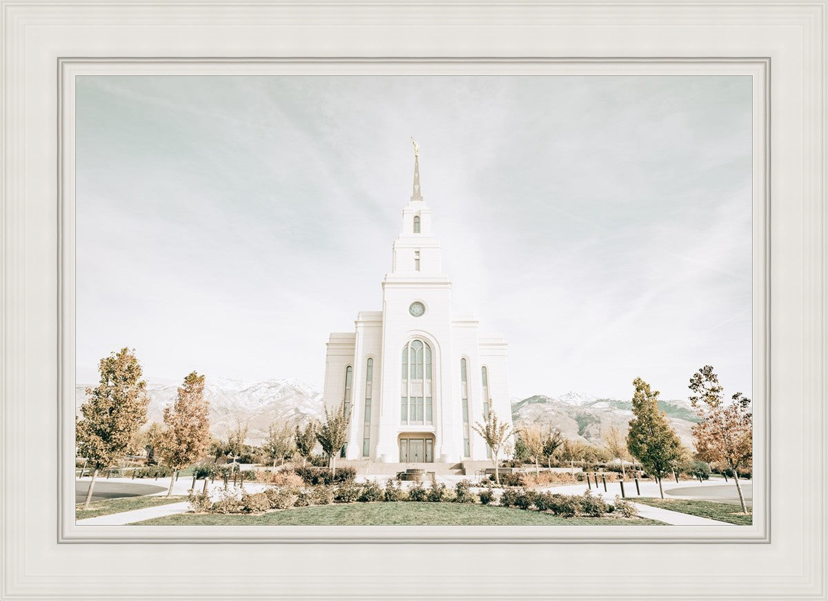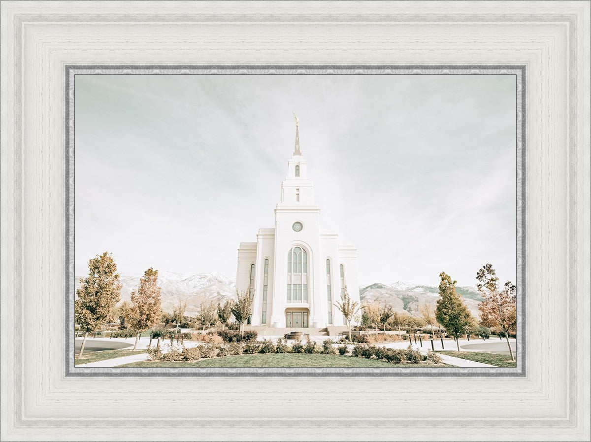Each artistic rendition of the temple seeks to provide solitude by removing distractions while honoring its original design. Peace is found in the choice of a consistent, gentle color palette that embraces a natural, textured look and the timeless character that all great art should possess. The luminance and radiance in each image aim to infuse a heavenly ambiance into your living space.