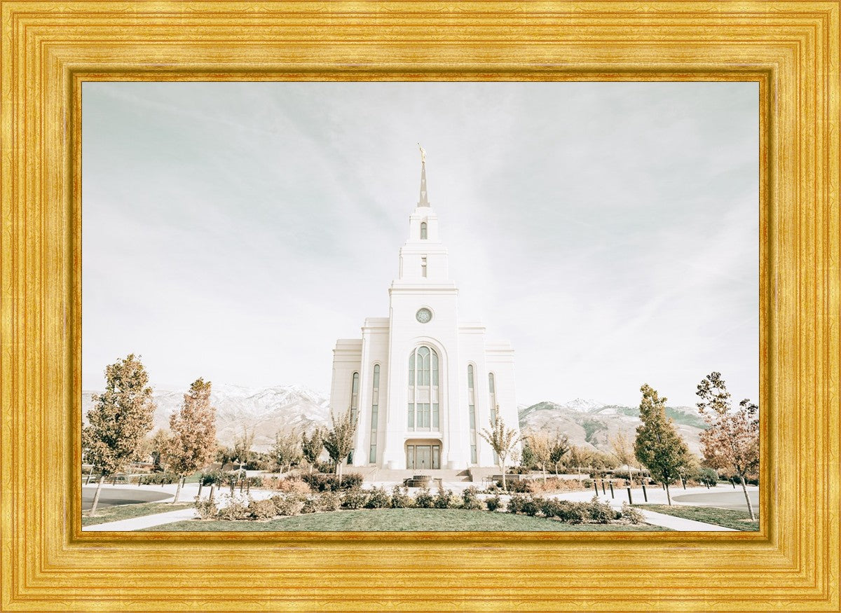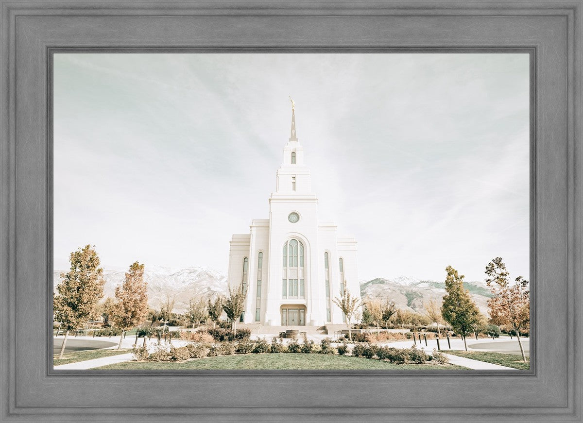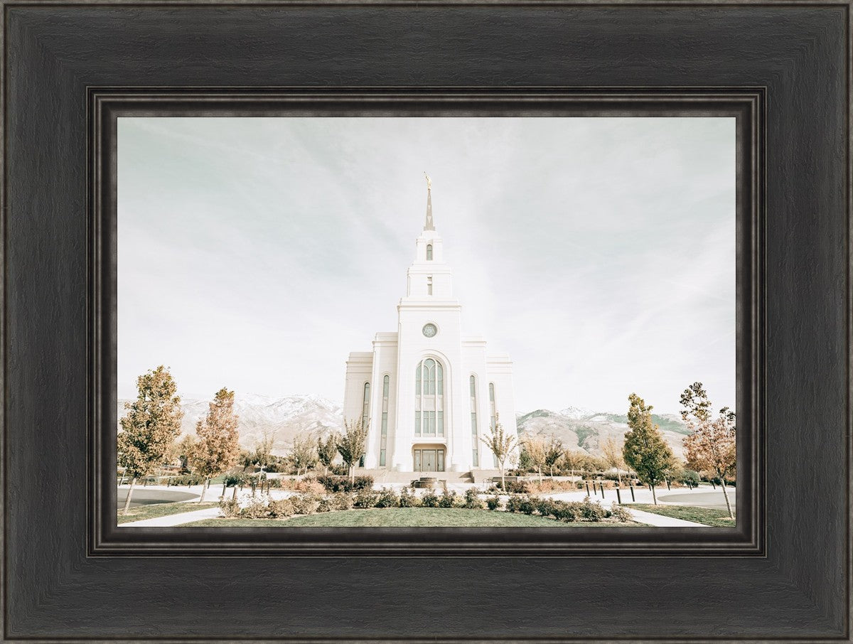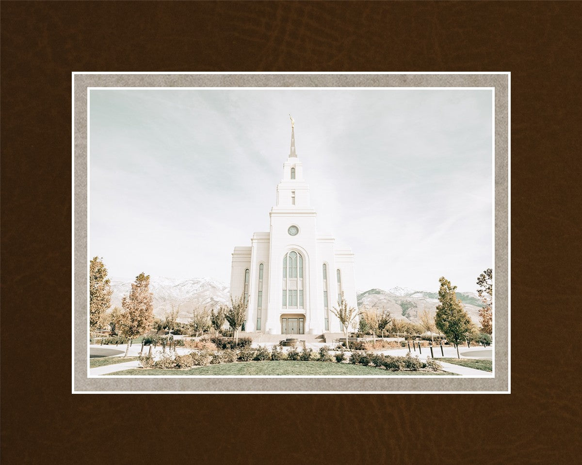 Each artistic rendition of the temple seeks to provide solitude by removing distractions while honoring its original design. Peace is found in the choice of a consistent, gentle color palette that embraces a natural, textured look and the timeless character that all great art should possess. The luminance and radiance in each image aim to infuse a heavenly ambiance into your living space.