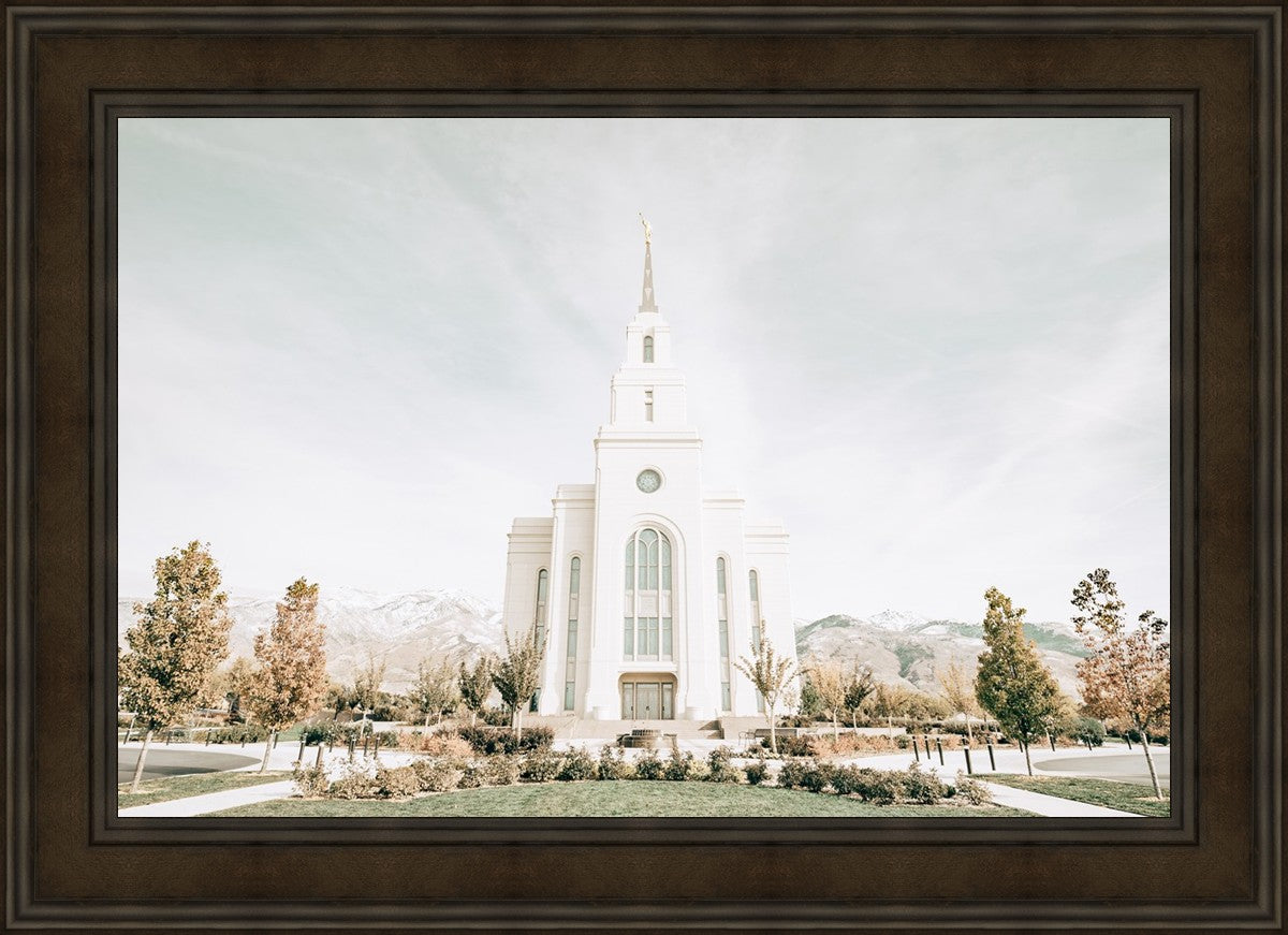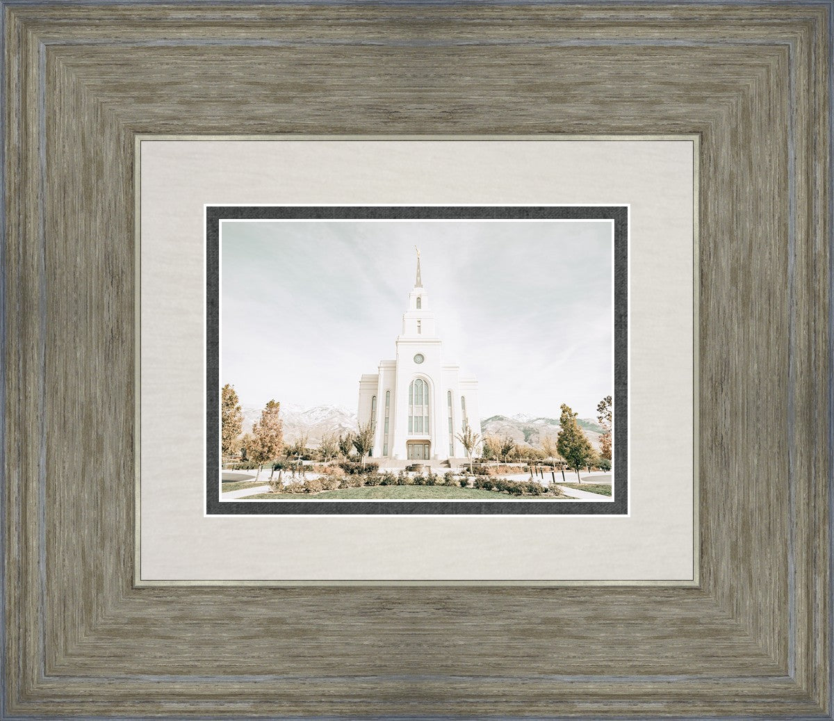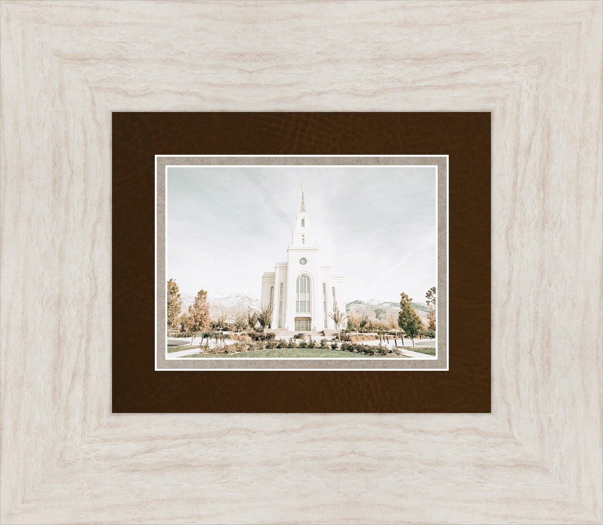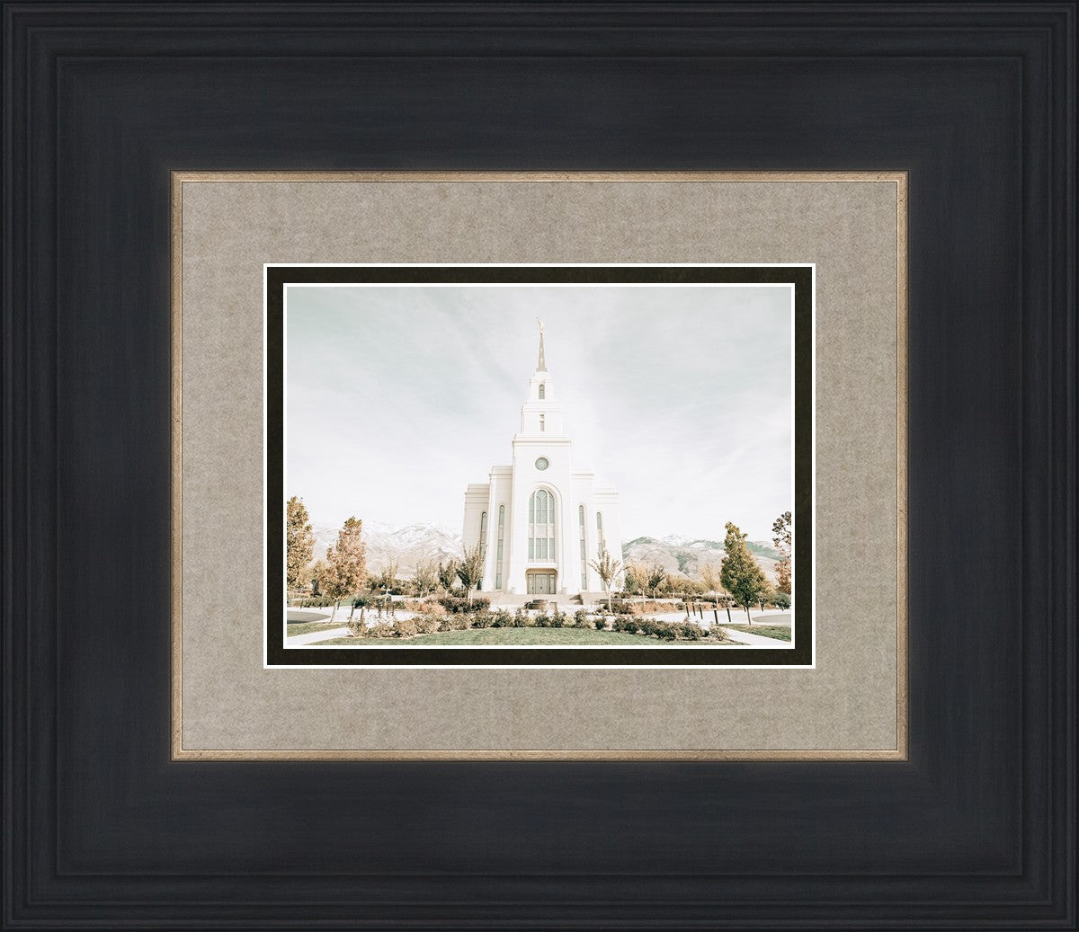 Each artistic rendition of the temple seeks to provide solitude by removing distractions while honoring its original design. Peace is found in the choice of a consistent, gentle color palette that embraces a natural, textured look and the timeless character that all great art should possess. The luminance and radiance in each image aim to infuse a heavenly ambiance into your living space.