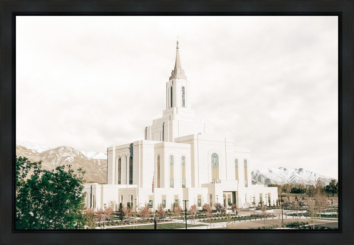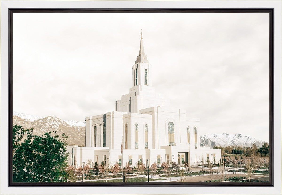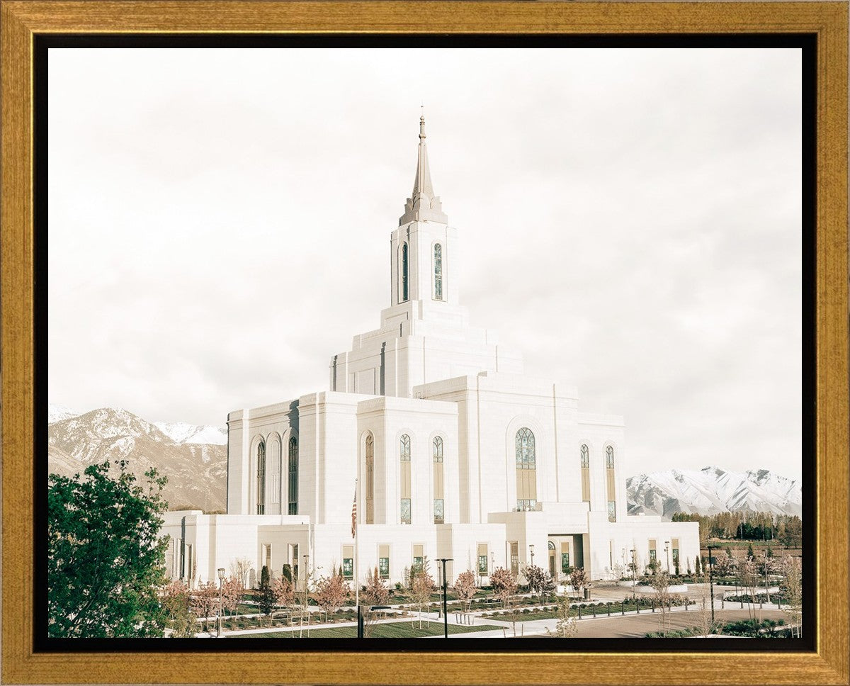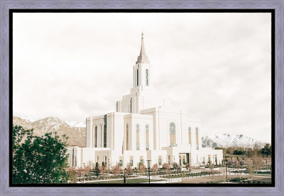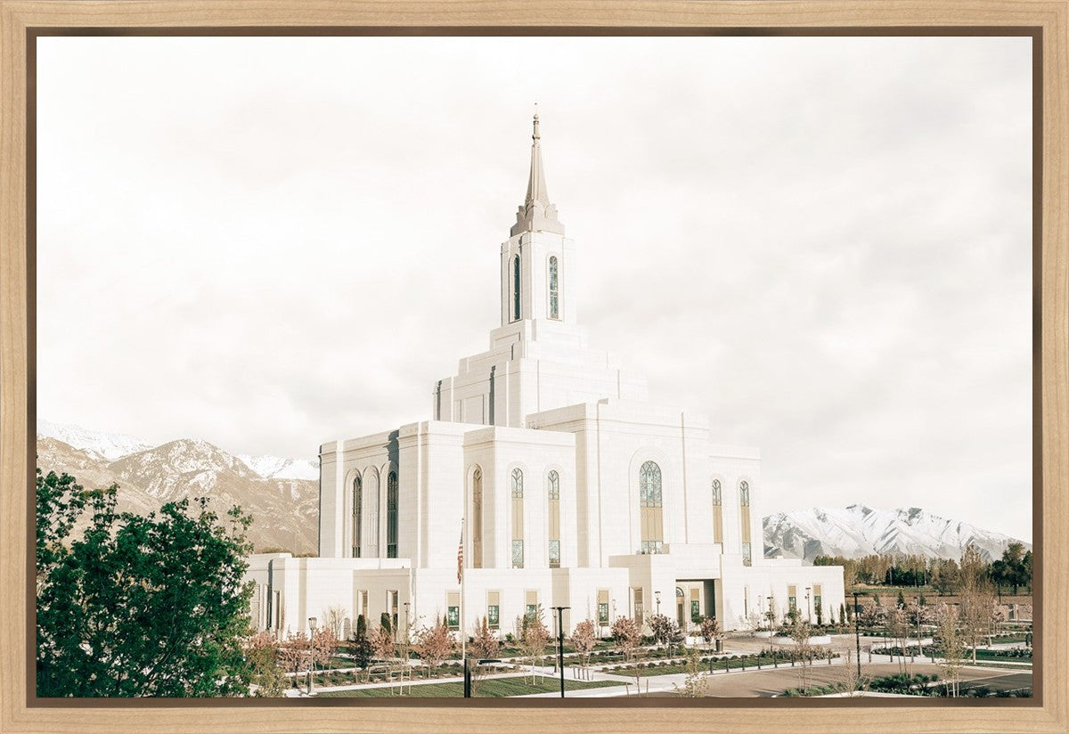 Each artistic rendition of the temple seeks to provide solitude by removing distractions while honoring its original design. Peace is found in the choice of a consistent, gentle color palette that embraces a natural, textured look and the timeless character that all great art should possess. The luminance and radiance in each image aim to infuse a heavenly ambiance into your living space.