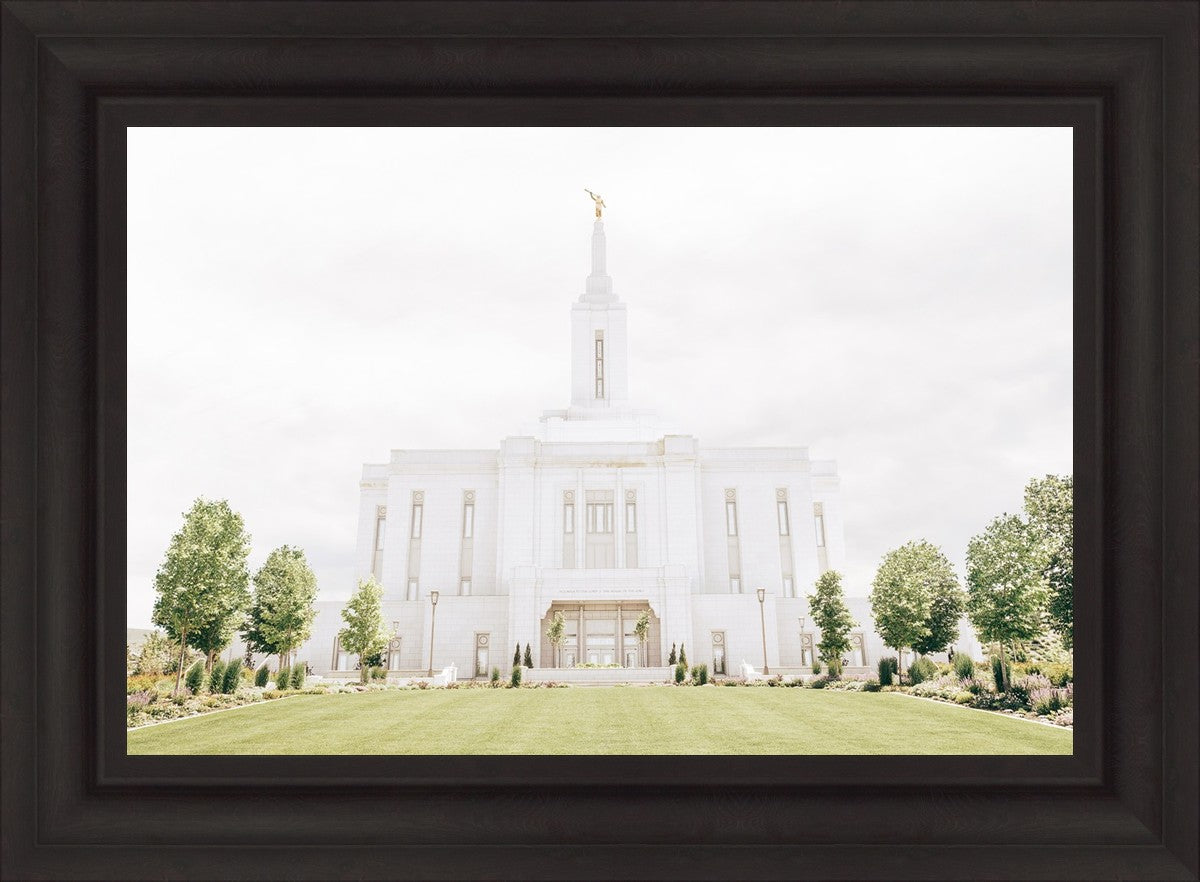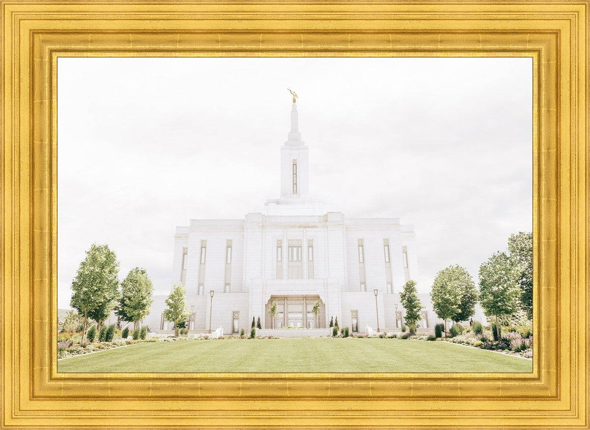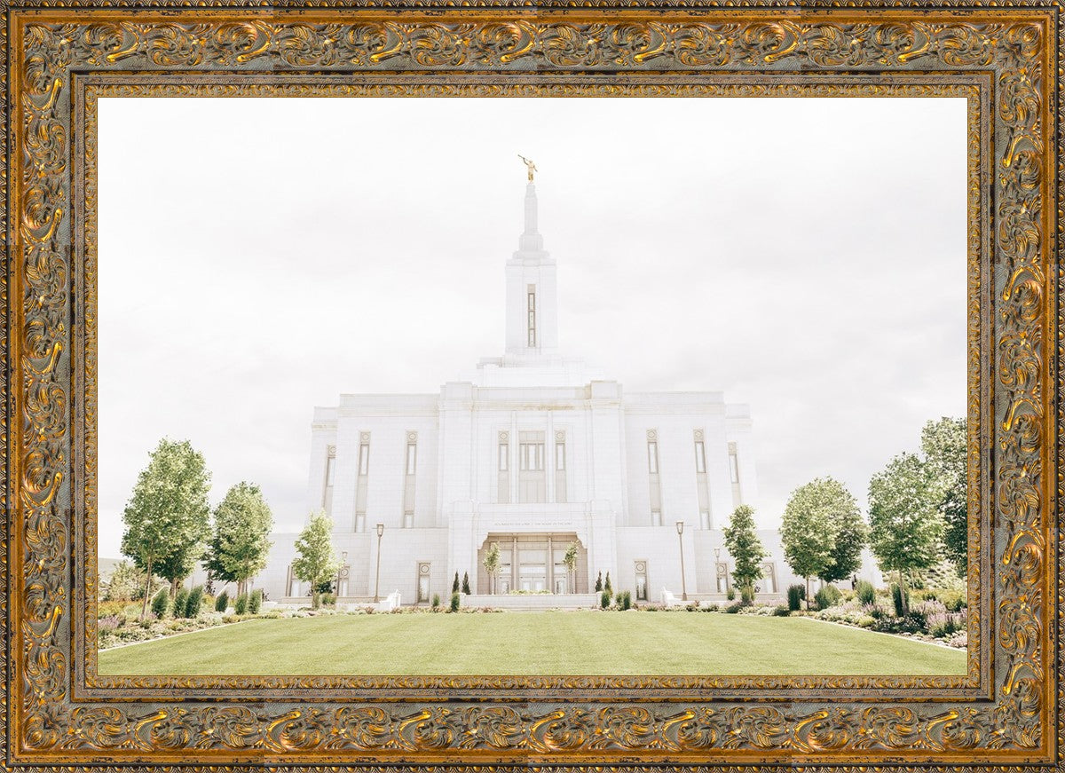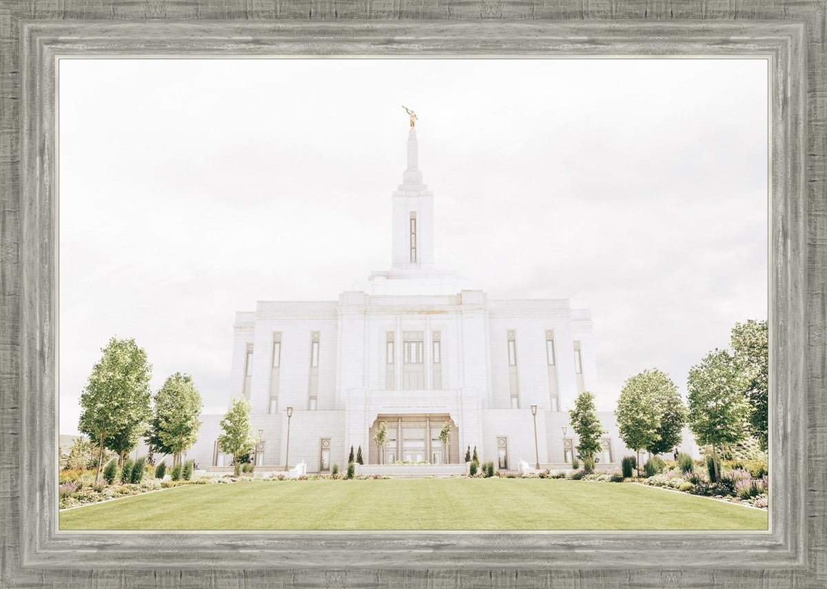 Each artistic rendition of the temple seeks to provide solitude by removing distractions while honoring its original design. Peace is found in the choice of a consistent, gentle color palette that embraces a natural, textured look and the timeless character that all great art should possess. The luminance and radiance in each image aim to infuse a heavenly ambiance into your living space.