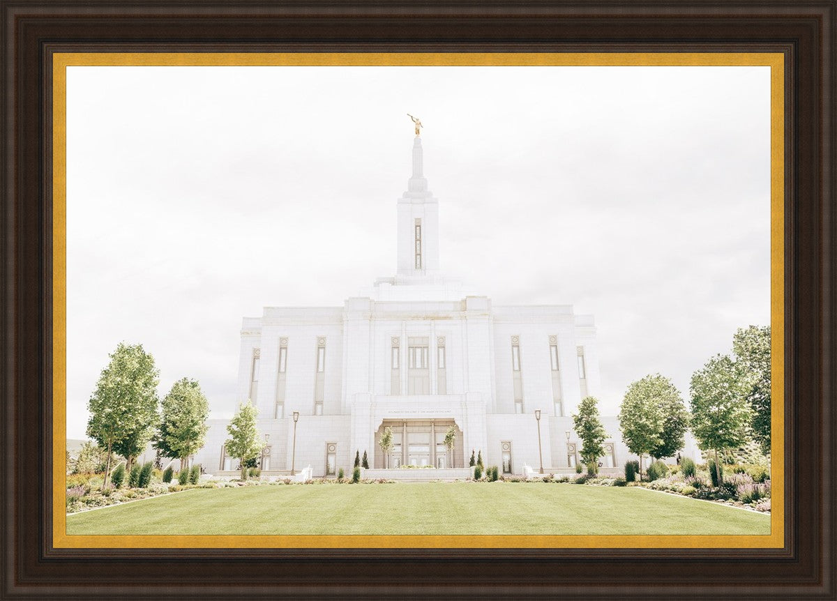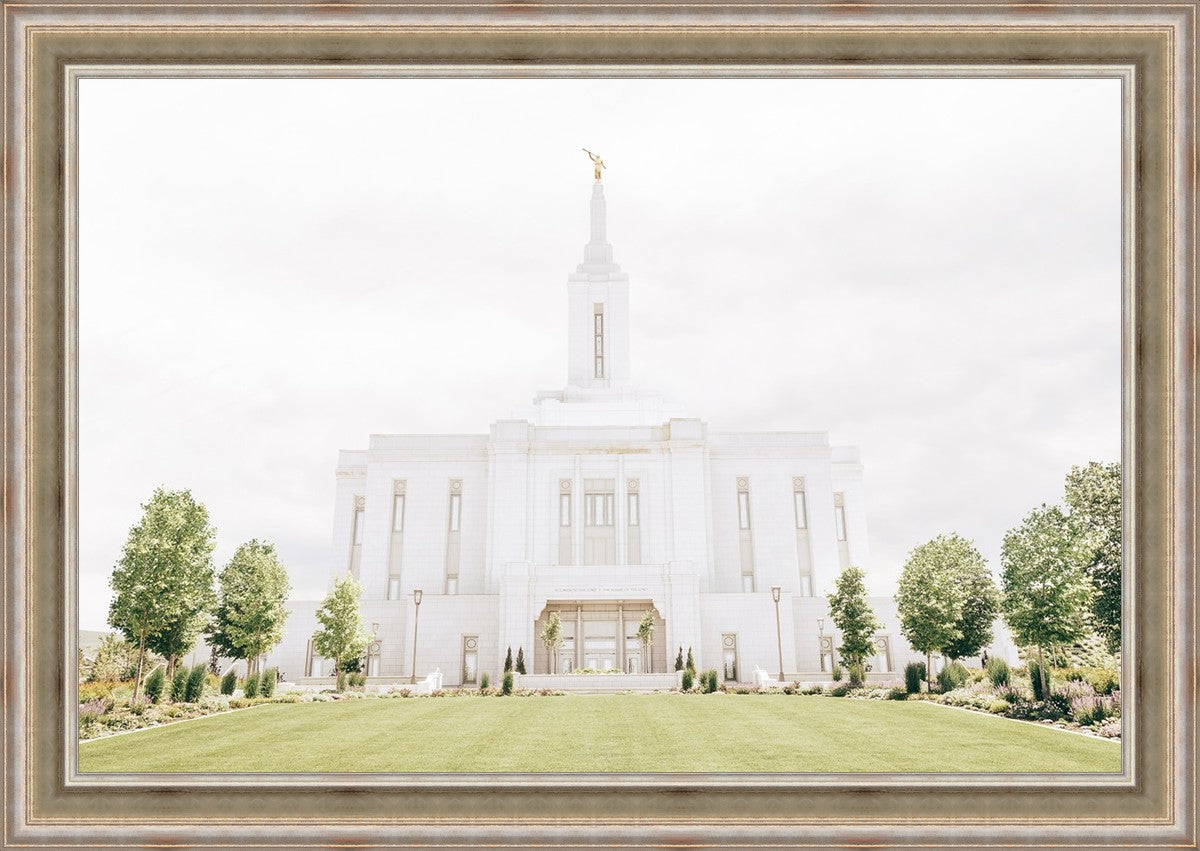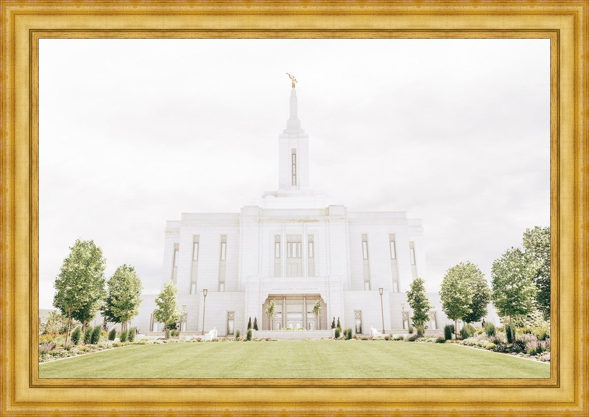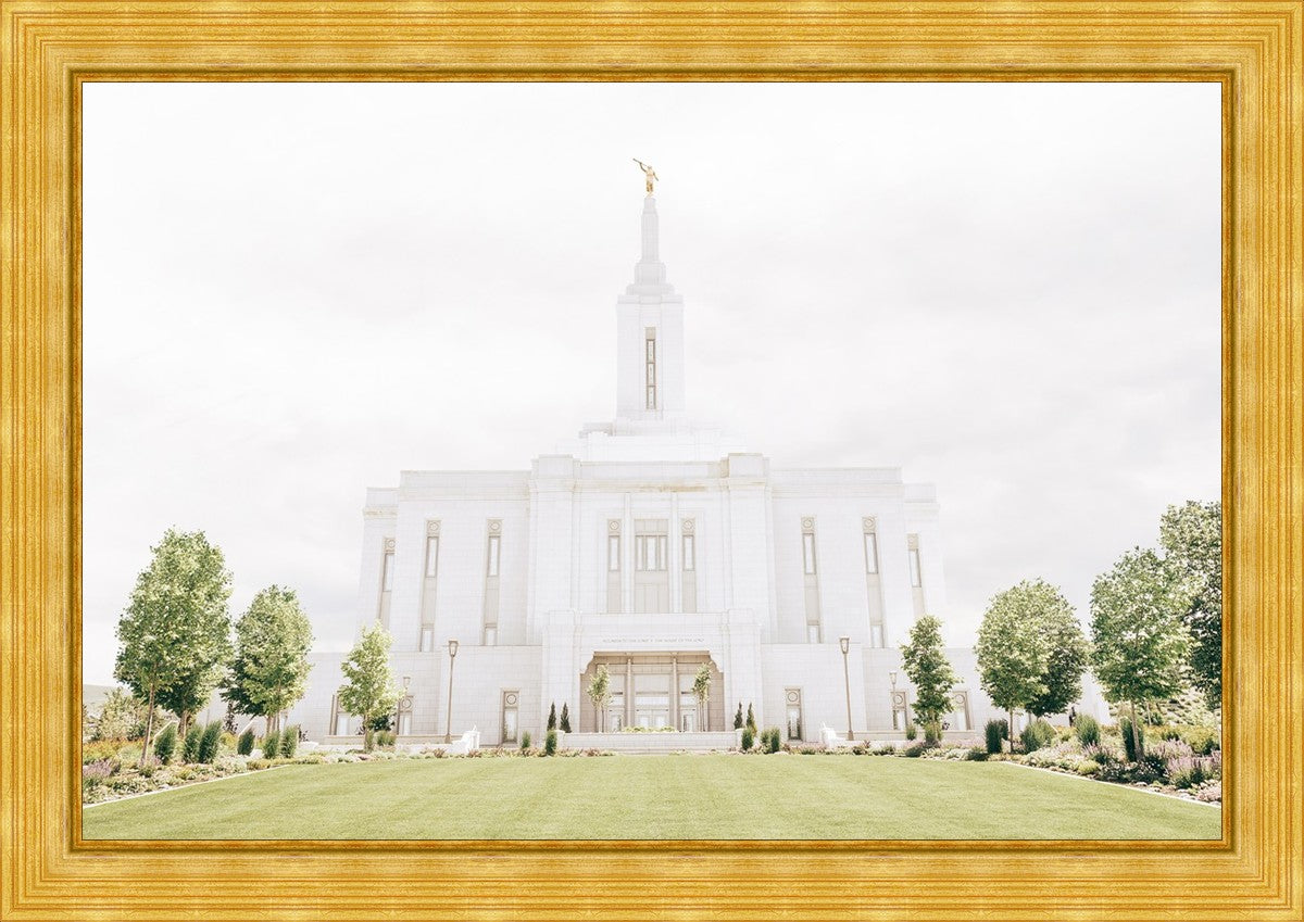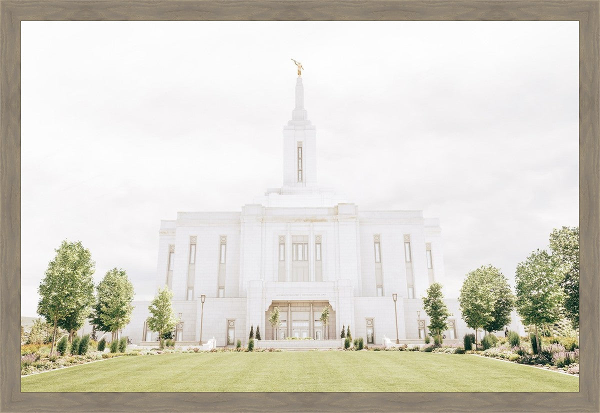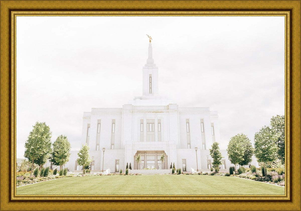 Each artistic rendition of the temple seeks to provide solitude by removing distractions while honoring its original design. Peace is found in the choice of a consistent, gentle color palette that embraces a natural, textured look and the timeless character that all great art should possess. The luminance and radiance in each image aim to infuse a heavenly ambiance into your living space.
