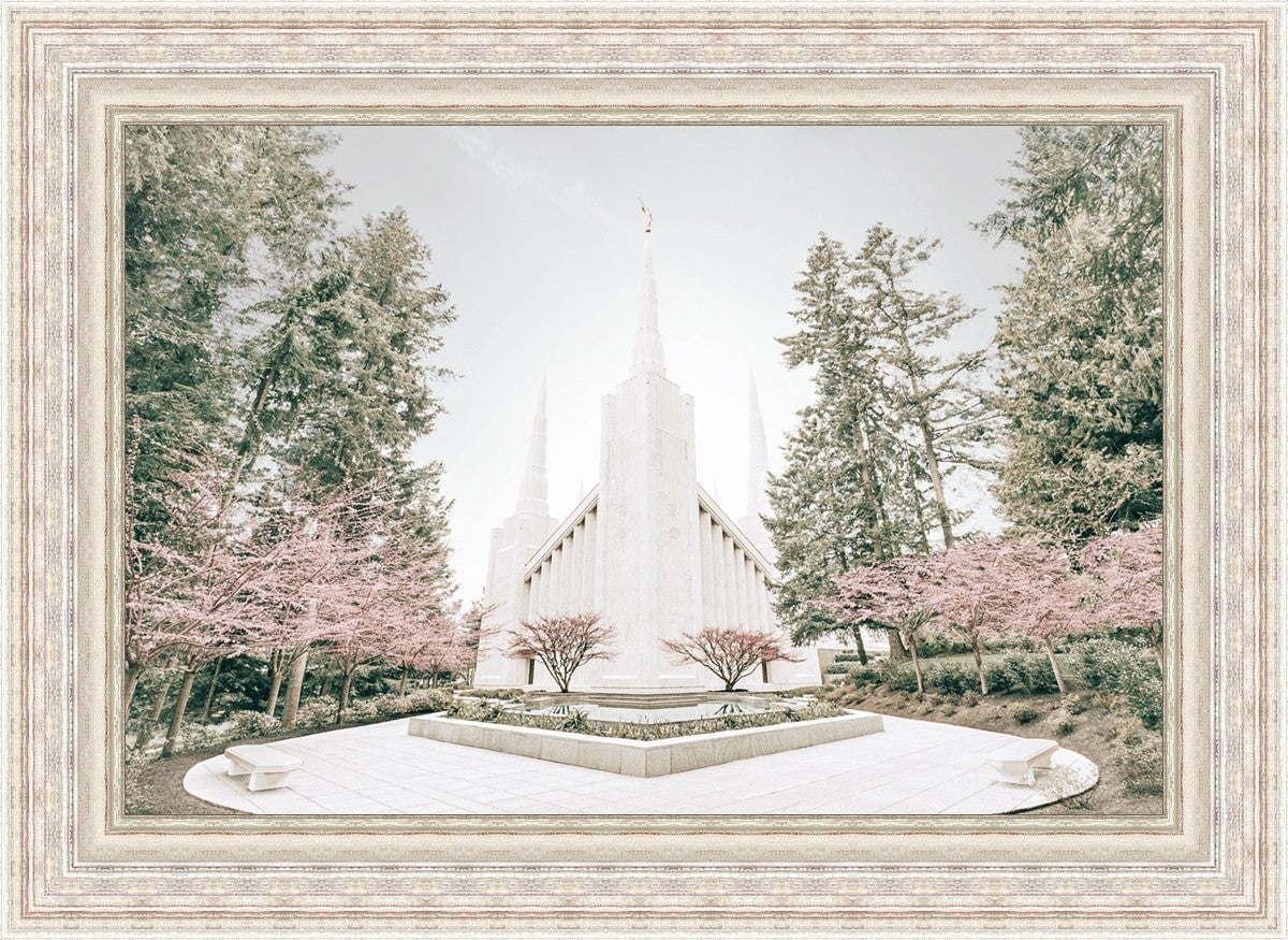 Each artistic rendition of the temple seeks to provide solitude by removing distractions while honoring its original design. Peace is found in the choice of a consistent, gentle color palette that embraces a natural, textured look and the timeless character that all great art should possess. The luminance and radiance in each image aim to infuse a heavenly ambiance into your living space.