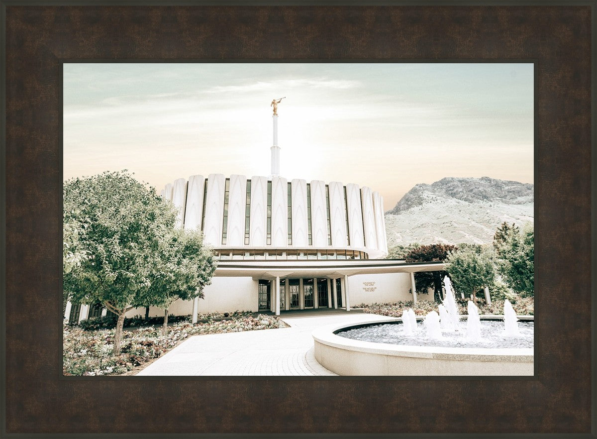 Each artistic rendition of the temple seeks to provide solitude by removing distractions while honoring its original design. Peace is found in the choice of a consistent, gentle color palette that embraces a natural, textured look and the timeless character that all great art should possess. The luminance and radiance in each image aim to infuse a heavenly ambiance into your living space.