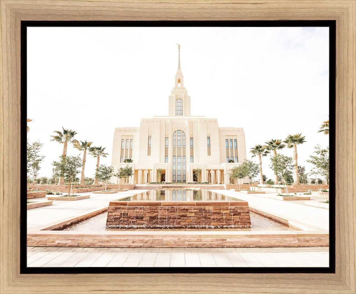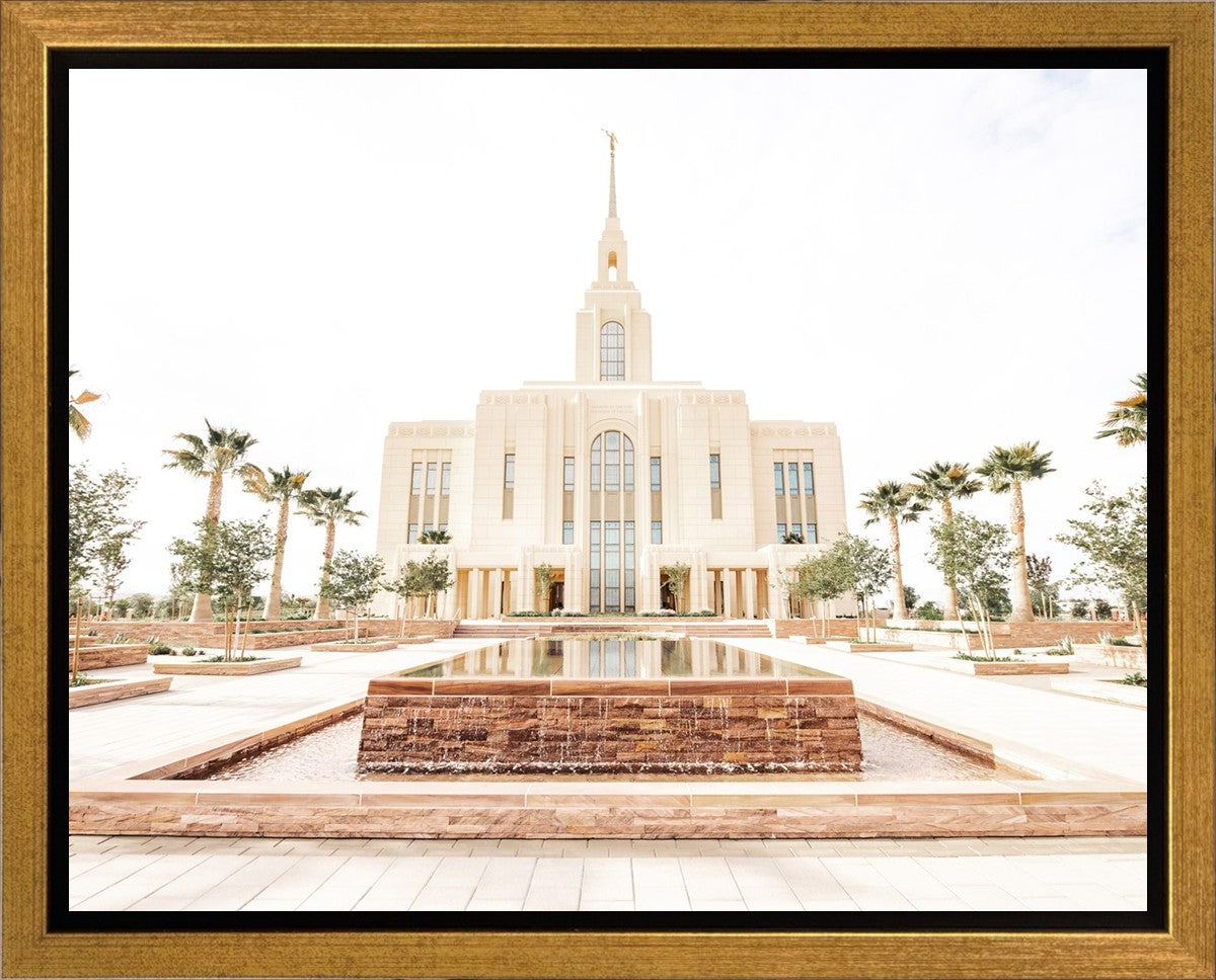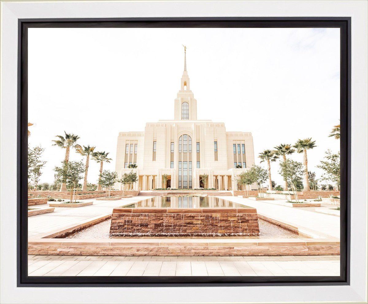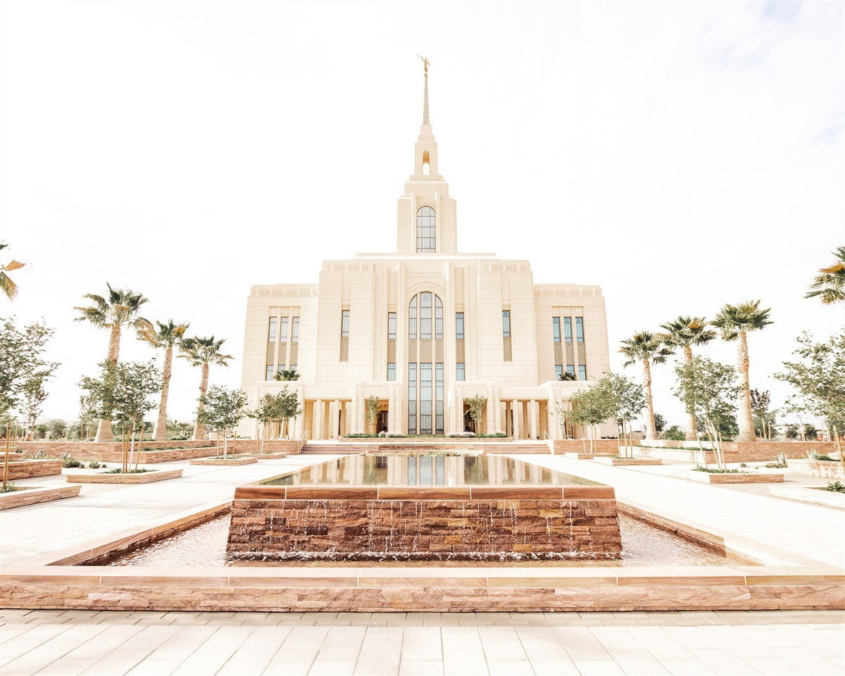 Each artistic rendition of the temple seeks to provide solitude by removing distractions while honoring its original design. Peace is found in the choice of a consistent, gentle color palette that embraces a natural, textured look and the timeless character that all great art should possess. The luminance and radiance in each image aim to infuse a heavenly ambiance into your living space.