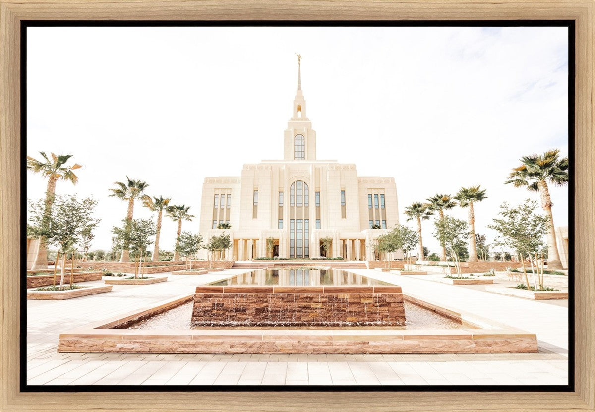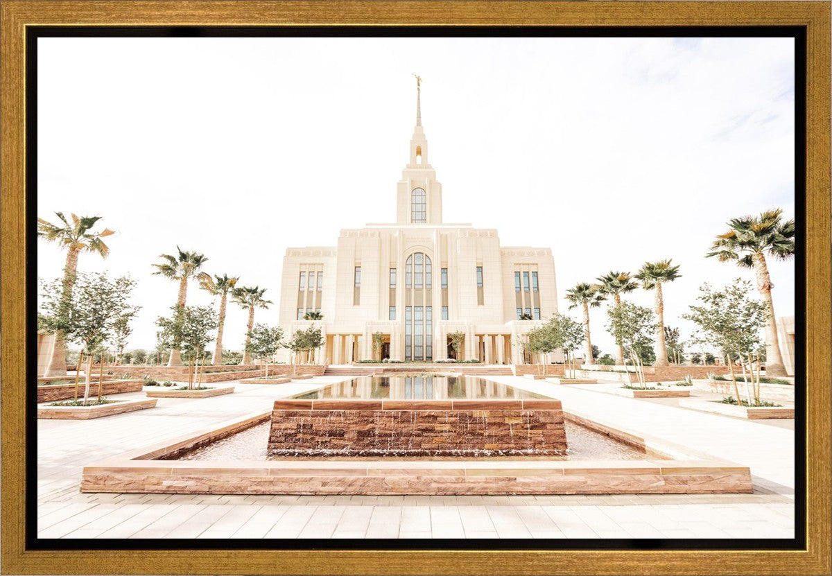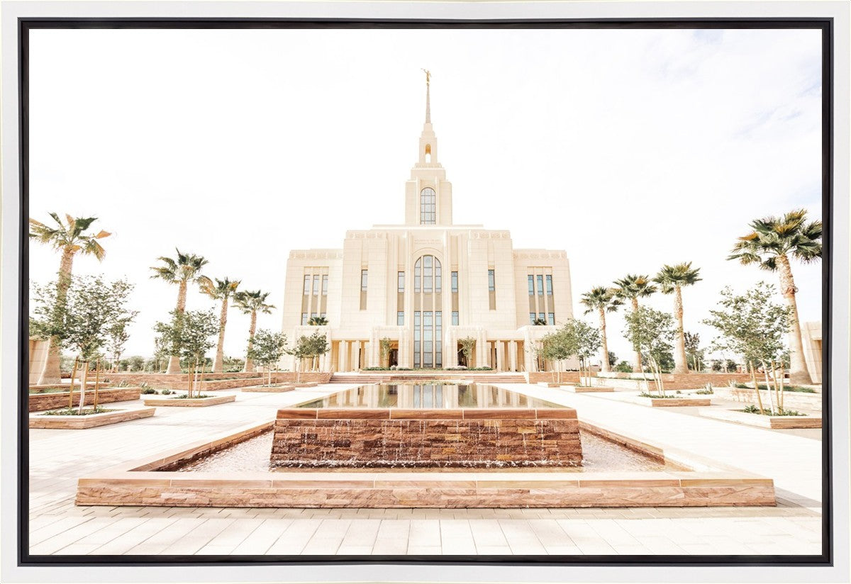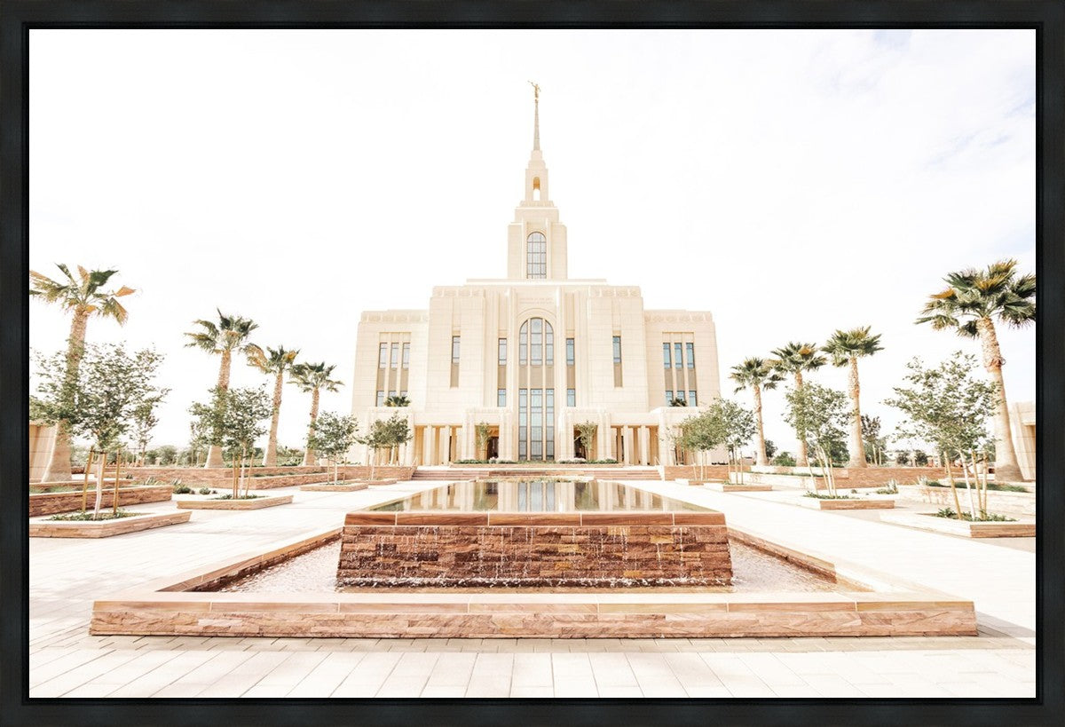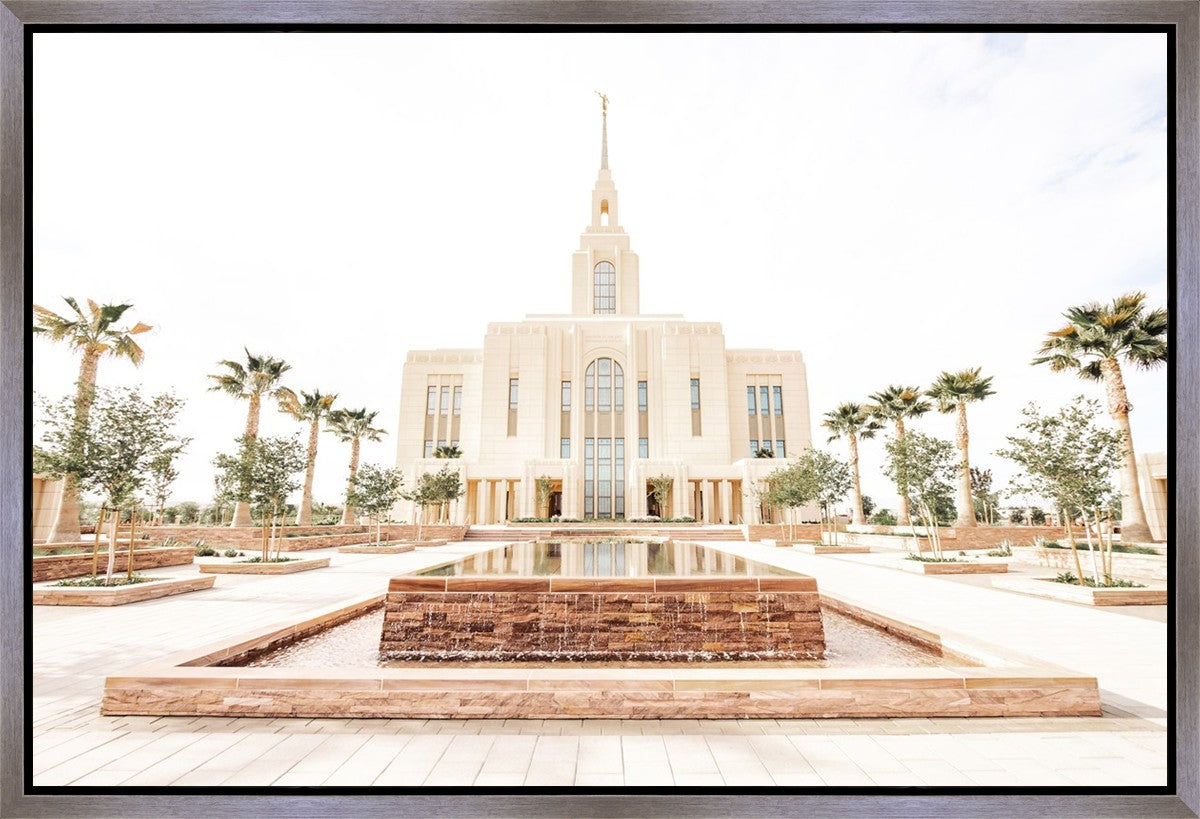 Each artistic rendition of the temple seeks to provide solitude by removing distractions while honoring its original design. Peace is found in the choice of a consistent, gentle color palette that embraces a natural, textured look and the timeless character that all great art should possess. The luminance and radiance in each image aim to infuse a heavenly ambiance into your living space.