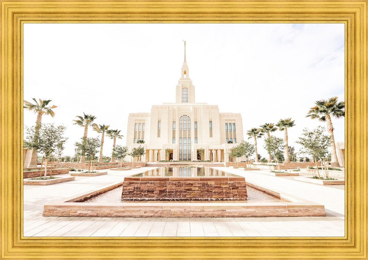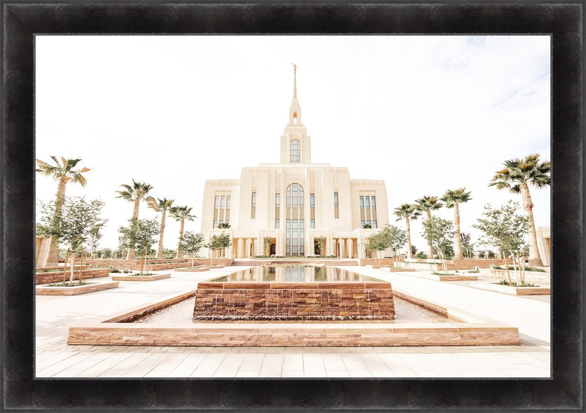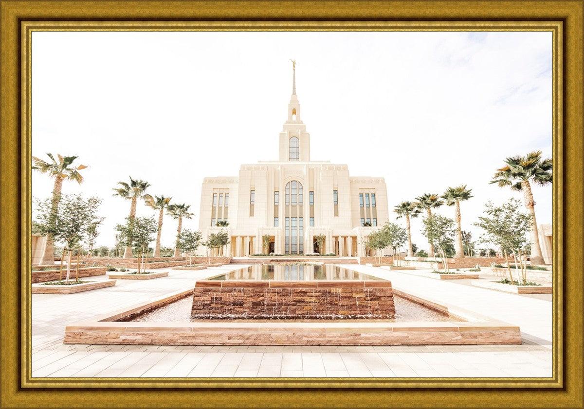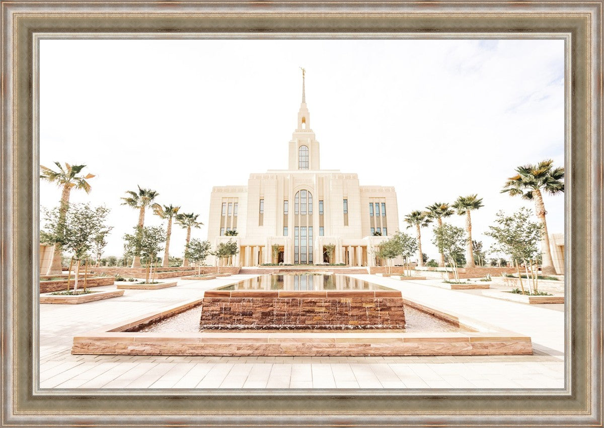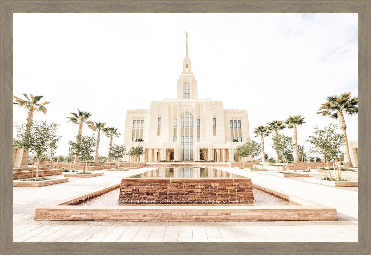 Each artistic rendition of the temple seeks to provide solitude by removing distractions while honoring its original design. Peace is found in the choice of a consistent, gentle color palette that embraces a natural, textured look and the timeless character that all great art should possess. The luminance and radiance in each image aim to infuse a heavenly ambiance into your living space.